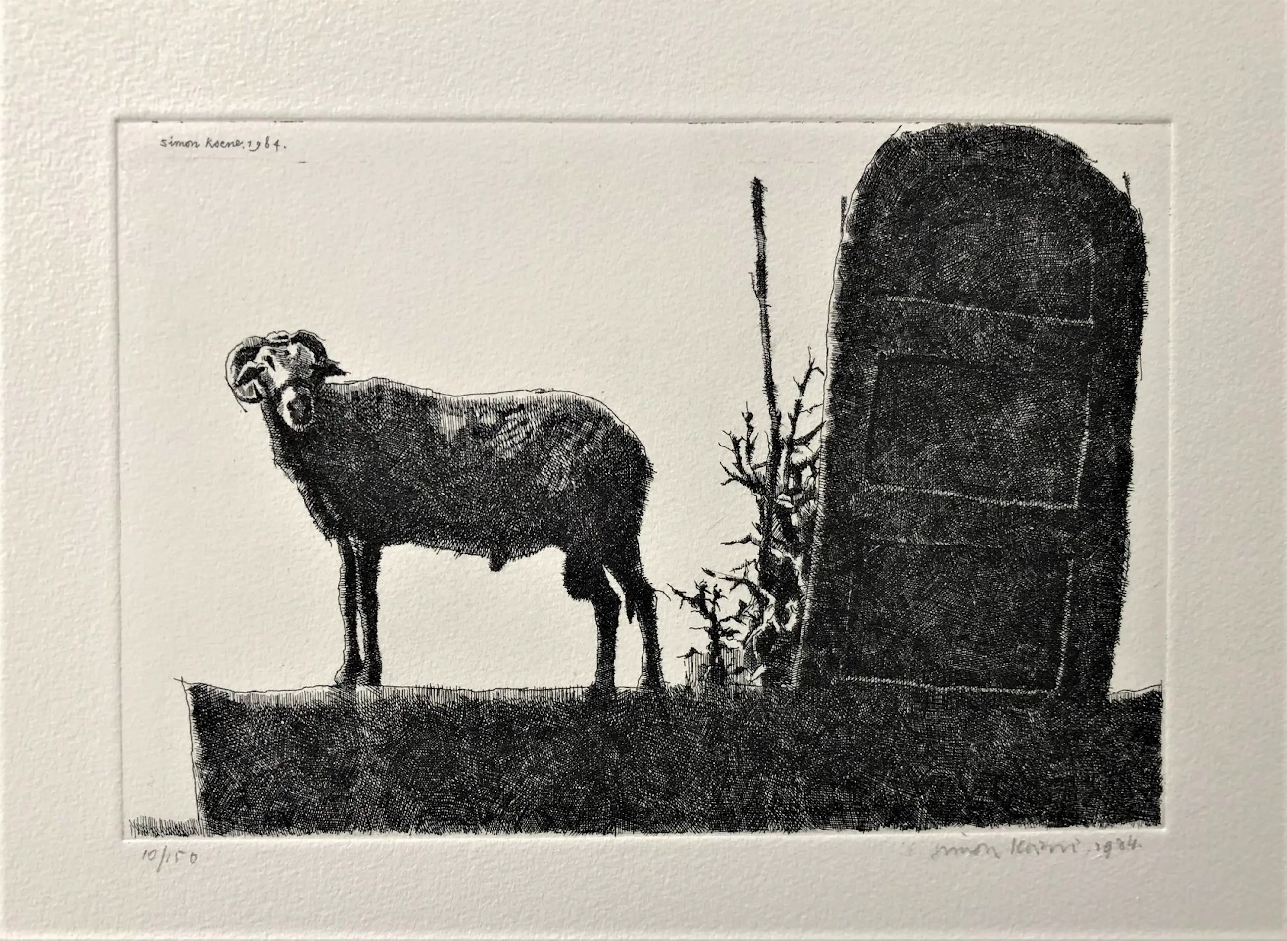 Linksboven in de etsplaat gesigneerd: Simon Koene 1984 Rechtsonder met potlood gesigneerd: Simon Koene 1984