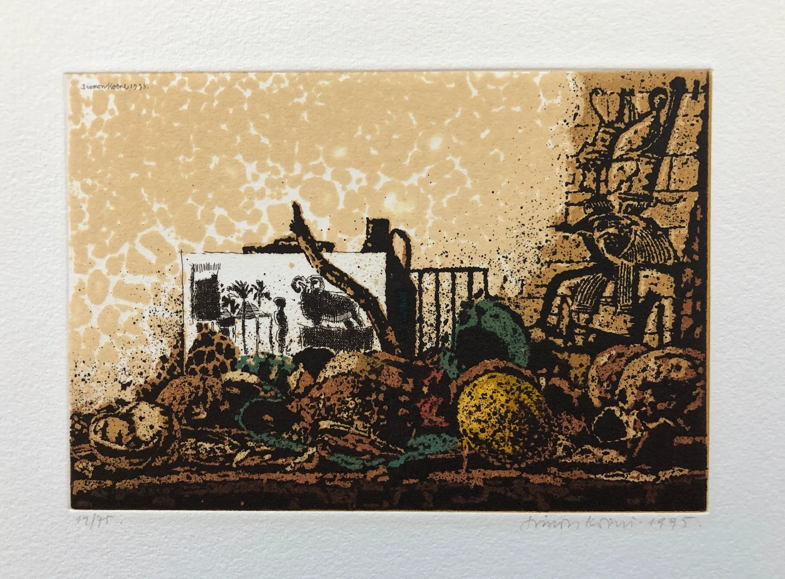Linksboven in de etsplaat gesigneerd: Simon Koene 1995 Rechtsonder met potlood gesigneerd: Simon Koene 1995