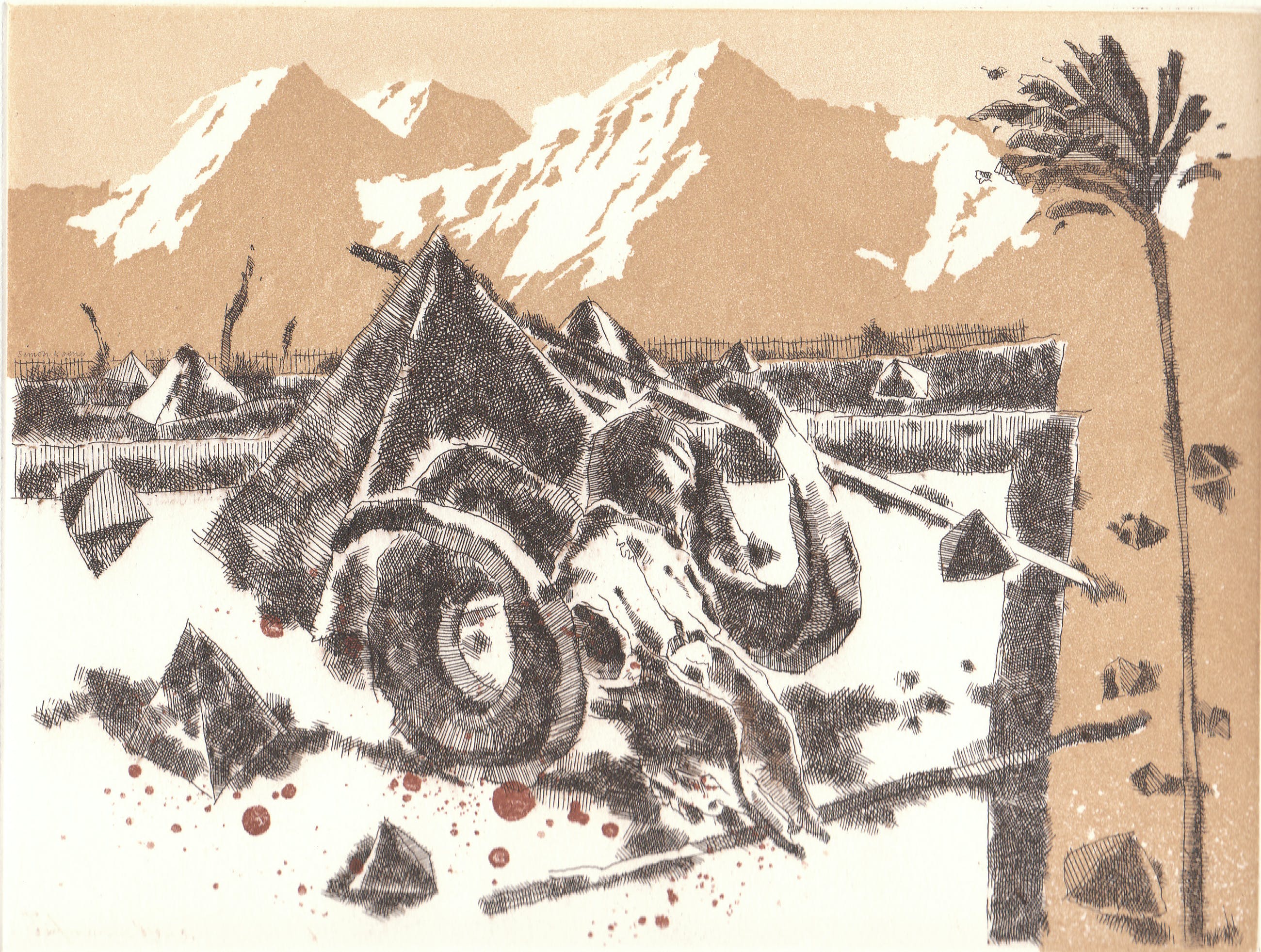 Links in de etsplaat gesigneerd: Simon Koene 1985 Rechtsonder met potlood gesigneerd: Simon Koene 1985