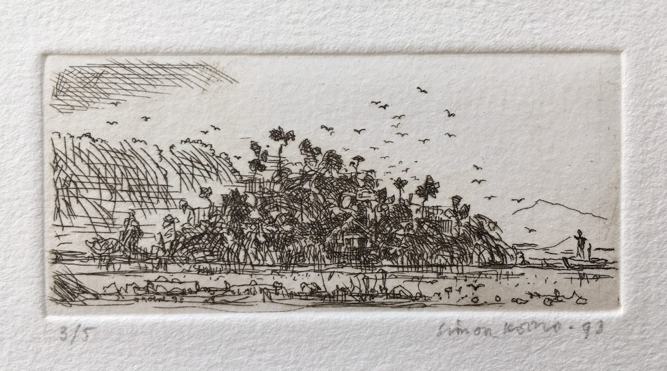 Linksonder in de etsplaat gesigneerd: S. Koene '93 Rechtsonder met potlood gesigneerd: Simon Koene '93