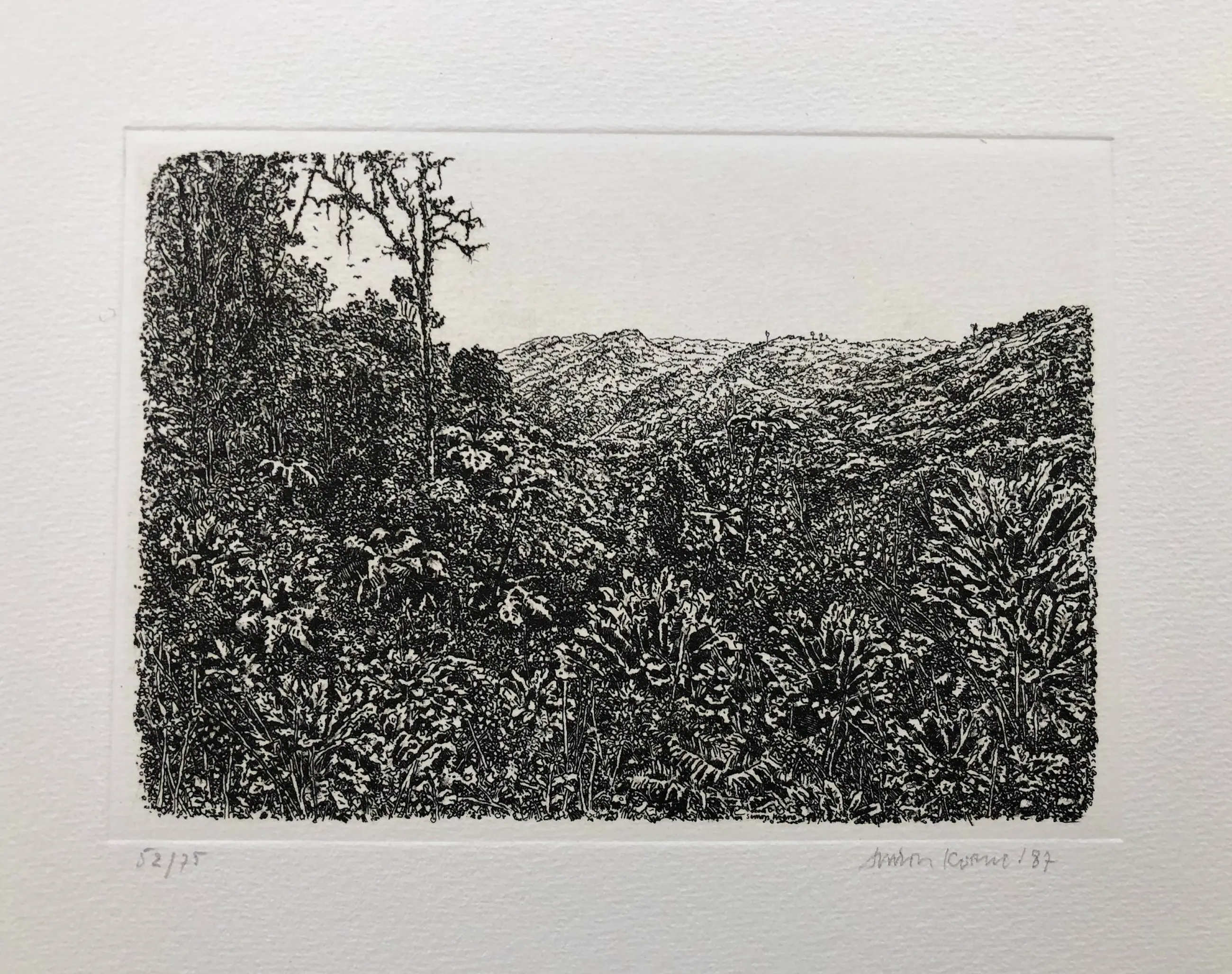Midden onder in de etsplaat gesigneerd: Simon Koene 1987 Rechtsonder met potlood gesigneerd: Simon Koene '87
