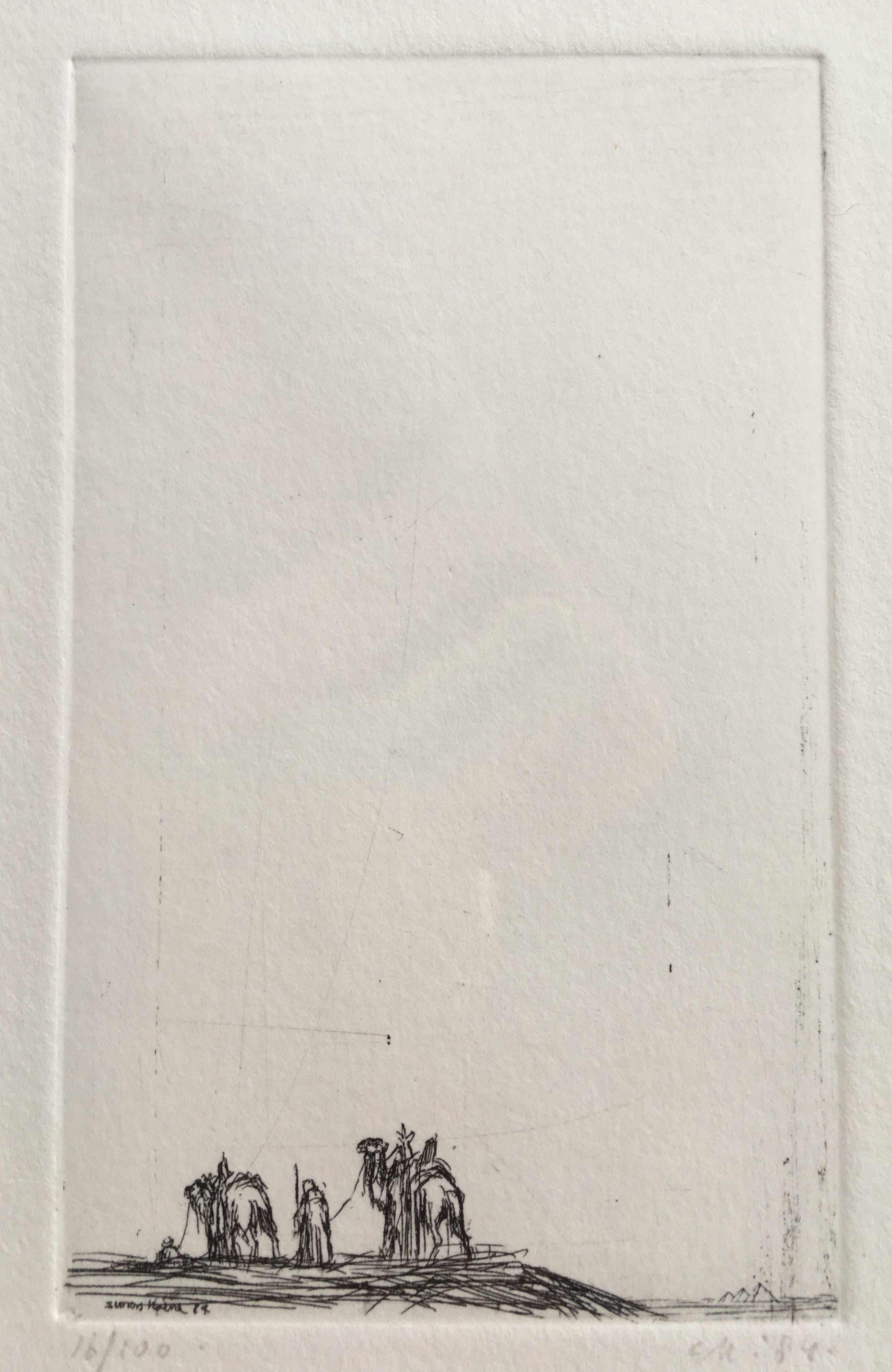Ets uit oosterse periode. In de plaat gesigneerd Simon Koene 84. Onder de ets met potlood gesigneerd SK84.