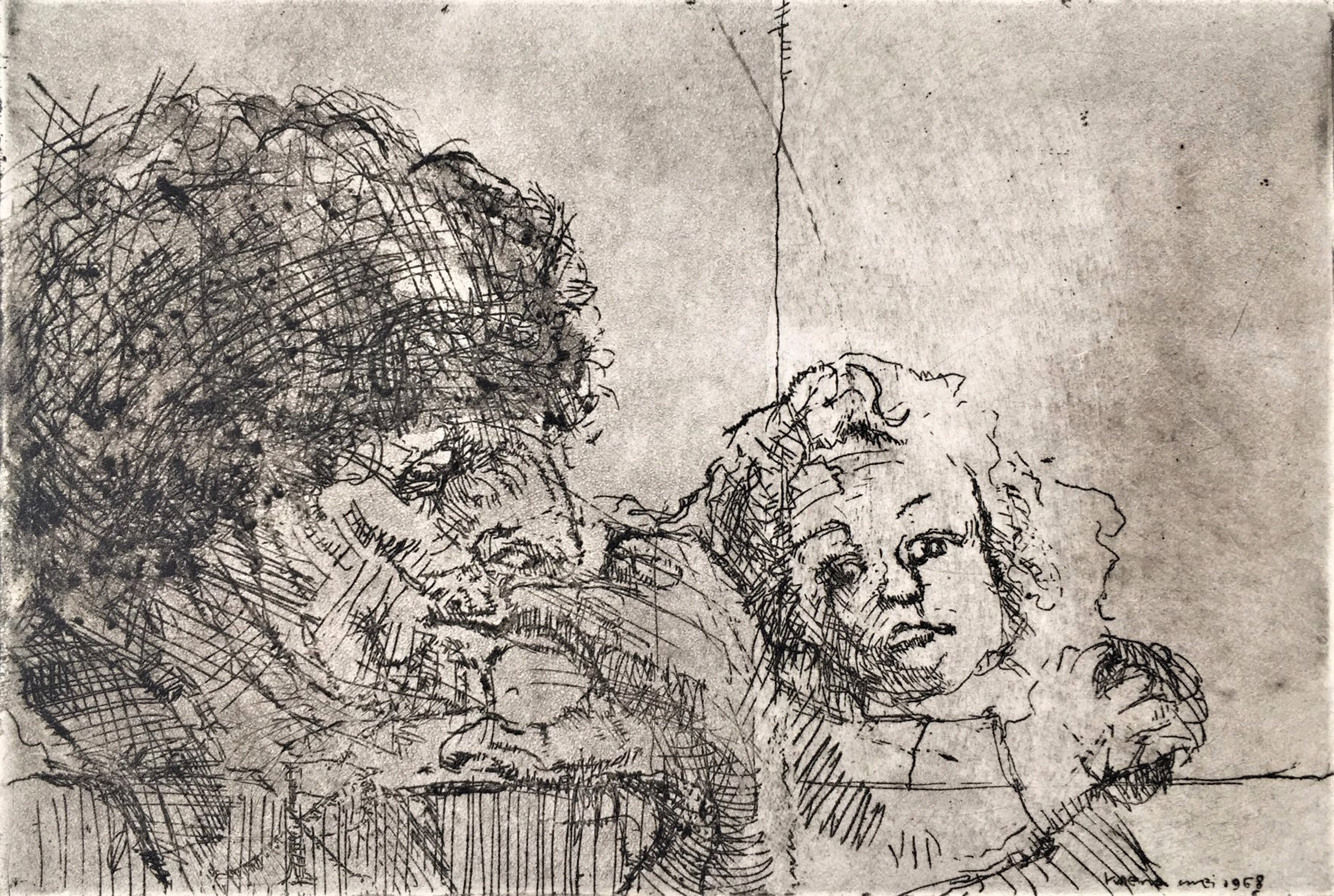 Zeer vroege ets Rechtsonder in de etsplaat gesigneerd: Koene mei 1968 Rechtsonder met potlood gesigneerd: Simon Koene 1968