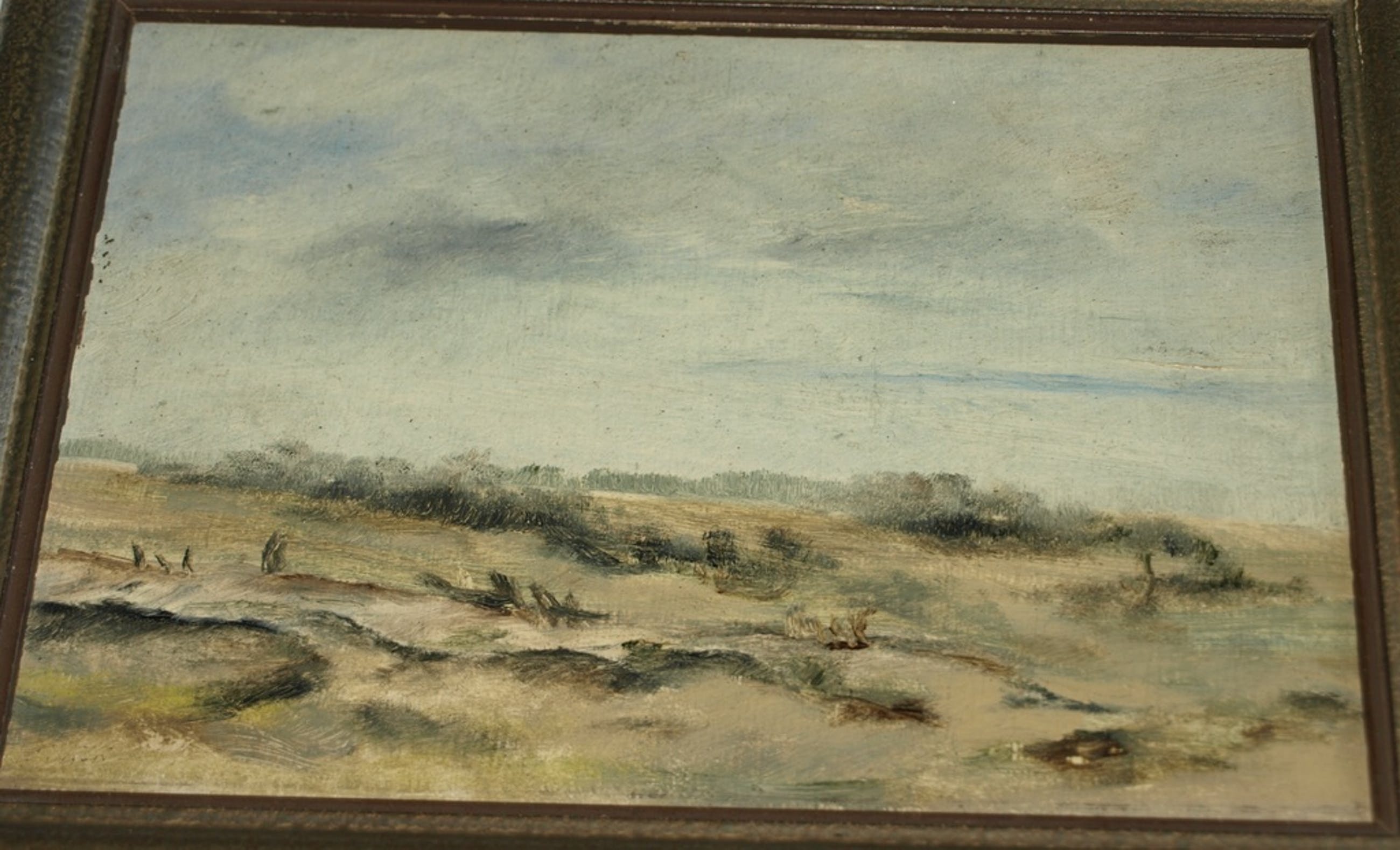 Geschilderd op paneel en ingelijst in een houten lijst.