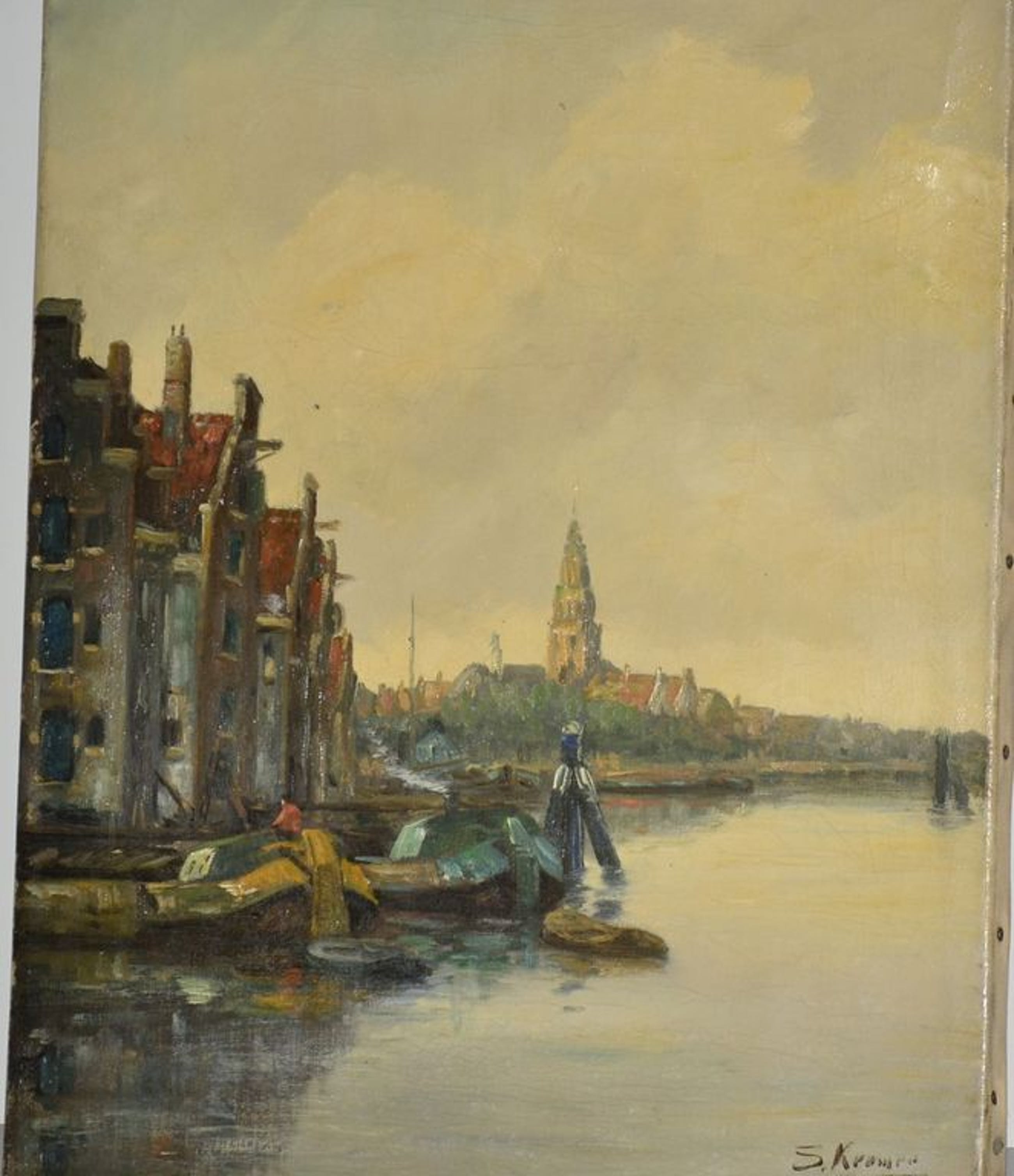 Mooie olieverfschilderij op doek van Simon Kramer van de Amsterdamse grachten