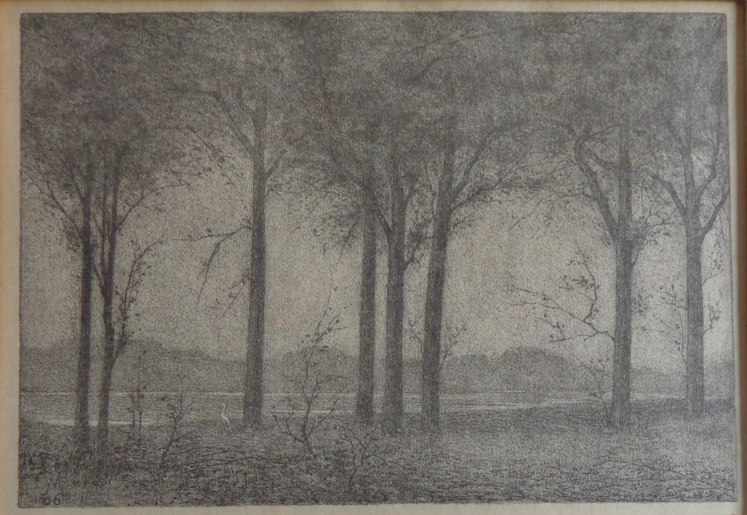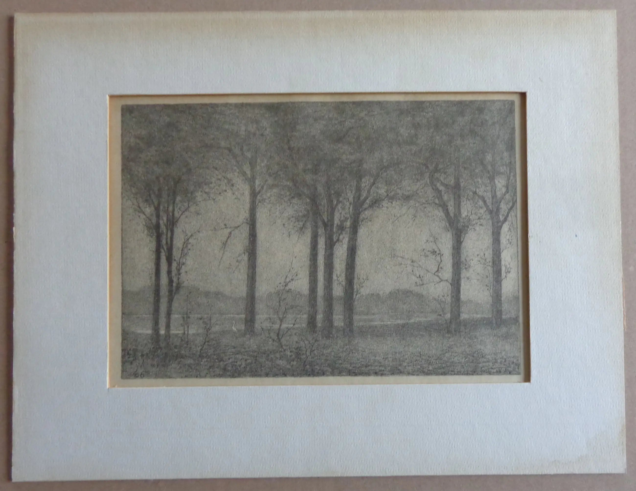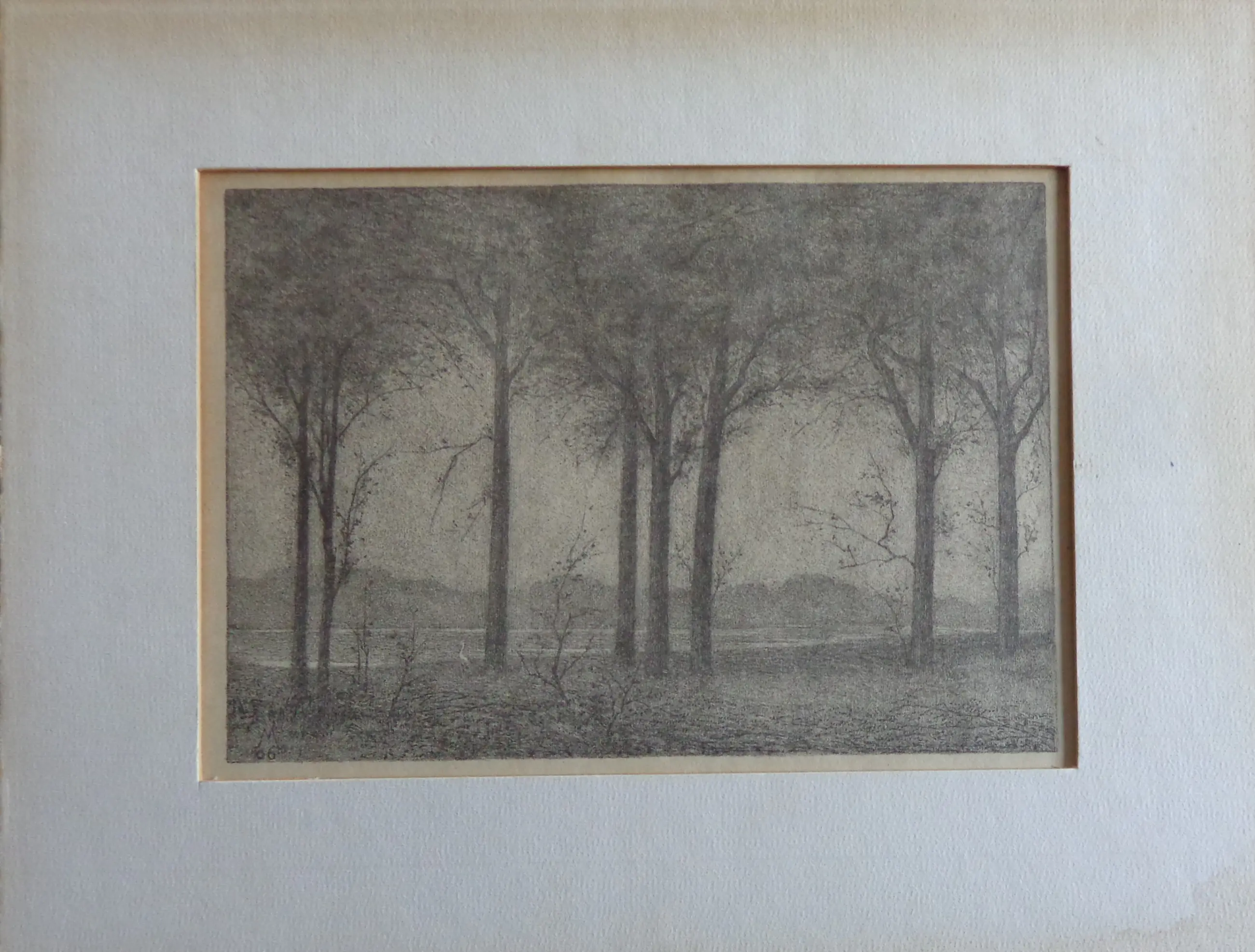 Simon Moulijn - BOMEN NAAST DE RIVIER / ZW-W LITHO / 22x29cm / 1906 / PASSE-PARTOUT