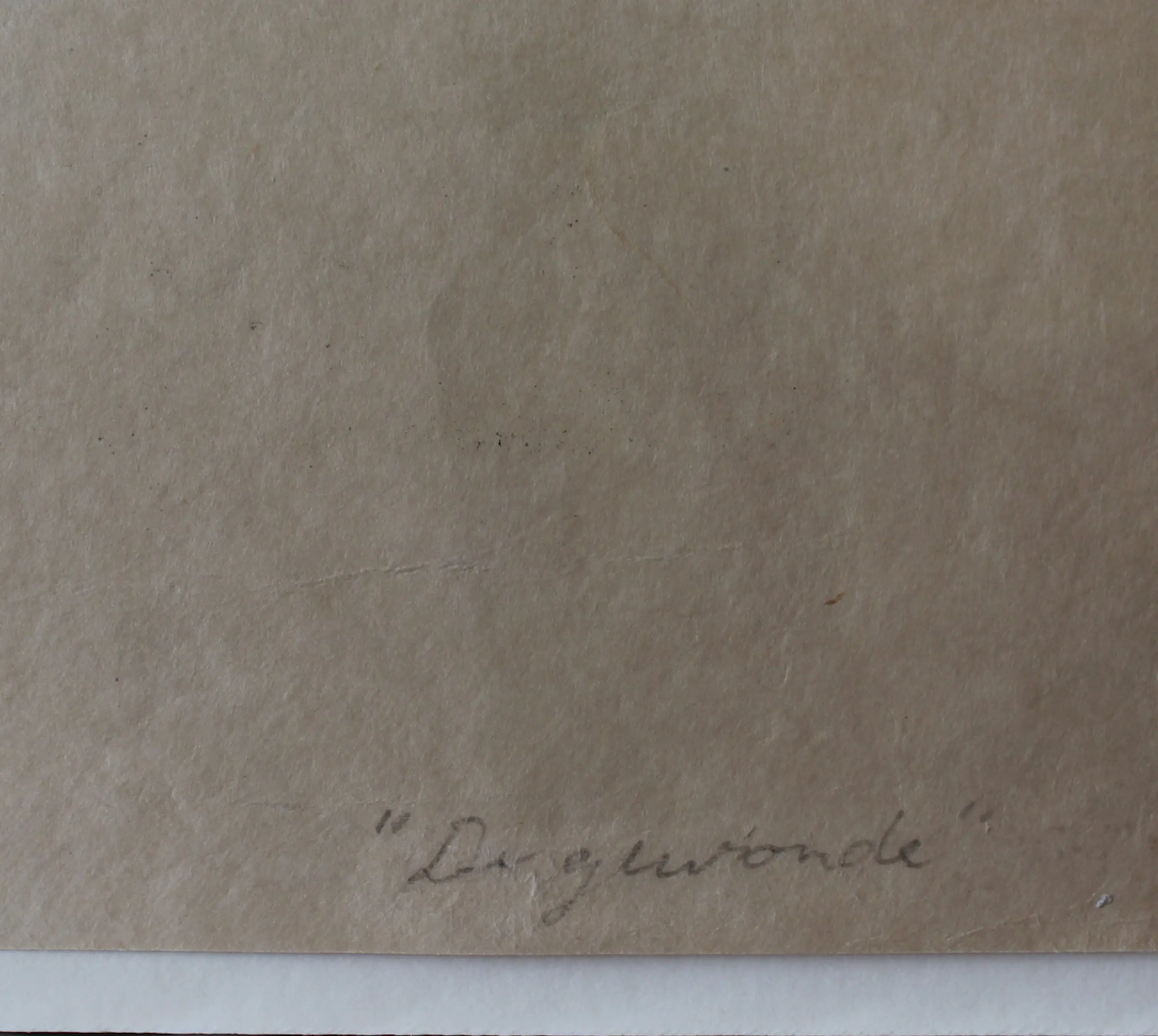 Gesigneerd rechtsonder. Betiteld aan achterkant blad (zie foto).