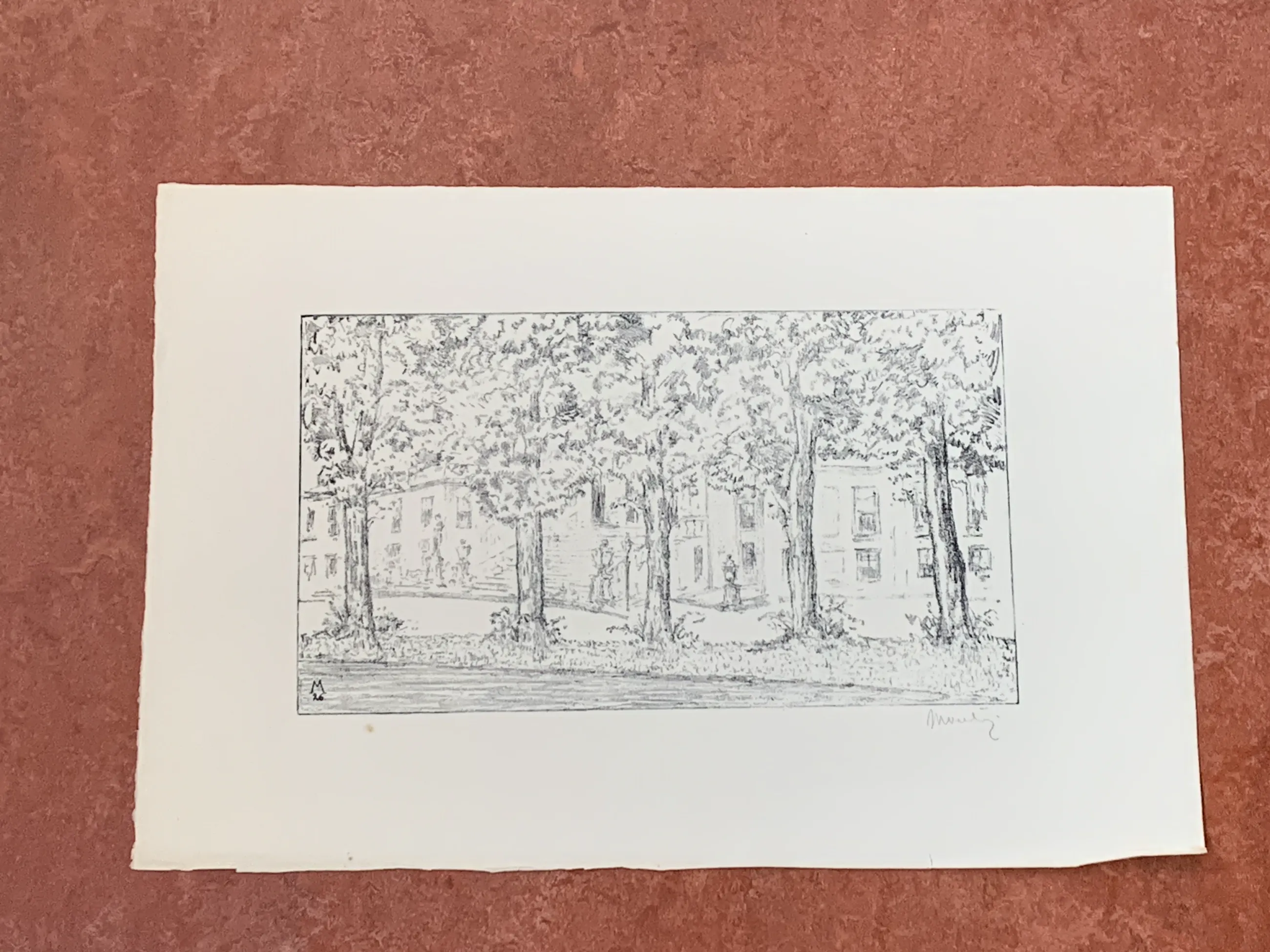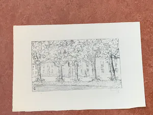 Mooie litho van Simon Moulijn van Huis ten Bosch. Deze litho is afkomstig van de erven van Simon Moulijn. De litho maakt deel uit van de studie naar de oude buitenplaatsen rondom 's-Gravenhage. Moulijn heeft deze buitenplaatsen getekend in de periode 1925-1927. Afmetingen blad zijn: 31,8 x 47,8.