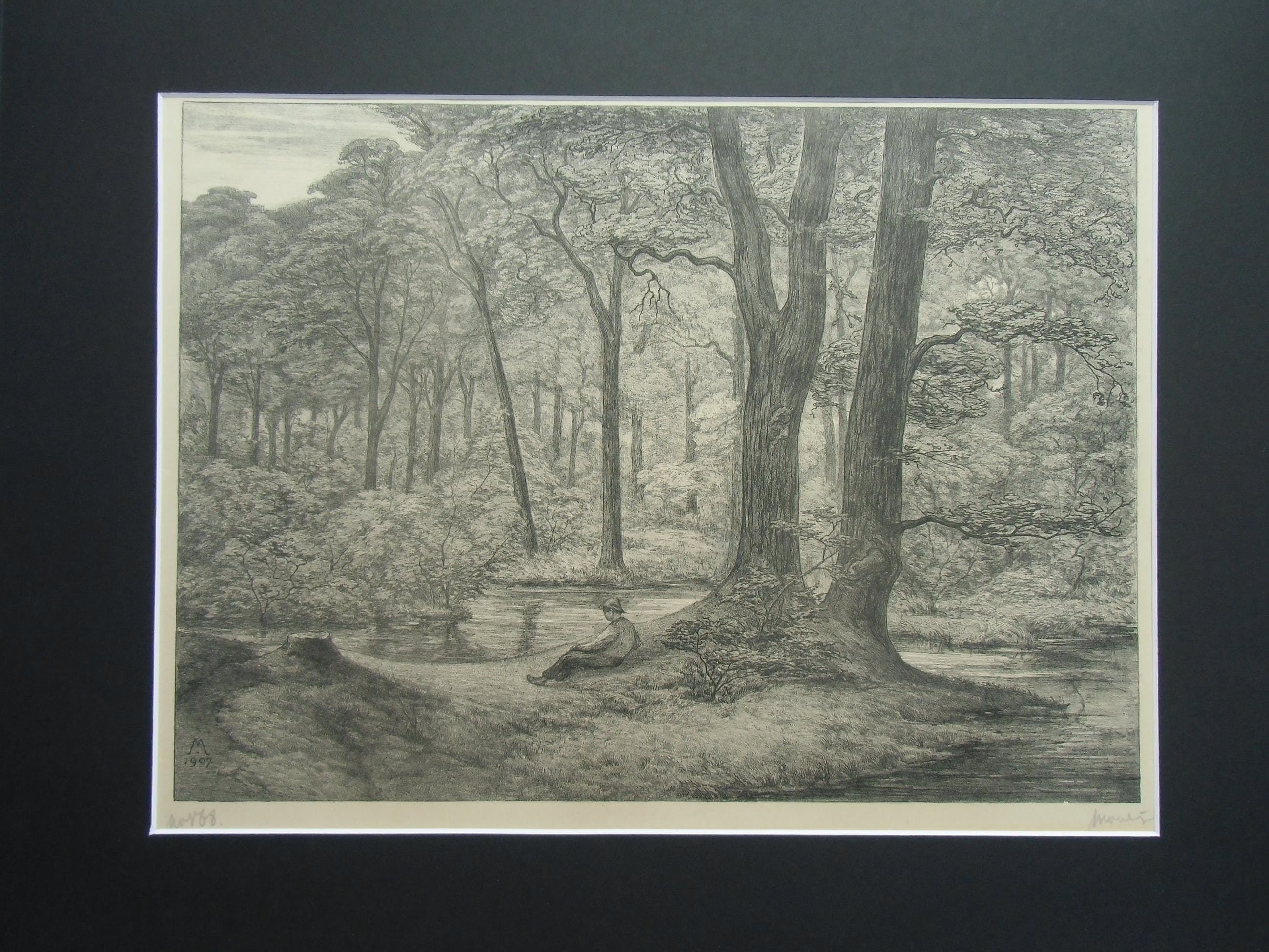 Litho uit 1907 op papier Chine appliqué. Met potlood gesigneerd en genummerd. Initialen en datering l.o. Catalogus Moulijn nr. 40. Premieprent Haagse Kunstkring.