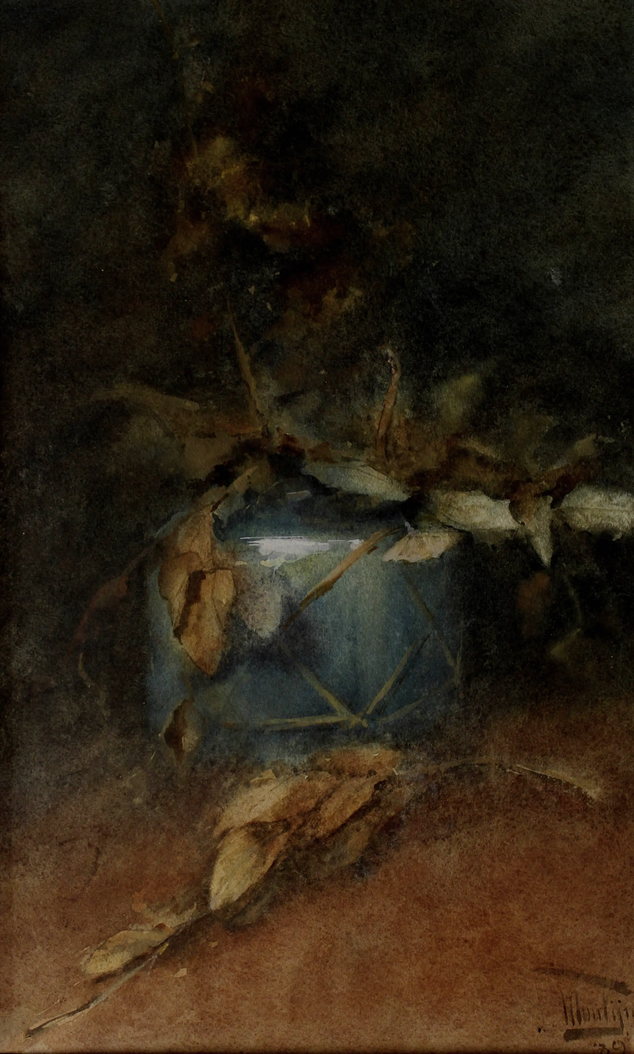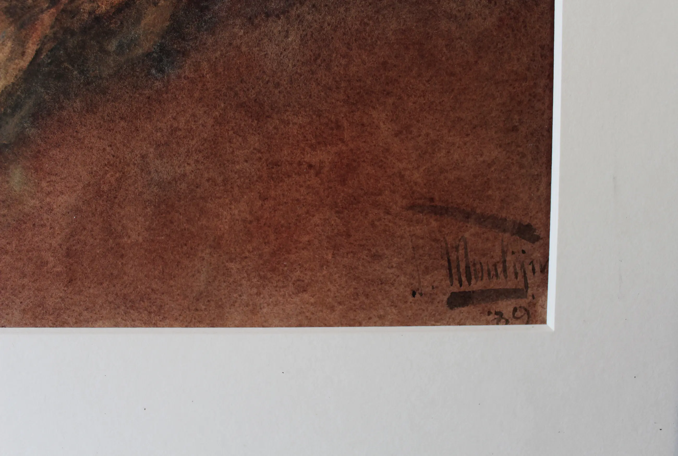 Zeer fraaie, maar donkere aquarel, van Simon Moulijn uit 1889.