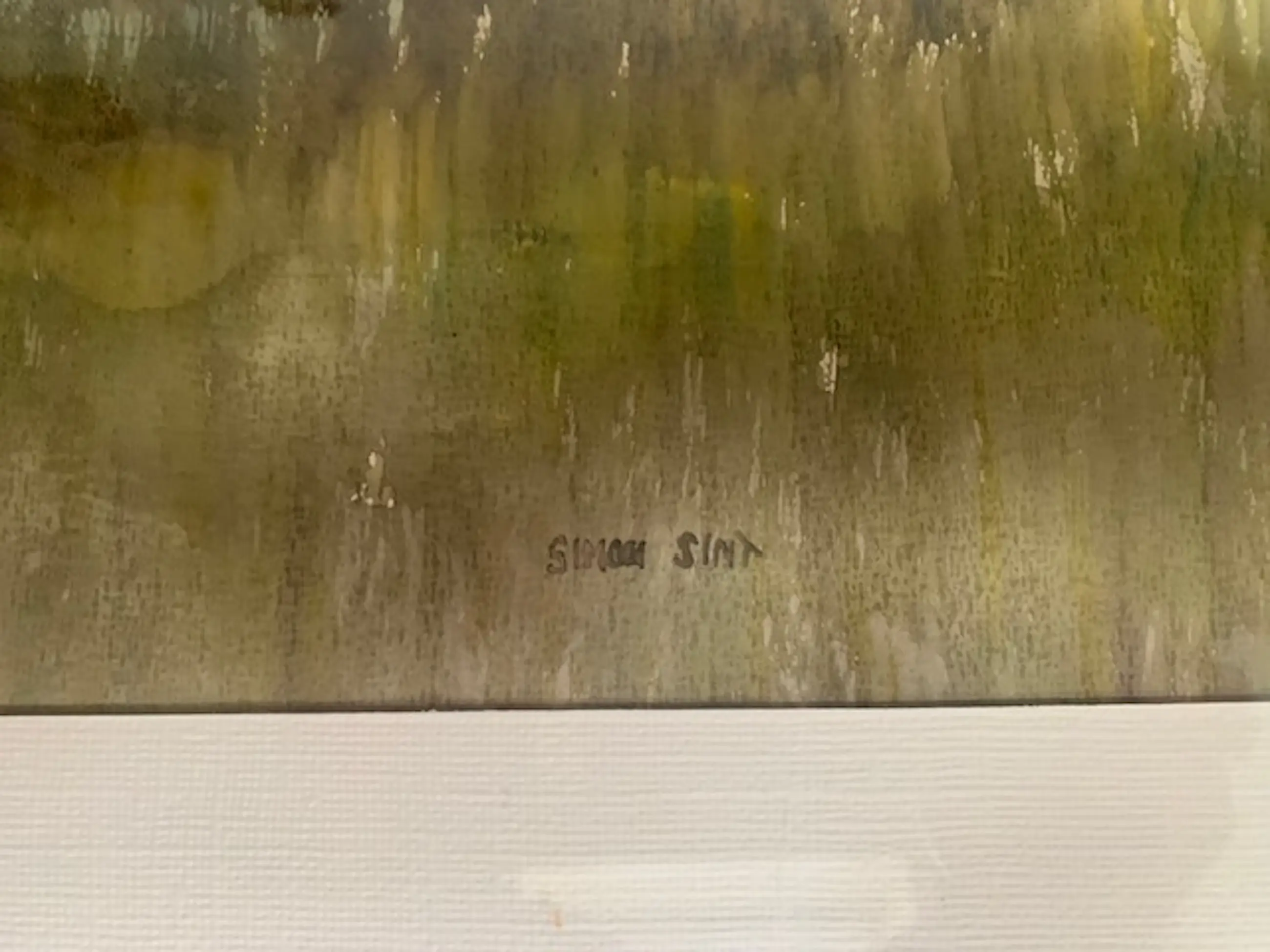 Originele aquarel van Simon Sint waarschijnlijk uit periode rond 1985 Ingelijst met sjabloon achter glas in eenvoudige houten lijst in mahonie kleur gebeitst