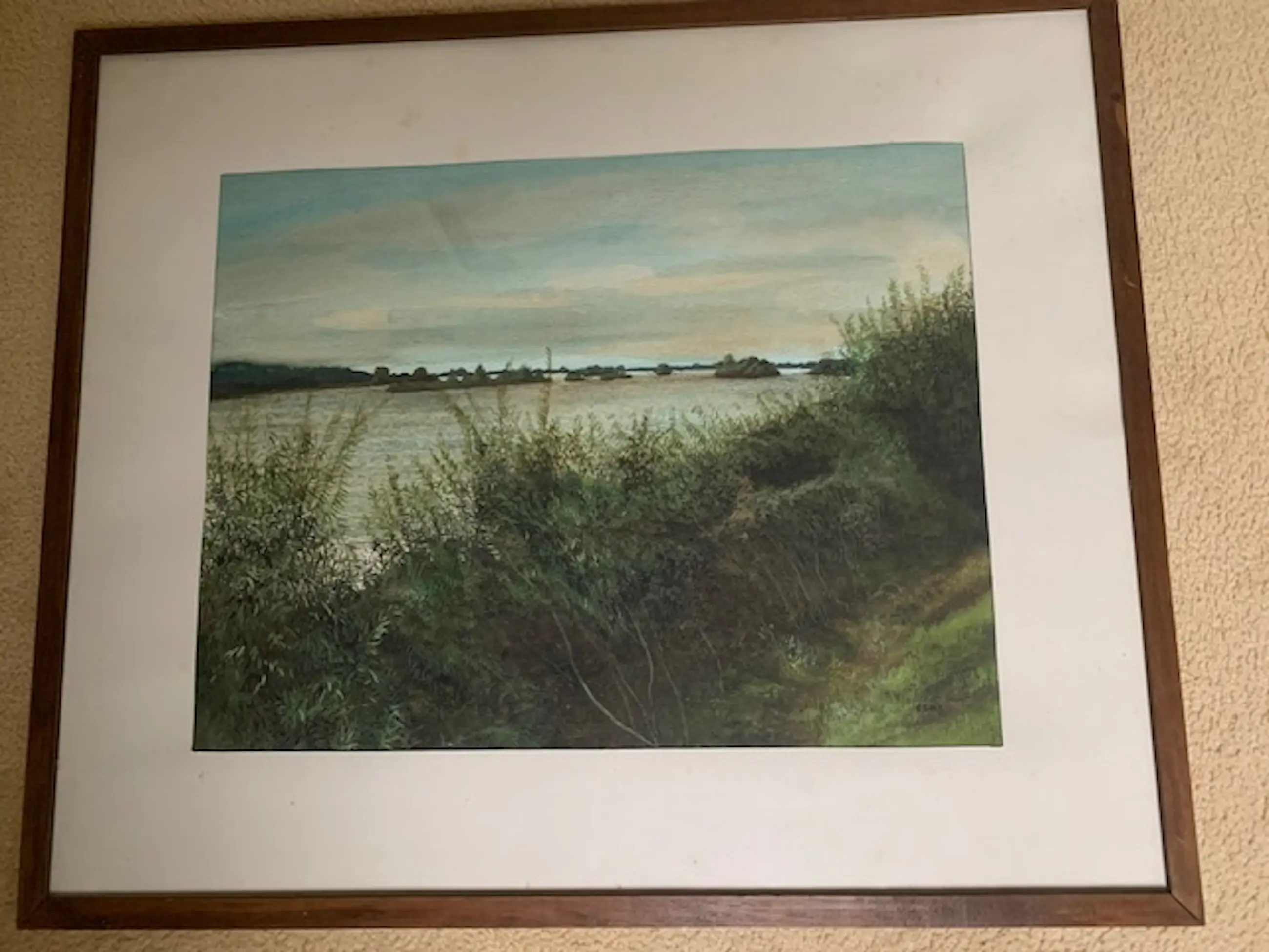 De aquarel verkeert in zeer goede staat , is onbeschadigd en vlak. Ingelijst achter glas met passe-partout en voorzien van een eenvoudige houtenlijst gebeitst in mahoniekleur