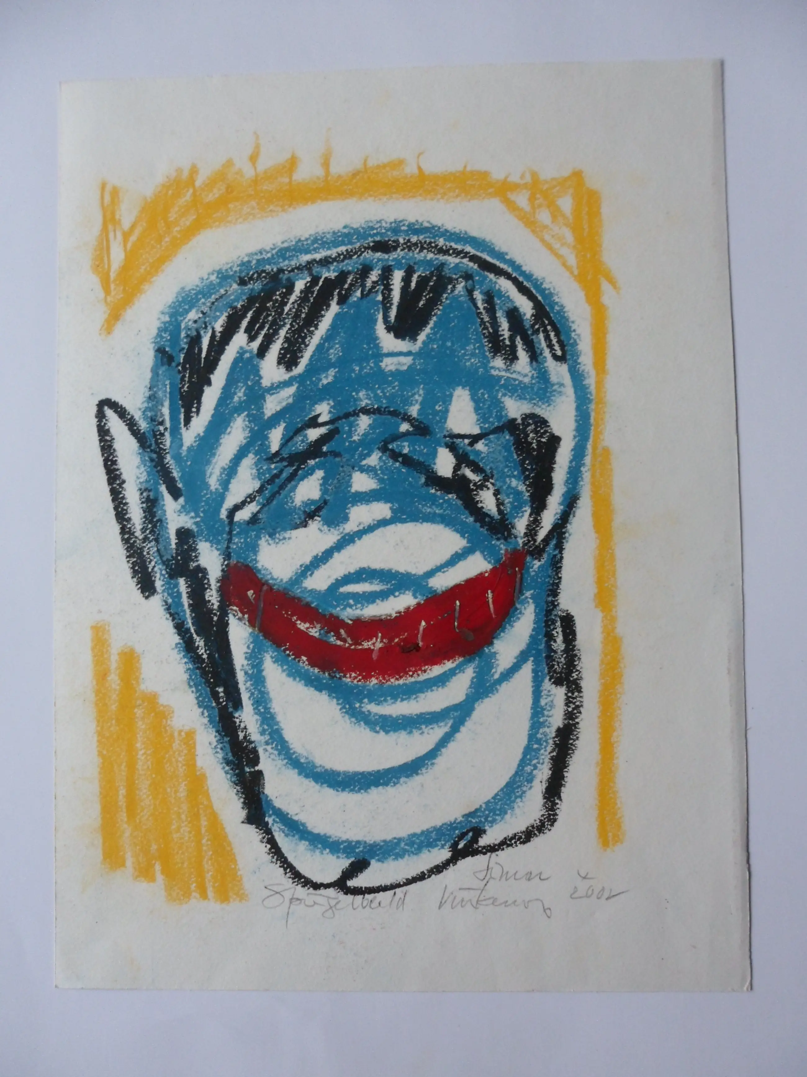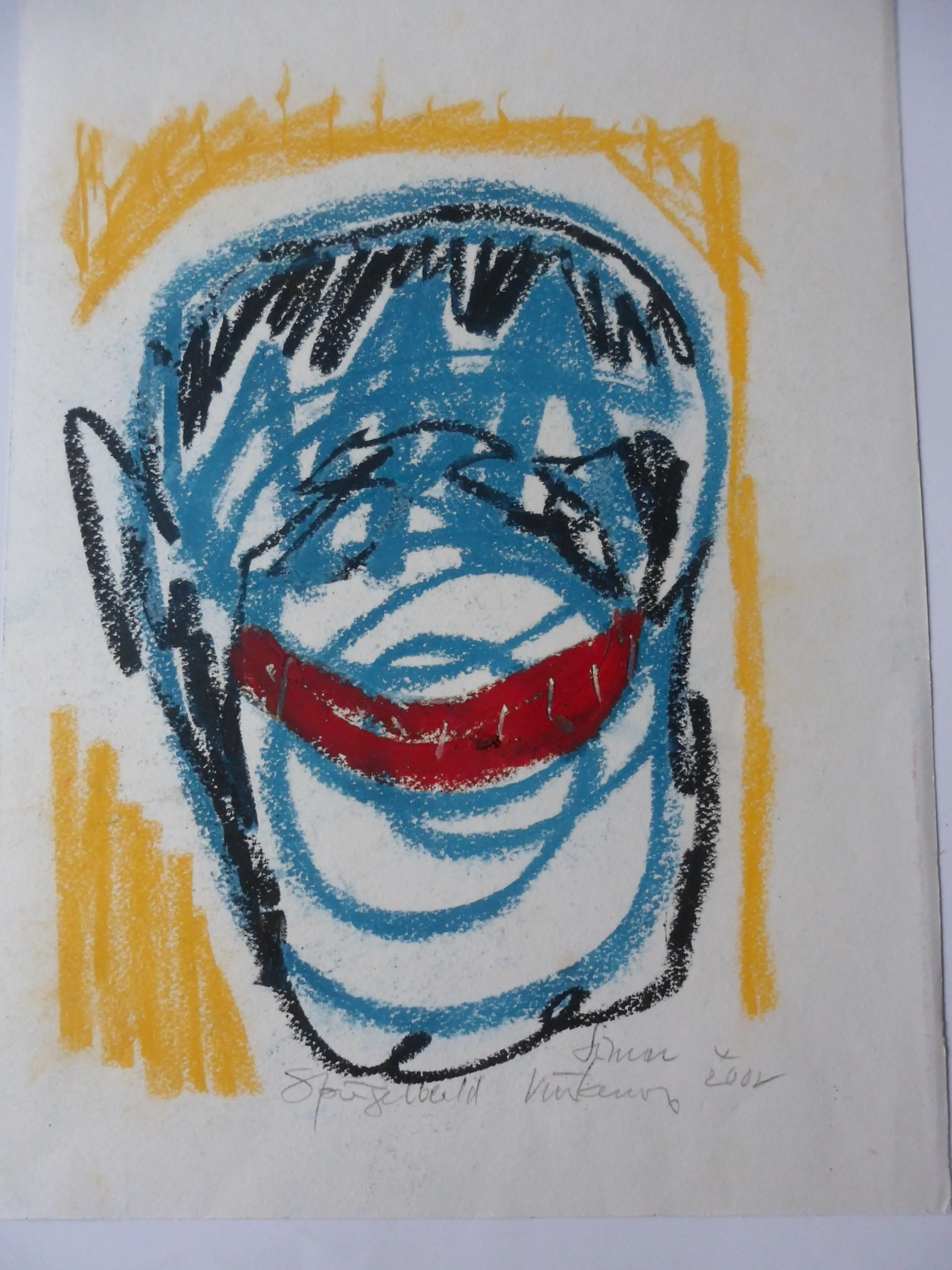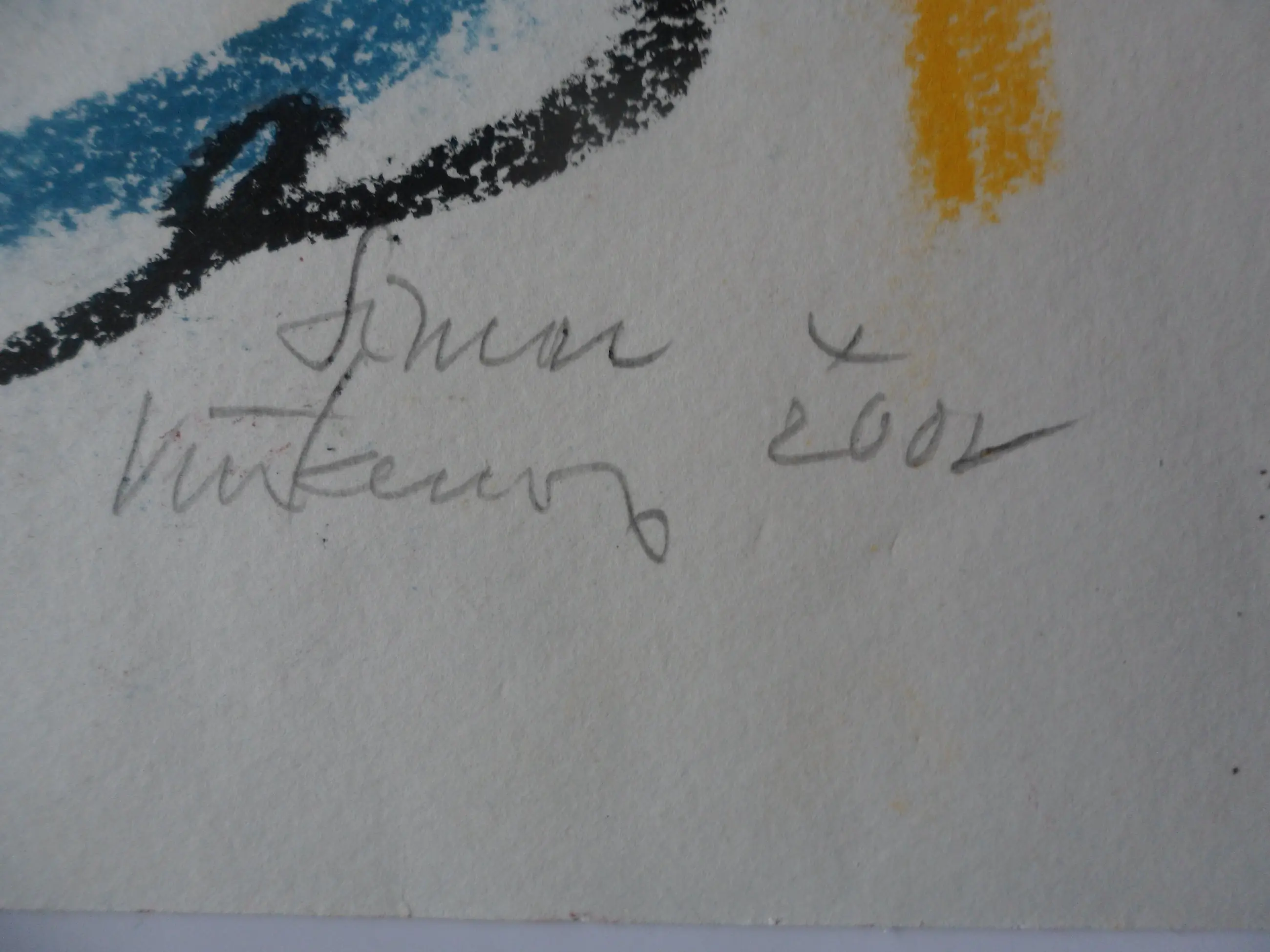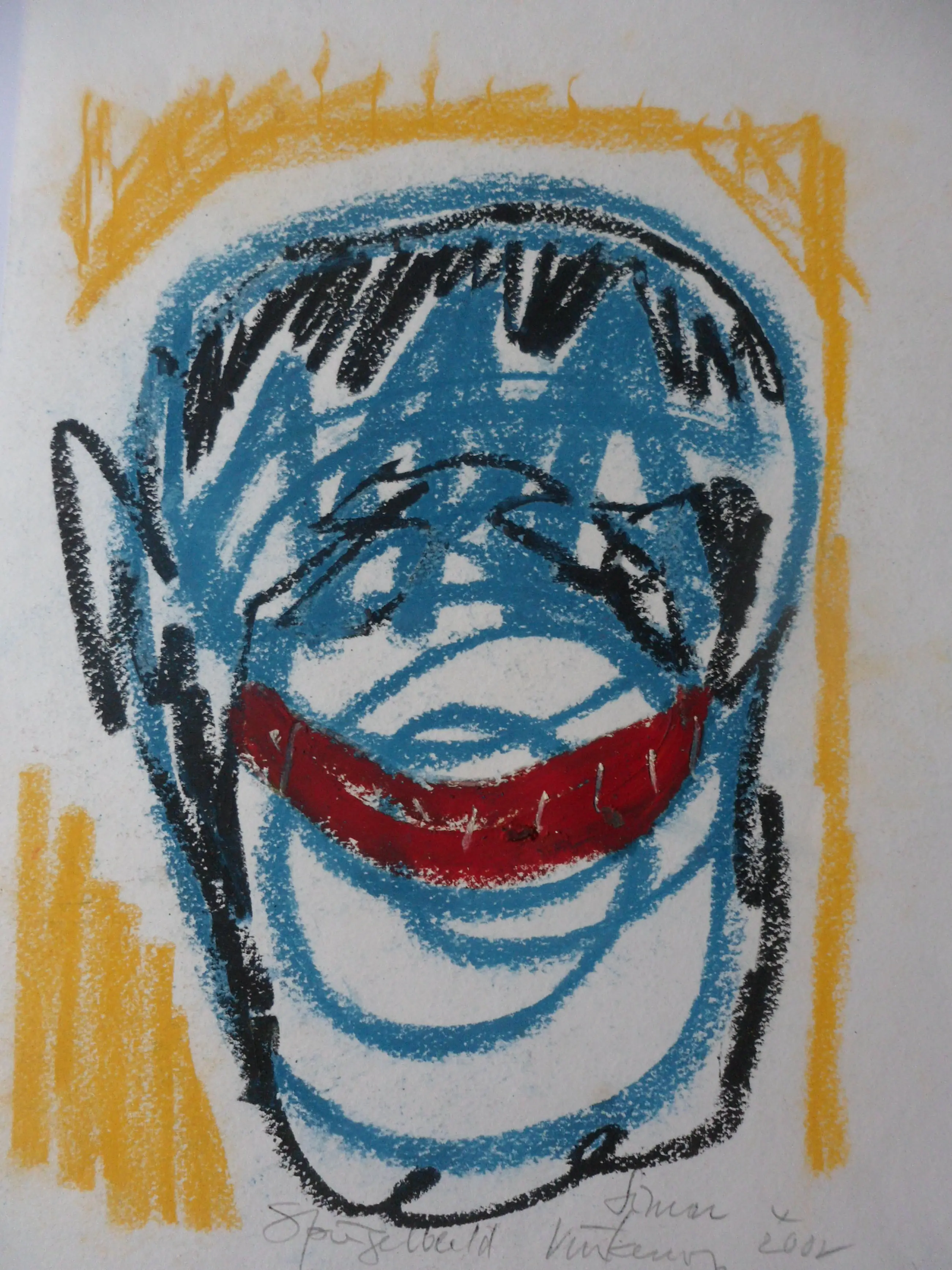 Krijttekening van Simon Vinkenoog. Titel: Spiegelbeeld Jaar: 2002. Afmetingen blad: H40 x B30cm. Het werk is rechts onderaan gesigneerd door de kunstenaar.