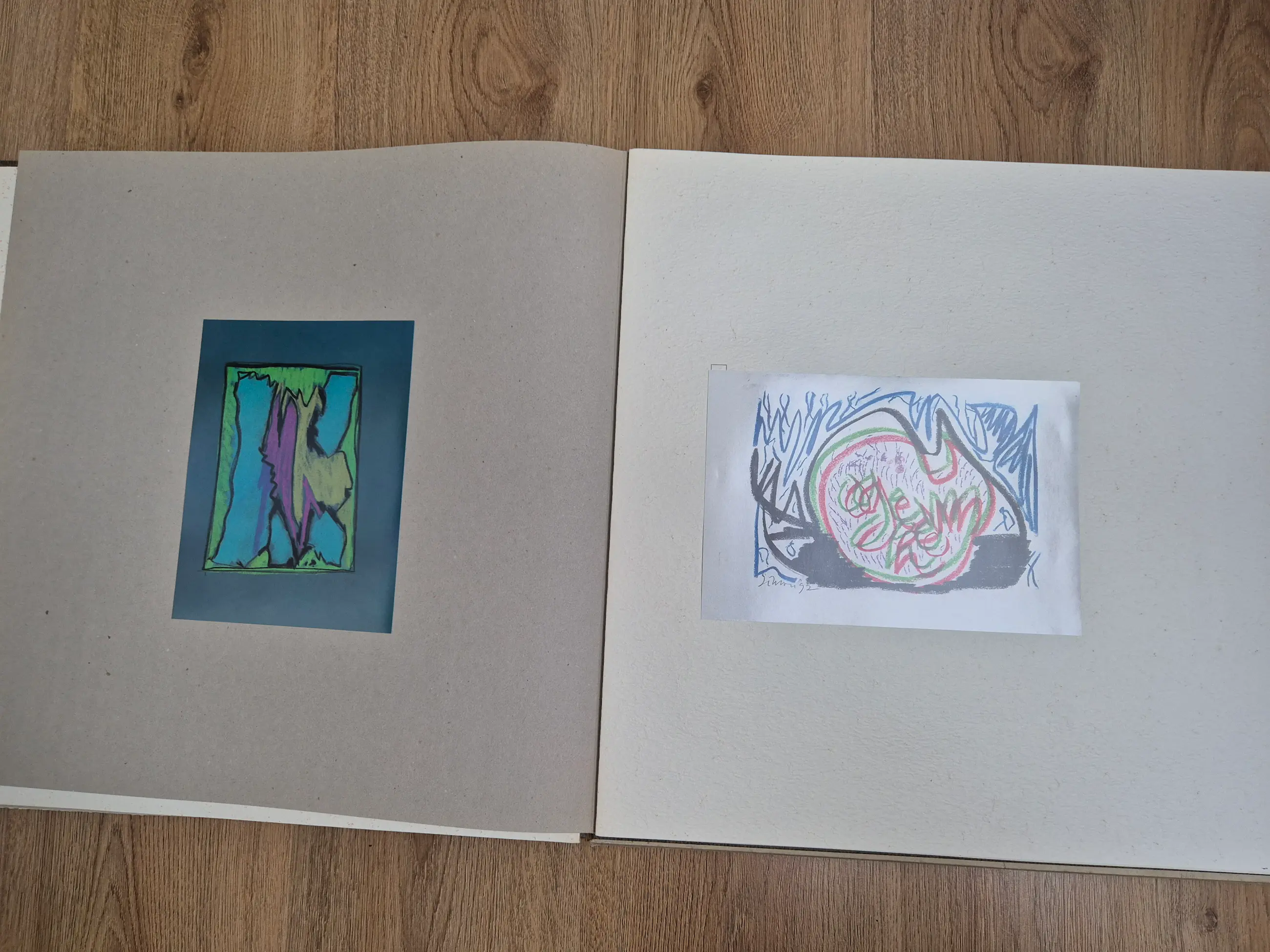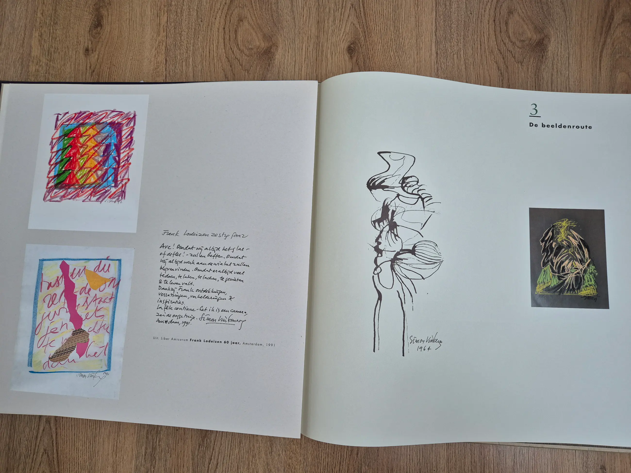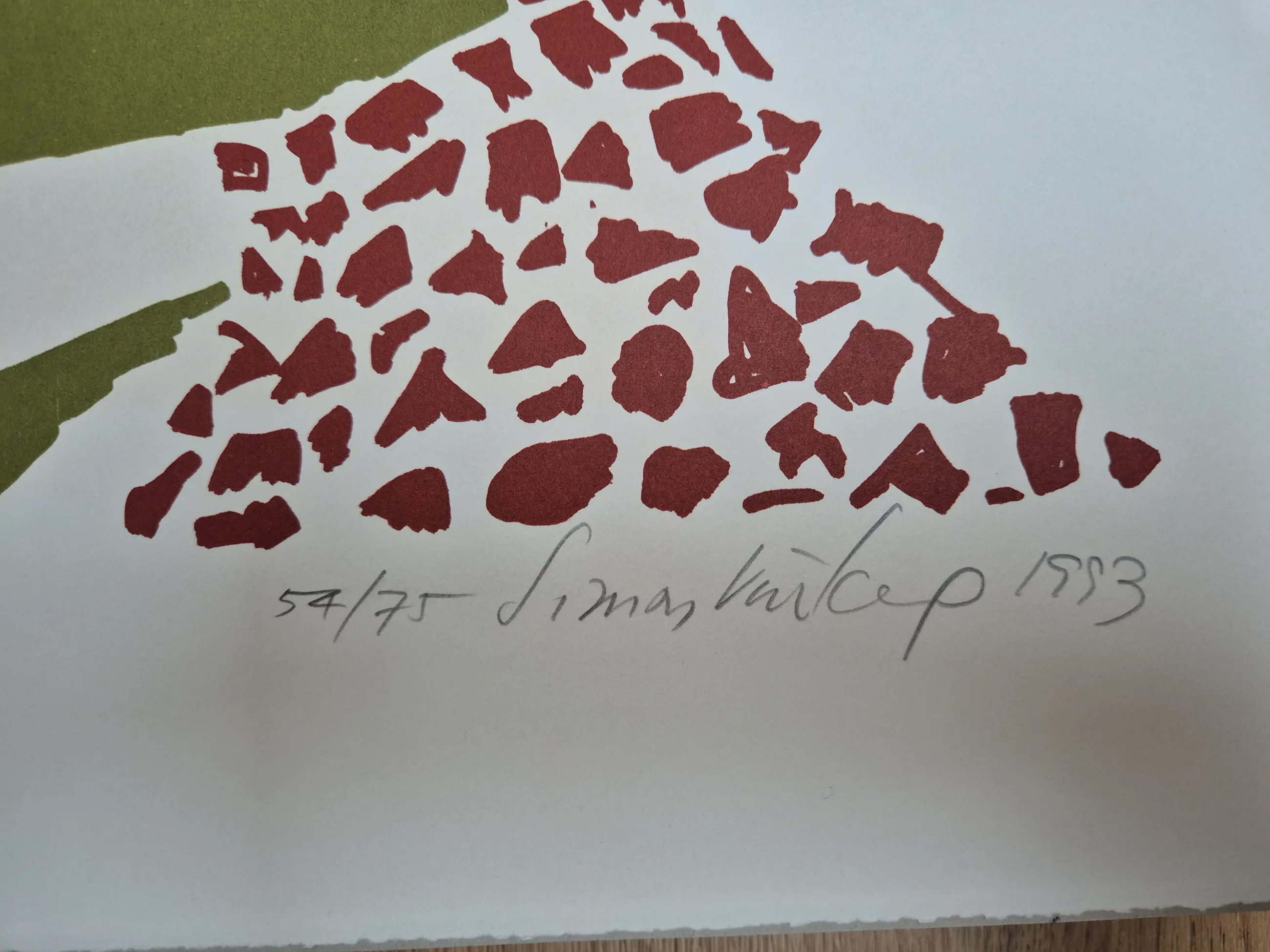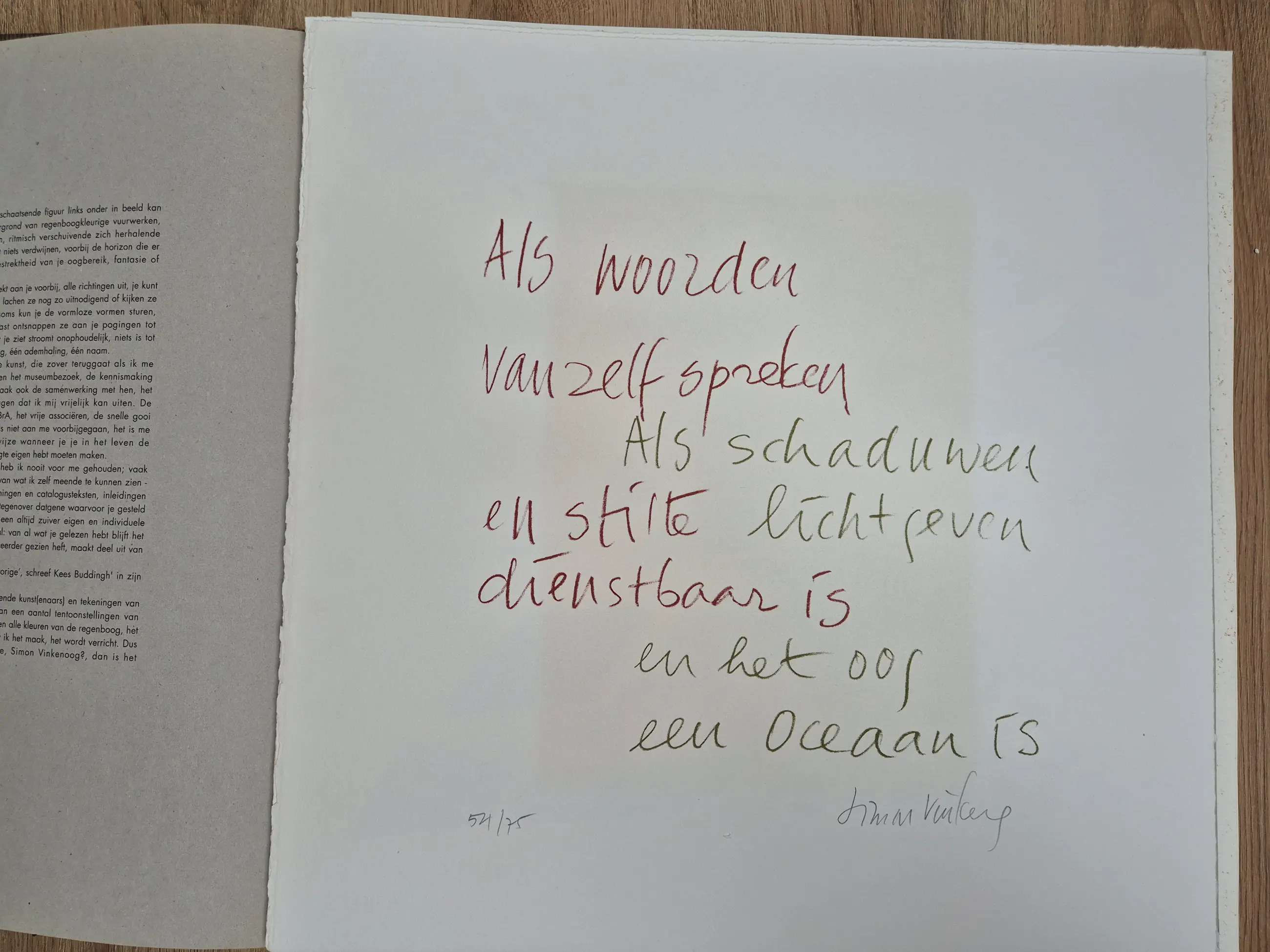 Louter Genieten, een boek met teksten en tekeningen van Simon Vinkenoog met 2 met de hand ondertekende zeefdrukken op handgeschept papier 1) Bericht uit Eden 2) Laat naar je kijken Uitgegeven door Kempen uitgevers in 1993. Nr 54 van 75 Helemaal compleet en onbeschadigd