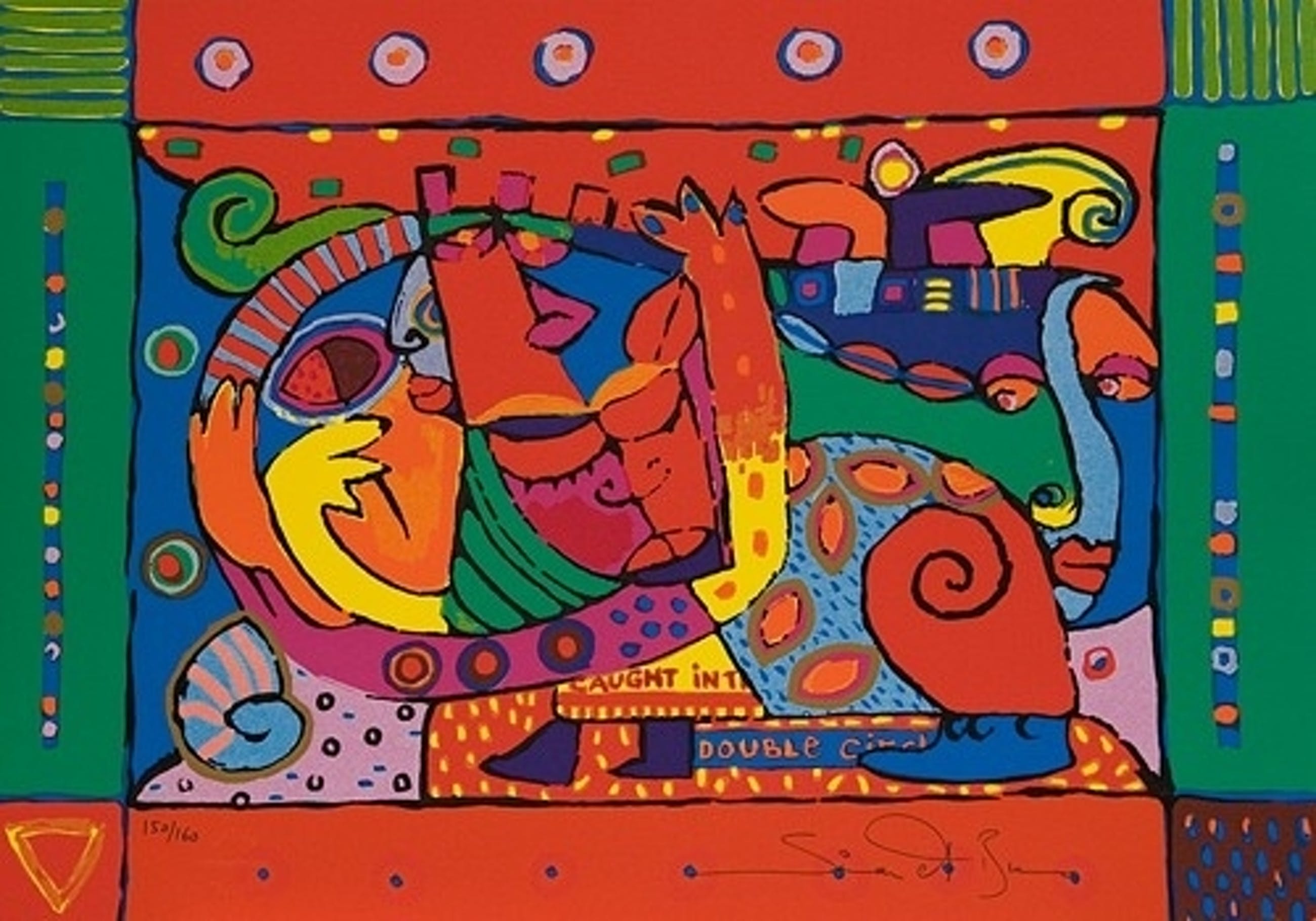 Zeer fraaie grote kleurenzeefdruk van Simon&Bruno Afmeting blad 72x52 cm in perfecte staat handgesigneerd en genummerd oplage 160ex