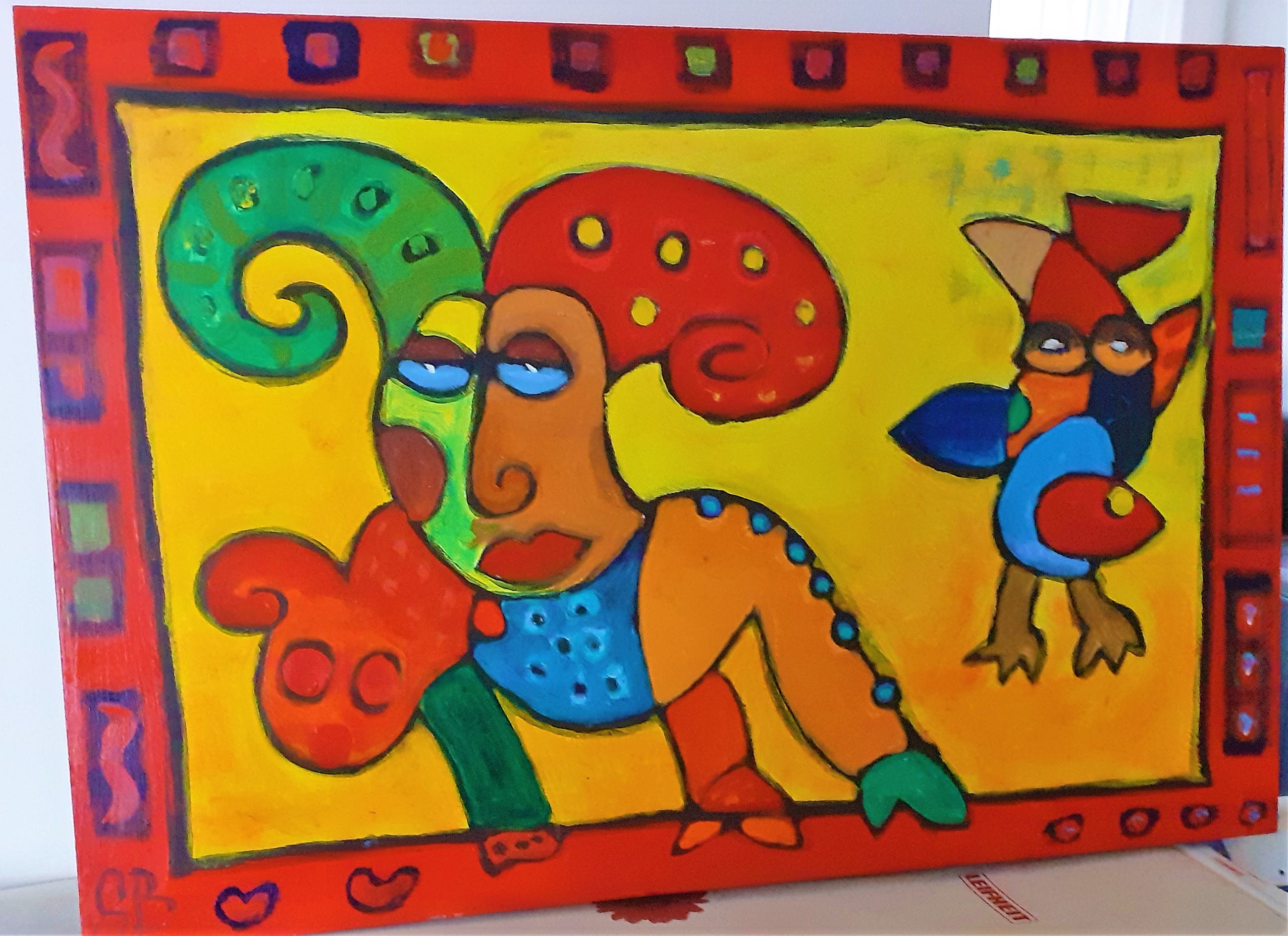 Prachtig, kleurrijk werk op paneel van kunstenaarsduo Simon & Bruno Afm. 90 x 60 x 5 cm Hand gesigneerd linksonder In verband met grootte wordt werk bezorgd in Nederland muv de eilanden tegen € 30,- en naar België via koerier. Geen verzending naar niet-eu landen