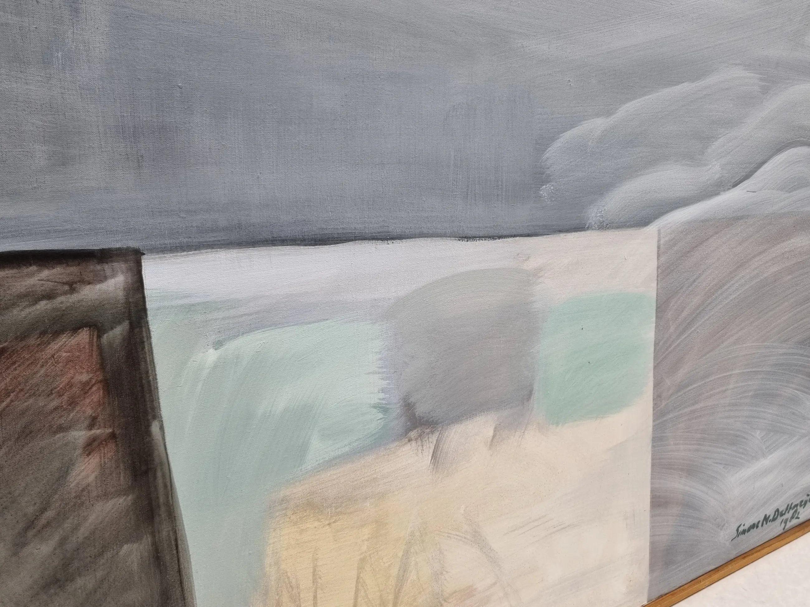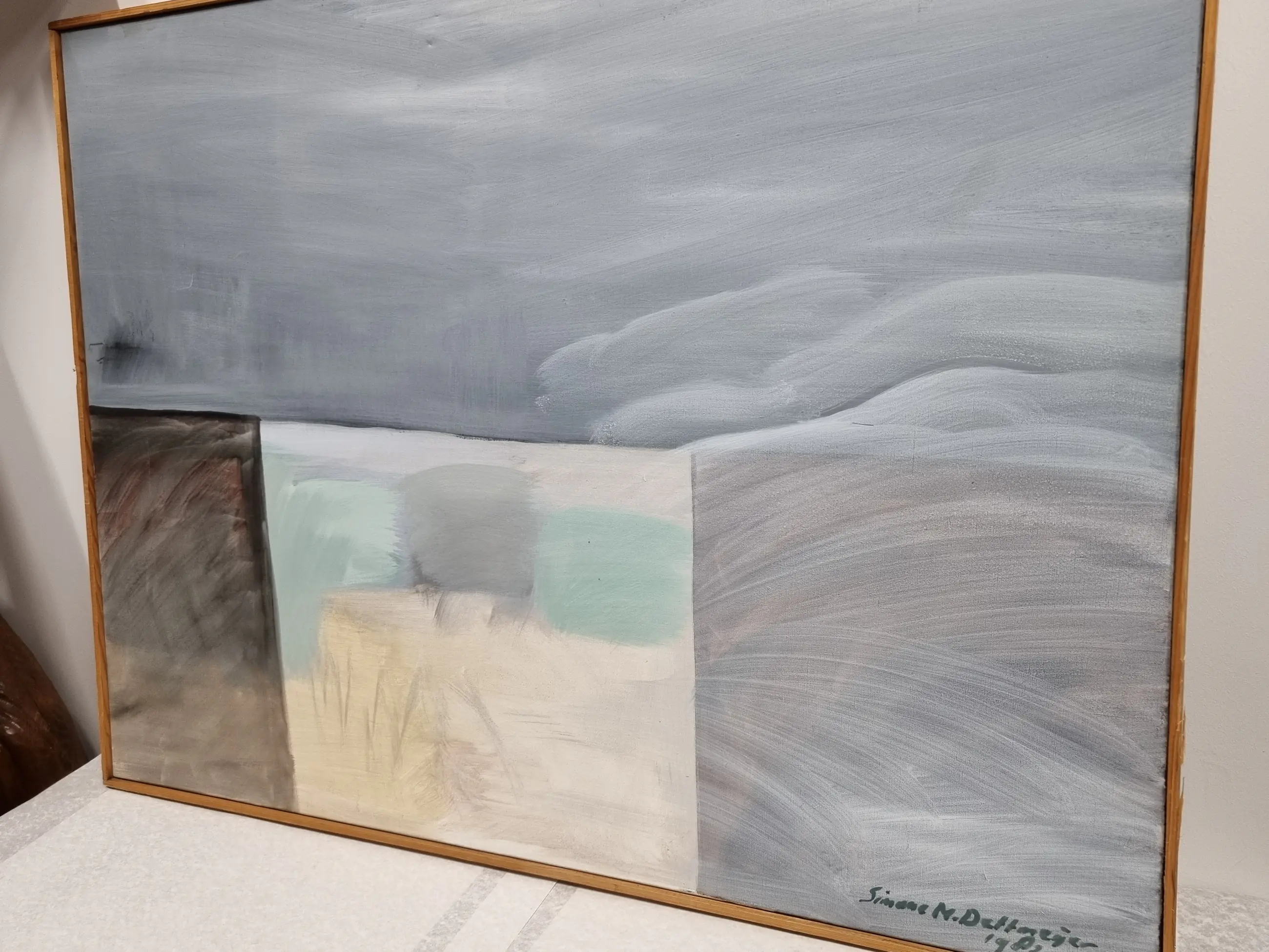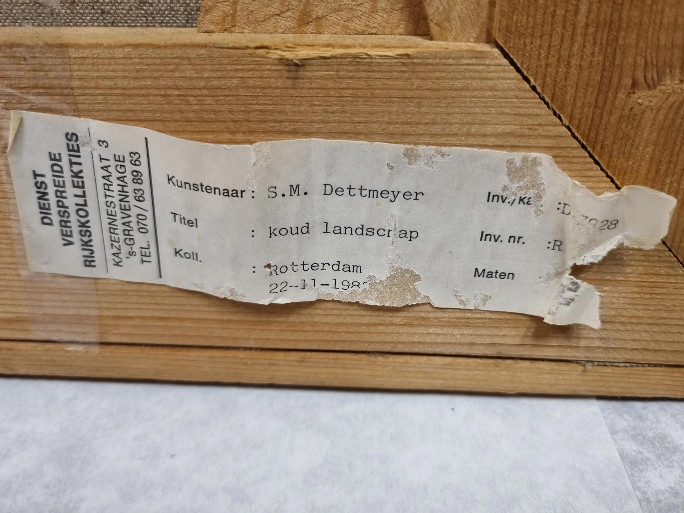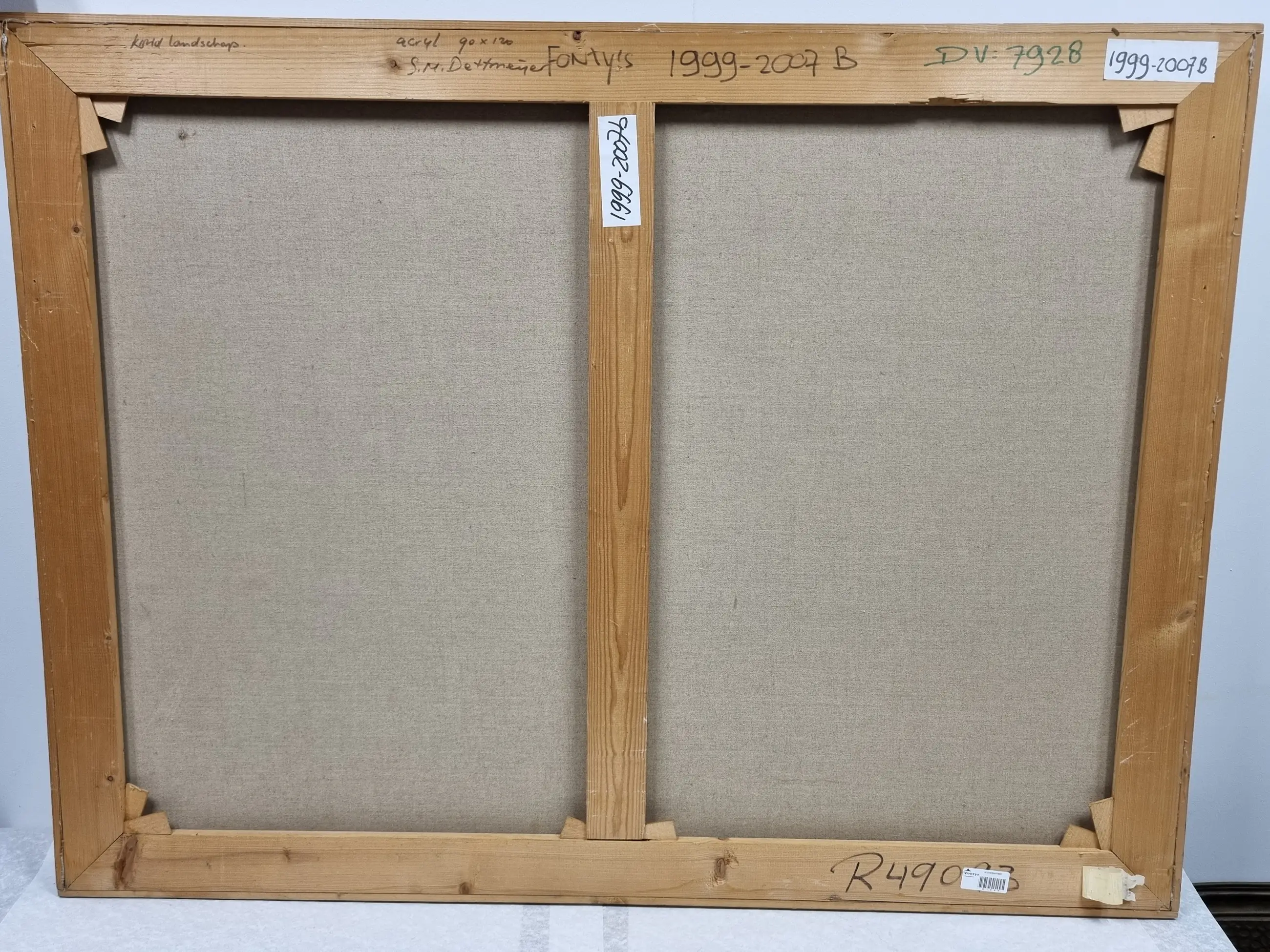 Titel: Koud landschap Gesign. r.o. en 1982 Olieverf op doek Afm. 120x90cm
