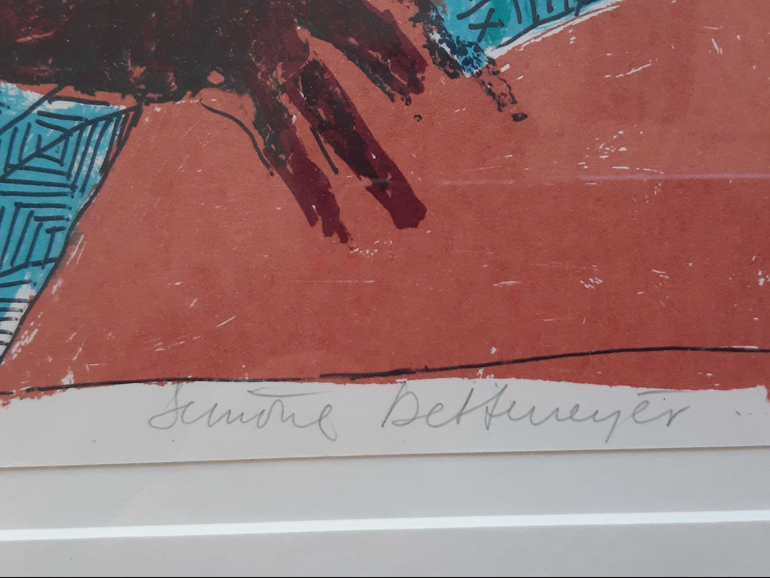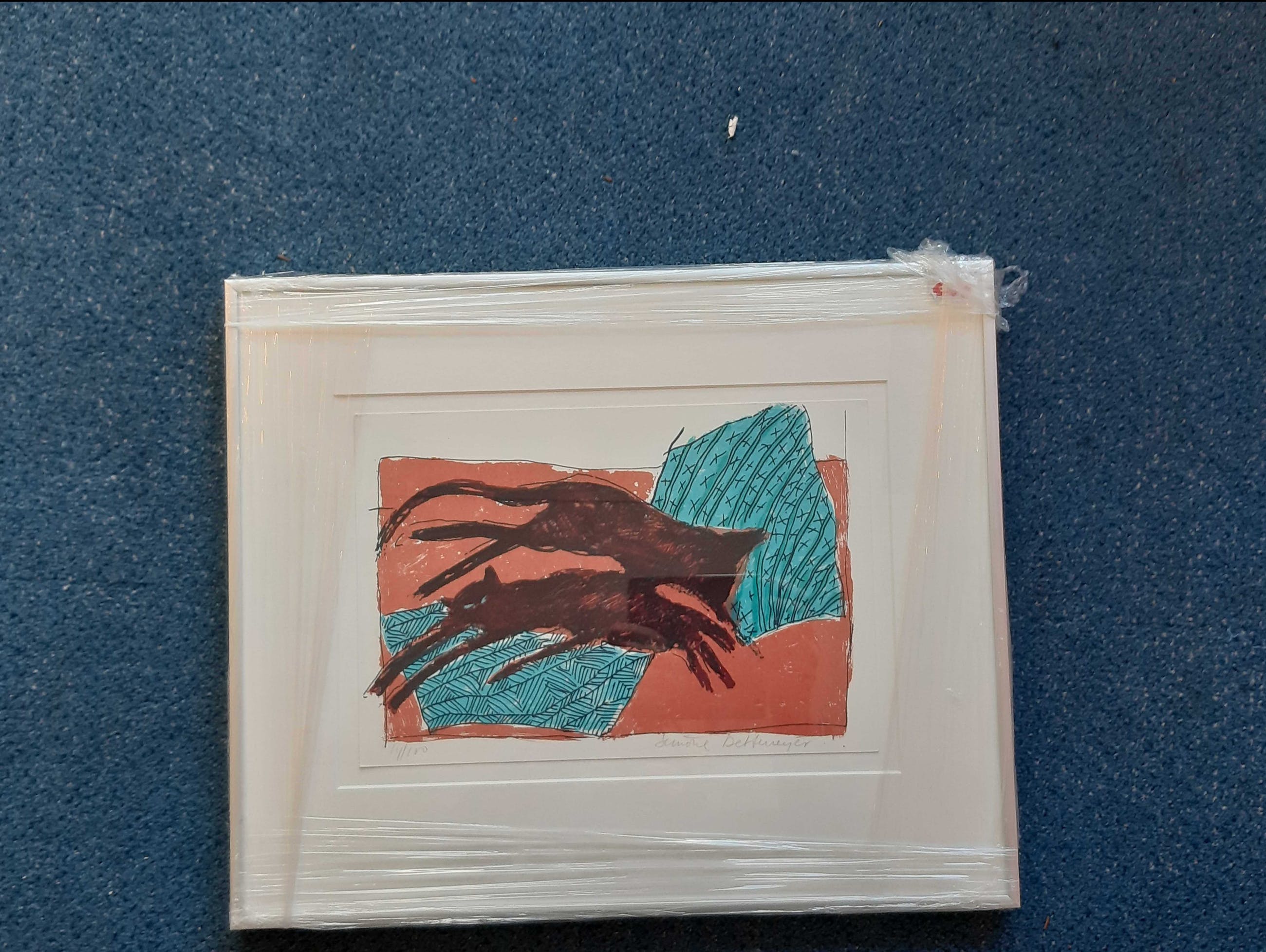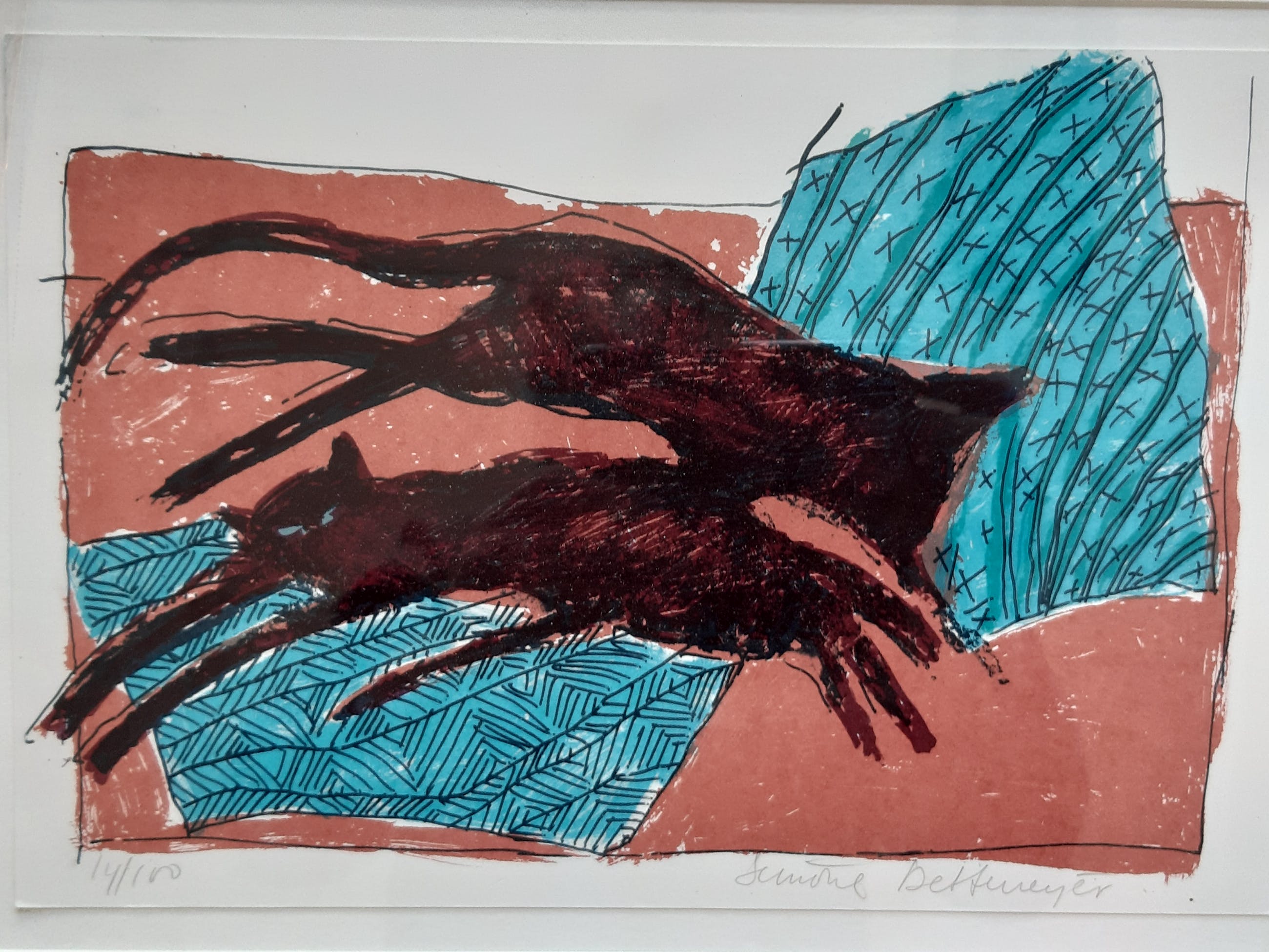 Hele leuke zeefdruk van deze kunstenares; ongetiteld met voorstelling van 2 poezen.