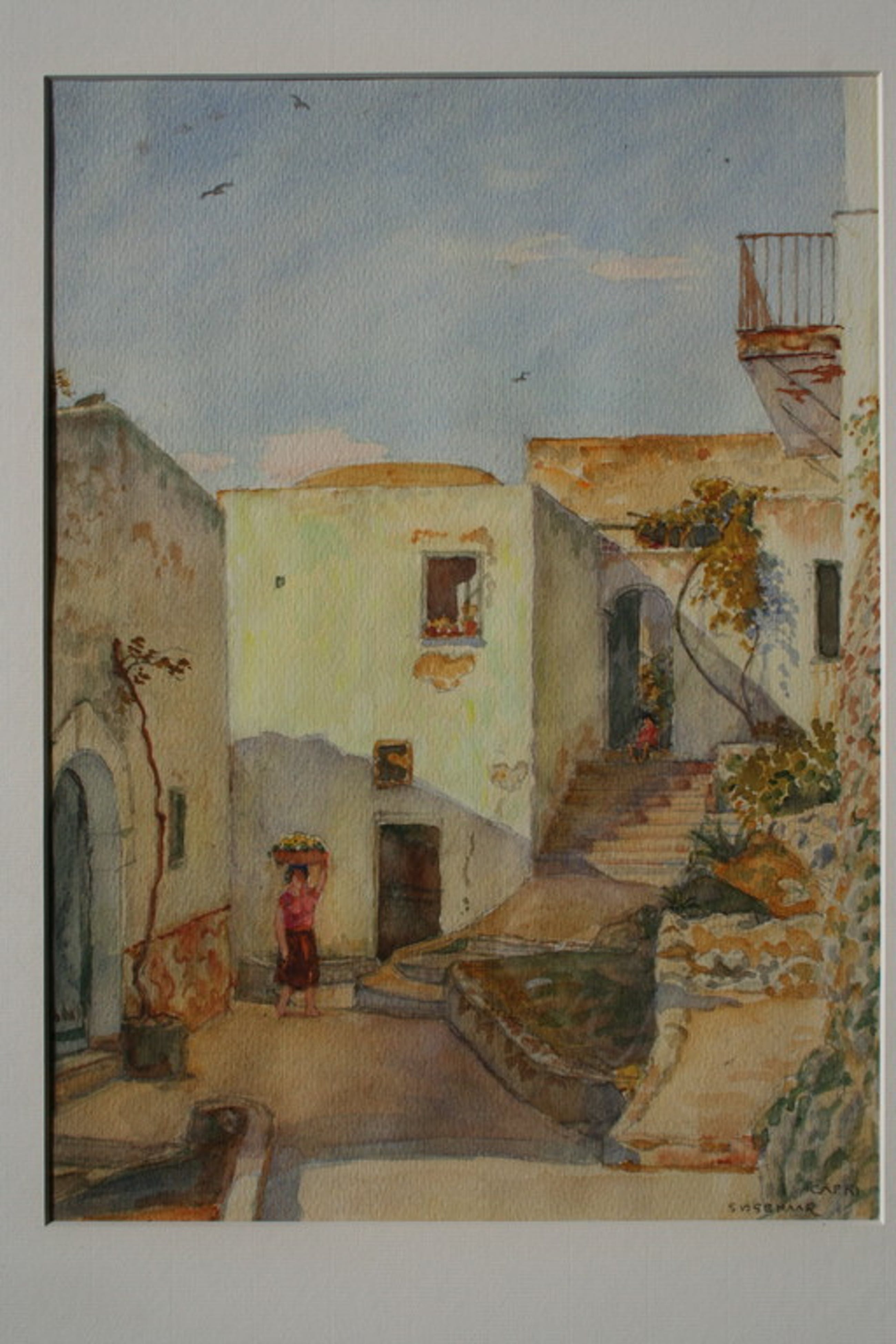 Originele aquarel. Kunstwerk en passe partout in perfecte staat. R.o. gesigneerd en tevens is 'Capri' vermeld.