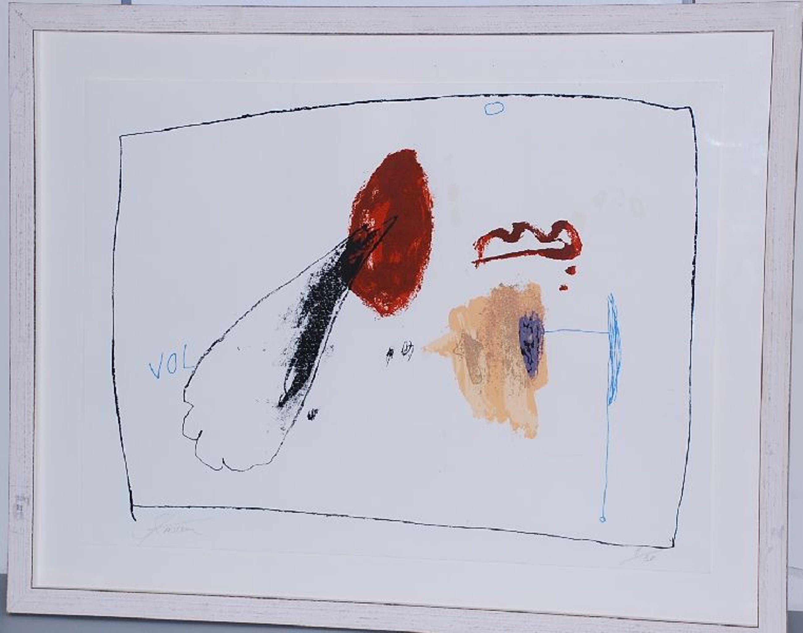 Mooi werk van Sjaak Korsten. Kleurenlitho vrij ingelijst in houten baklijst.