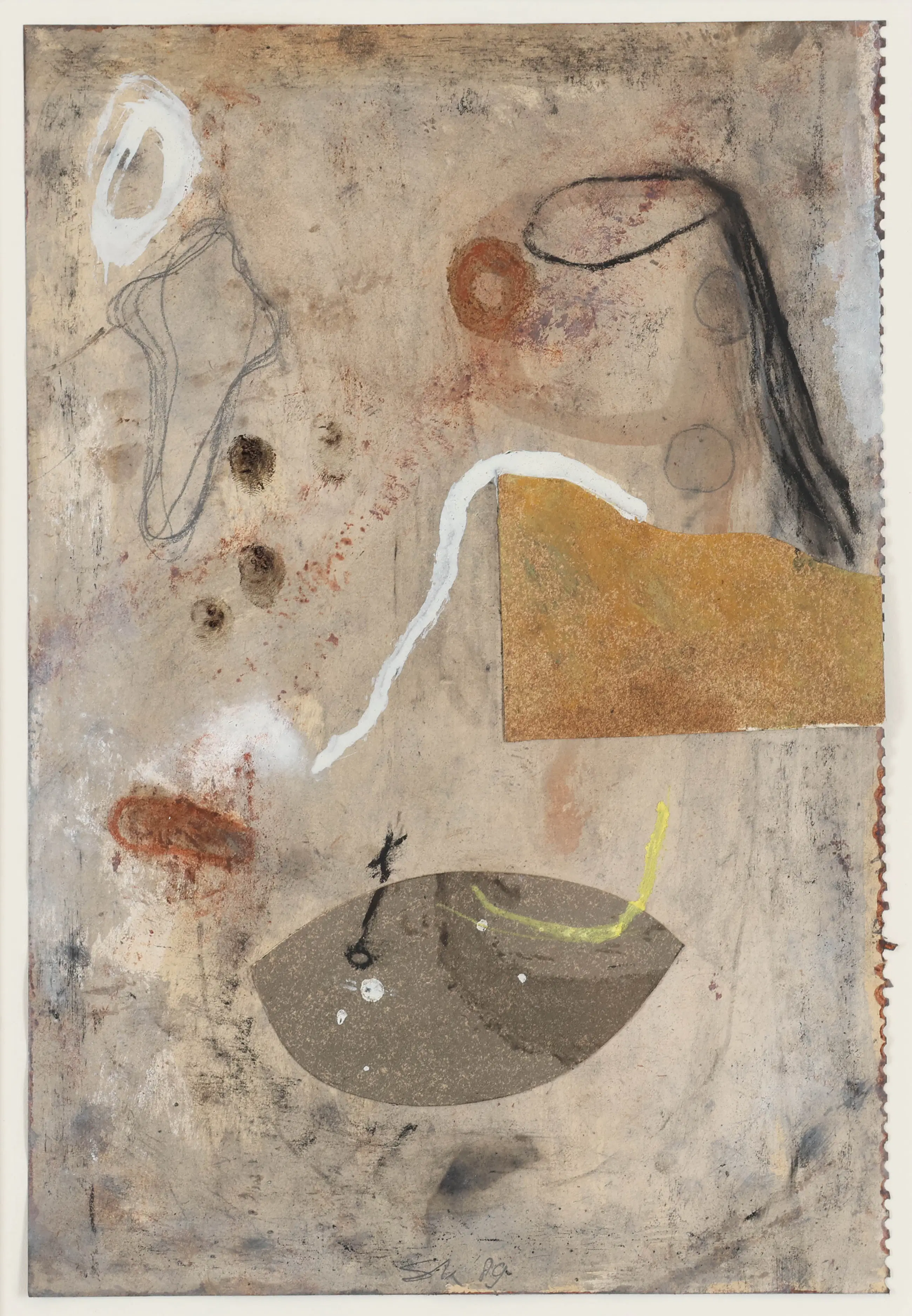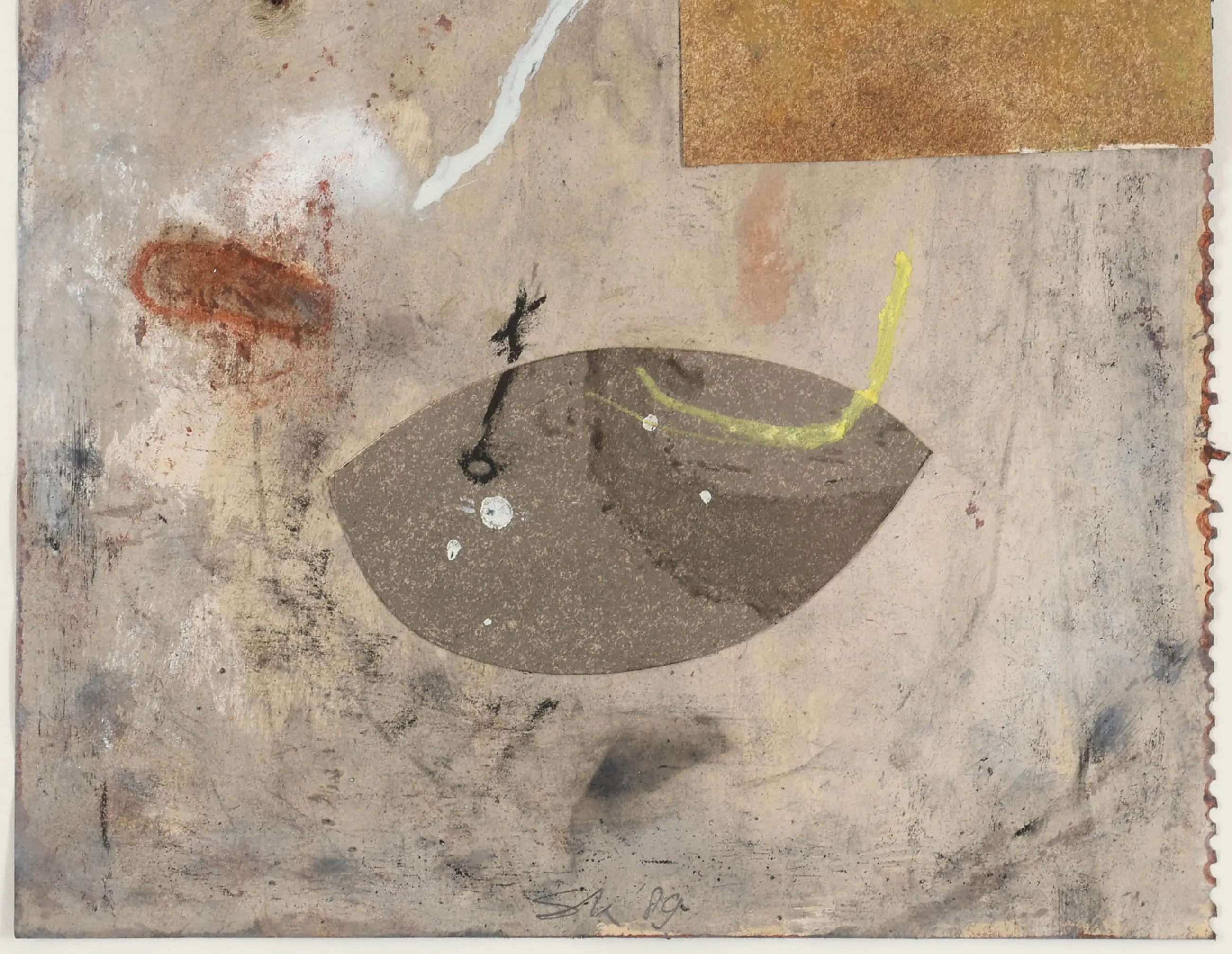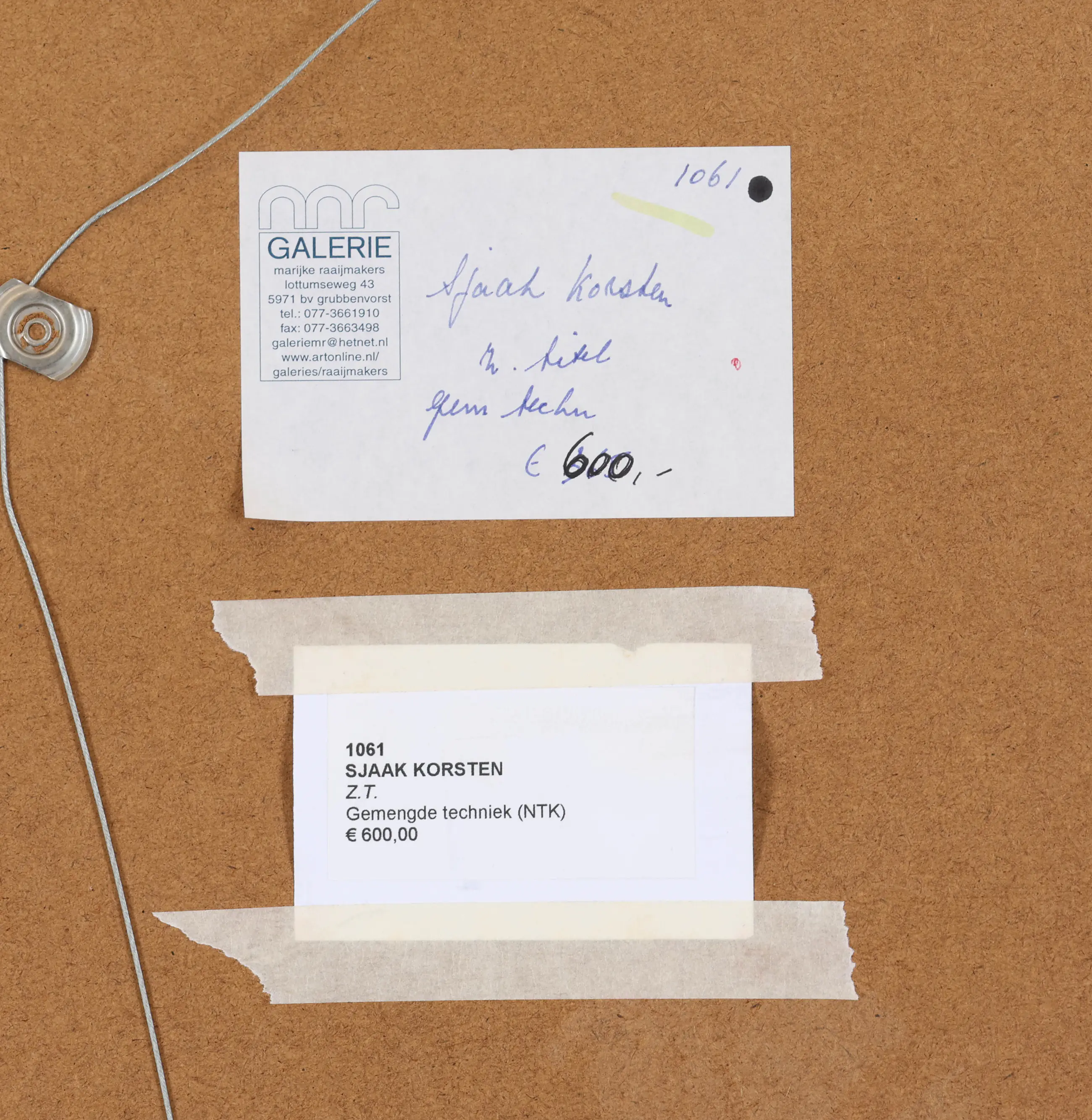 Schilderij in gemengde techniek van de Nederlandse kunstenaar Sjaak Korsten (Helden, 1957). Hij maakt als beeldend kunstenaar schilderijen, werken op papier, objecten, foto's en installaties. Zijn werken zijn poëtisch, intiem en persoonlijk. Alledaagse objecten en situaties worden geïsoleerd en in een andere context geplaatst zodat ze een diepere poëtische waarde krijgen.