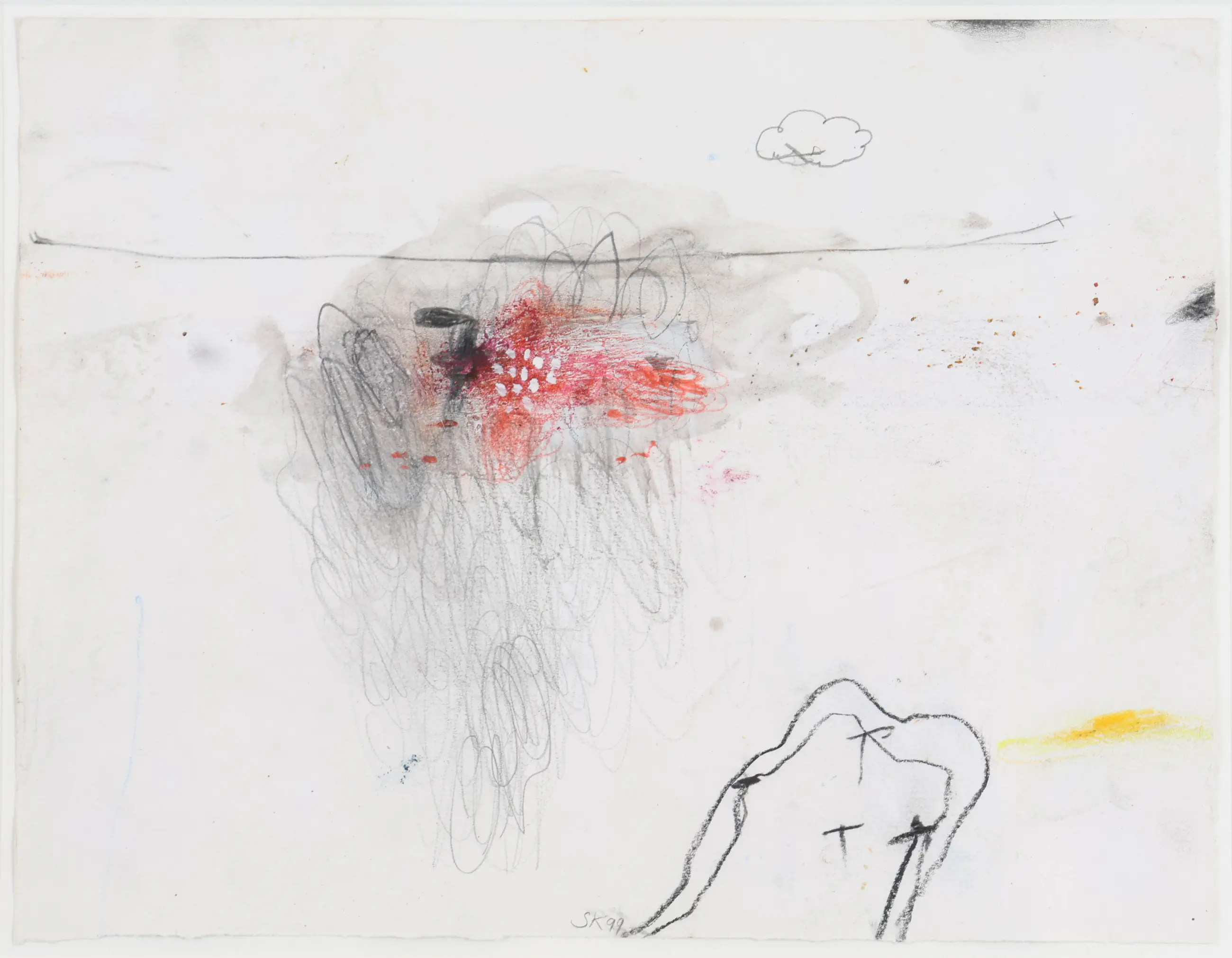 Schilderij in gemengde techniek van de Nederlandse kunstenaar Sjaak Korsten (Helden, 1957). Hij maakt als beeldend kunstenaar schilderijen, werken op papier, objecten, foto's en installaties. Zijn werken zijn poëtisch, intiem en persoonlijk. Alledaagse objecten en situaties worden geïsoleerd en in een andere context geplaatst zodat ze een diepere poëtische waarde krijgen.