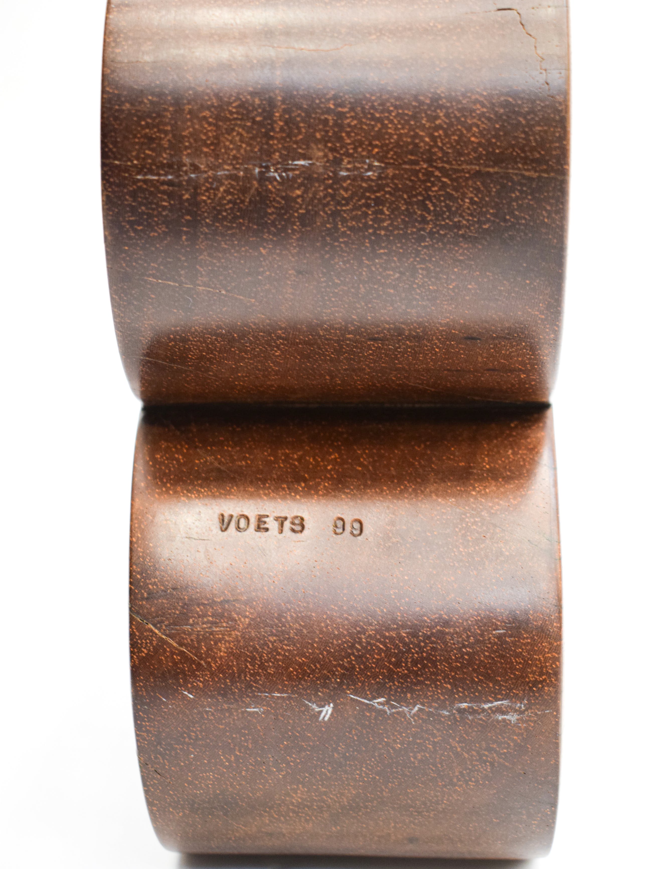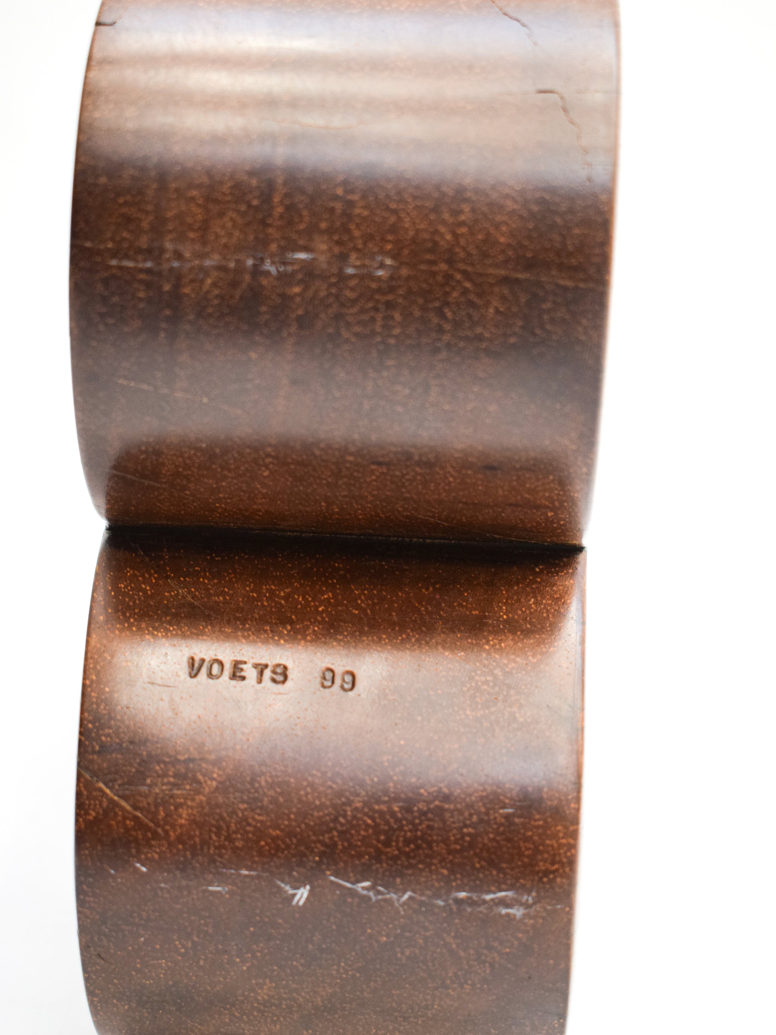 Sjef Voets (1956) maakte op uitnodiging van Kunstkring Sint-Anna ter Muiden een schitterende expositie, met een keur aan werk dat hij geraffineerd in verband brengt met de binnen- en de buitenruimte en hun betekenissen. Zijn werk is klassiek als het gaat om de thema's die hij aansnijdt zoals mens, natuur, leven, dood, begin, einde, en modern als het gaat om de manier waarop hij het gebruik van vorm en materiaal daarop inzet en tegelijkertijd steeds de fundamentele aspecten van sculptuur onderzoekt. Daarbij is hij zich scherp bewust van de traditie. Voets is geen adept, maar een oorspronkelijk kunstenaar die visie en vakmanschap combineert tot sterke beelden die iets toevoegen aan het metier, ook door het overtuigend toepassen van assemblagetechnieken en objets trouvés. Hij ziet in gebogen spanten gestalten die hij samen met een liggende plank transformeert tot 'Wake', een beeld dat raakt aan afscheid nemen op de grens van leven en dood.