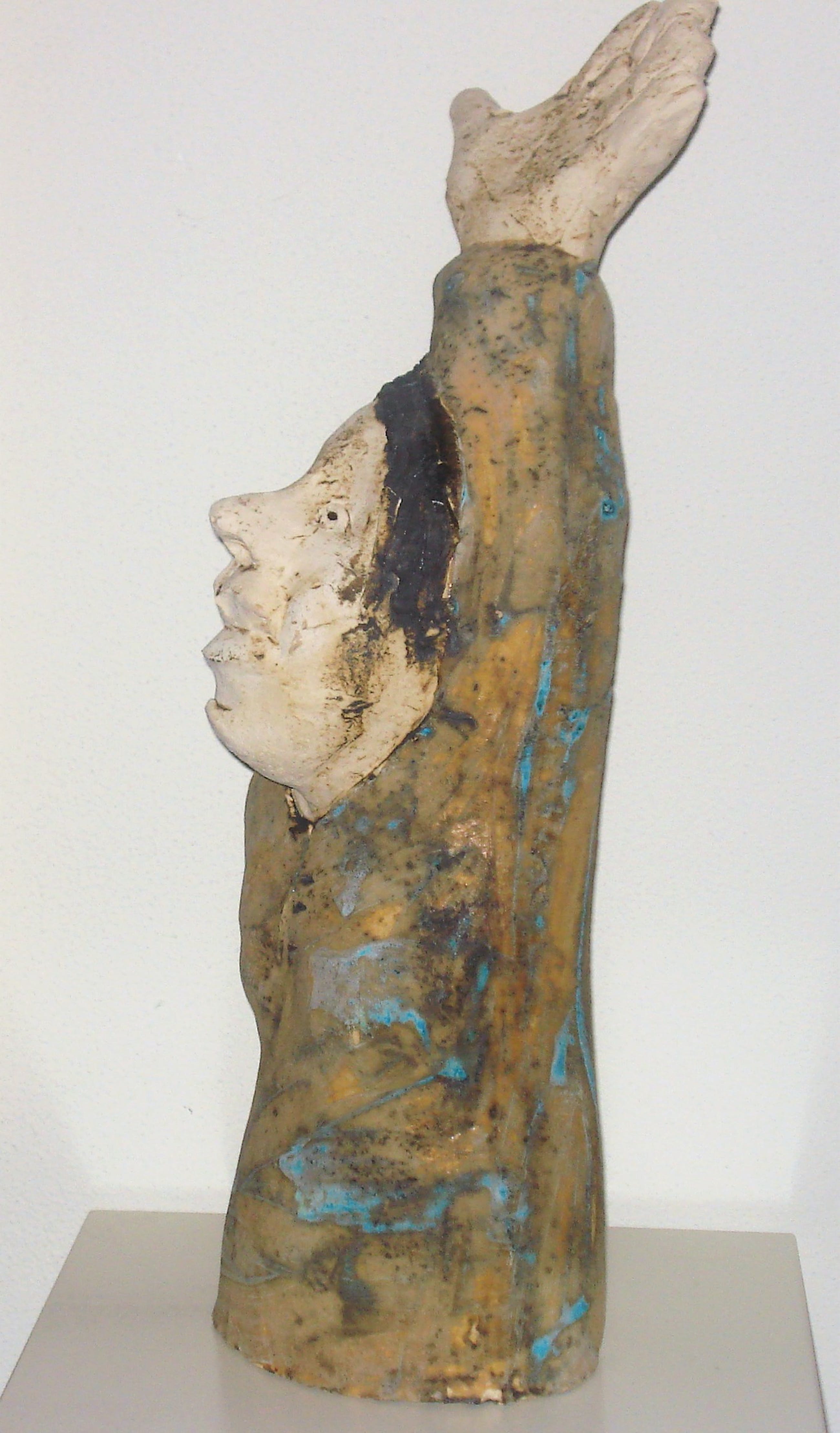 Uitbundig, karakteristiek beeld van Sjer Jacobs 'Bye' Afm. 57 x 18 x 16 cm.