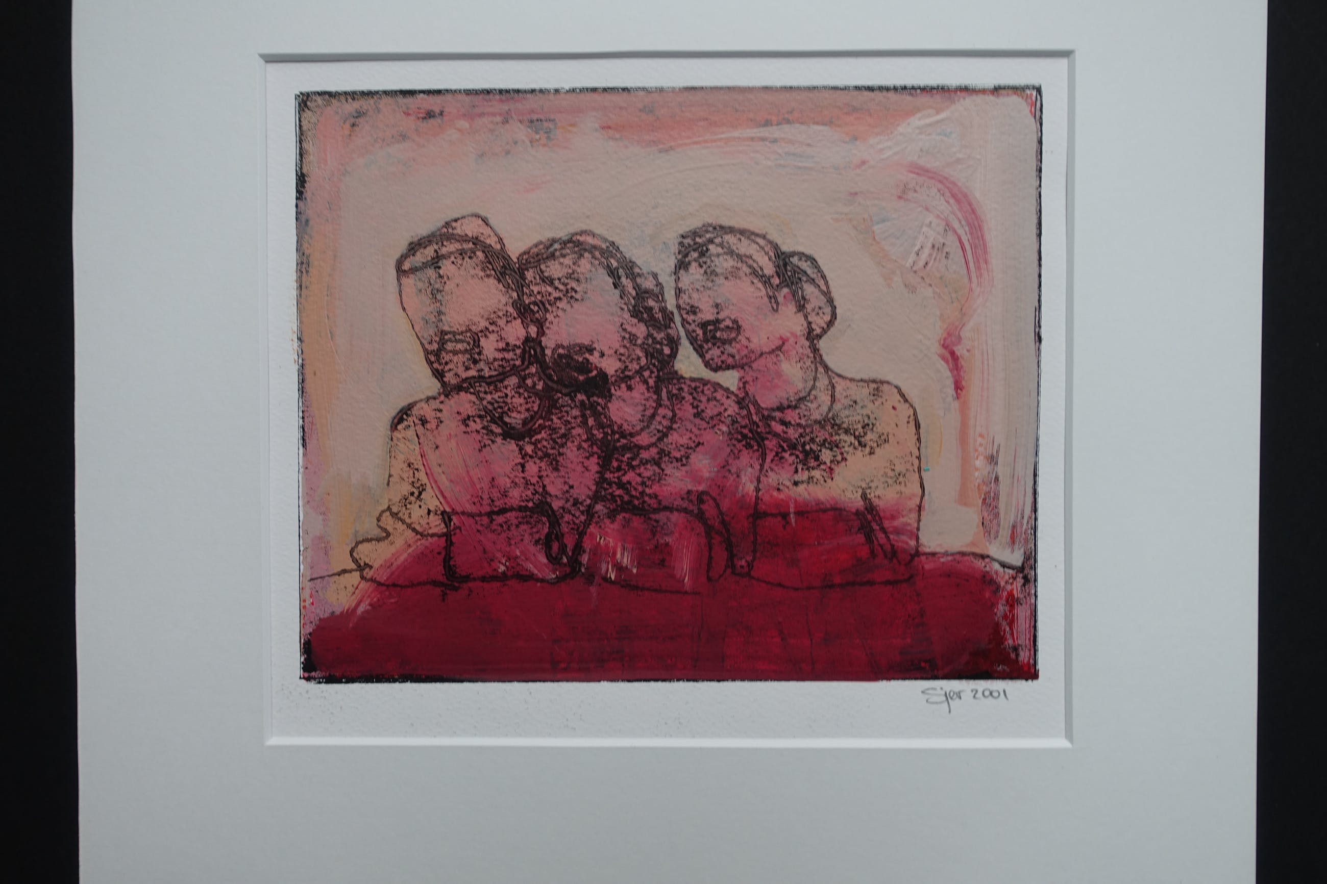 Indringende mixed-media op schilderskarton van de Limburgse keramist en schilder Sjer Jacobs. Gesigneerd en gedateerd met potlood. Los opgenomen in passe-partout. Zeer goede conditie.
