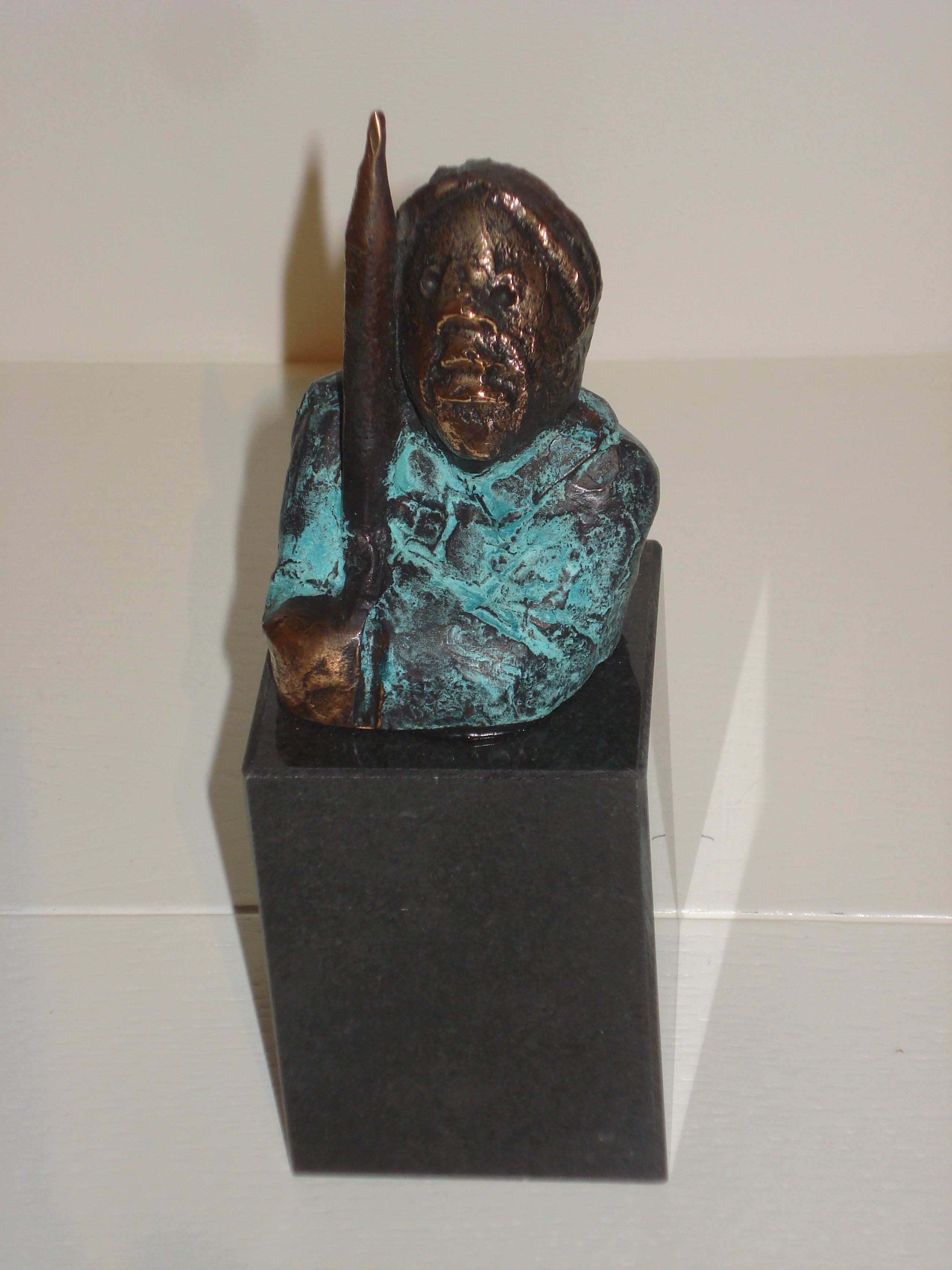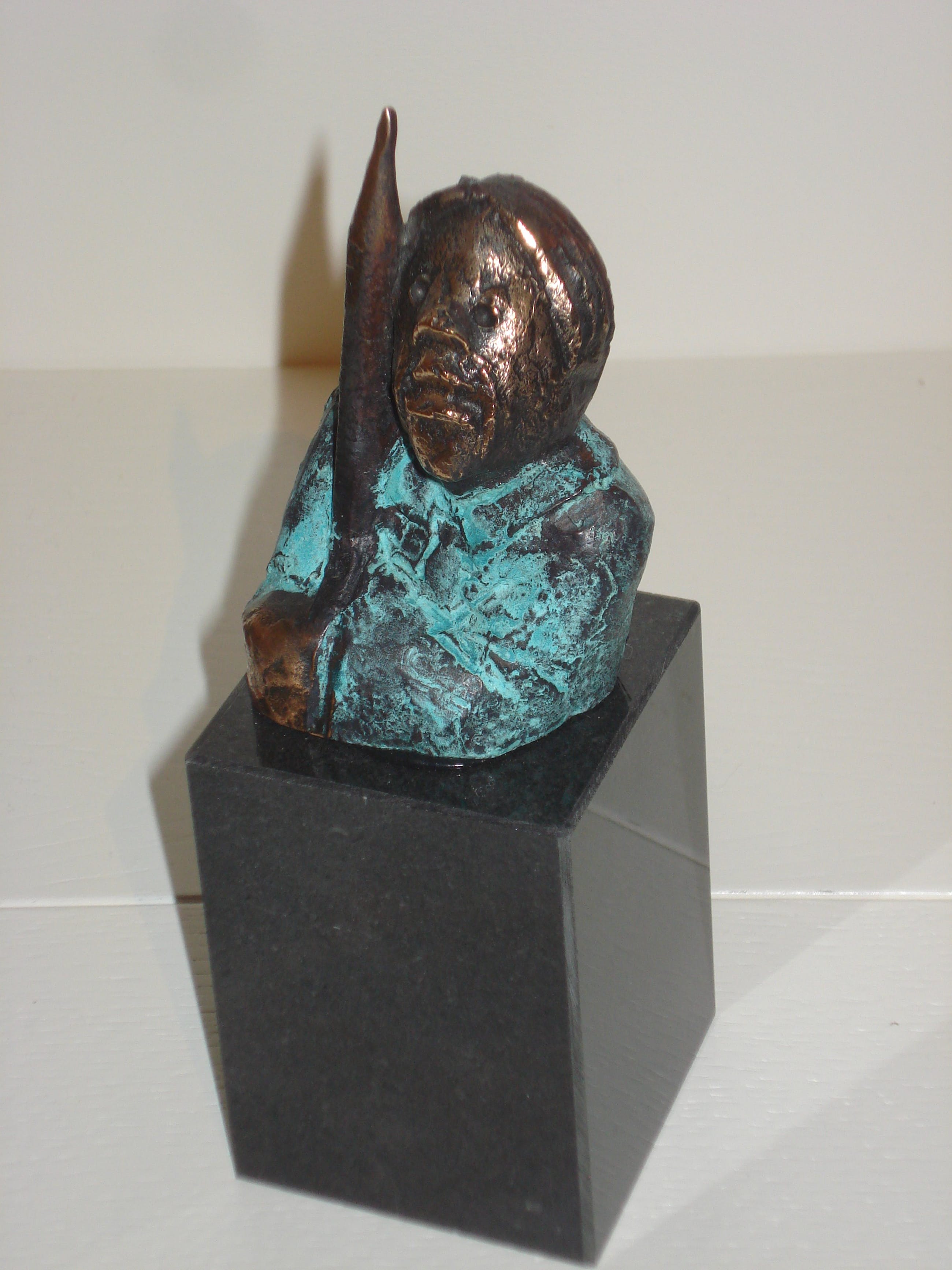 Zeer fraai massief bronzen beeld van kunstenaar Sjer Jacobs op marmeren sokkel Gesigneerd GEEN VERZENDING NAAR NIET-EU LANDEN