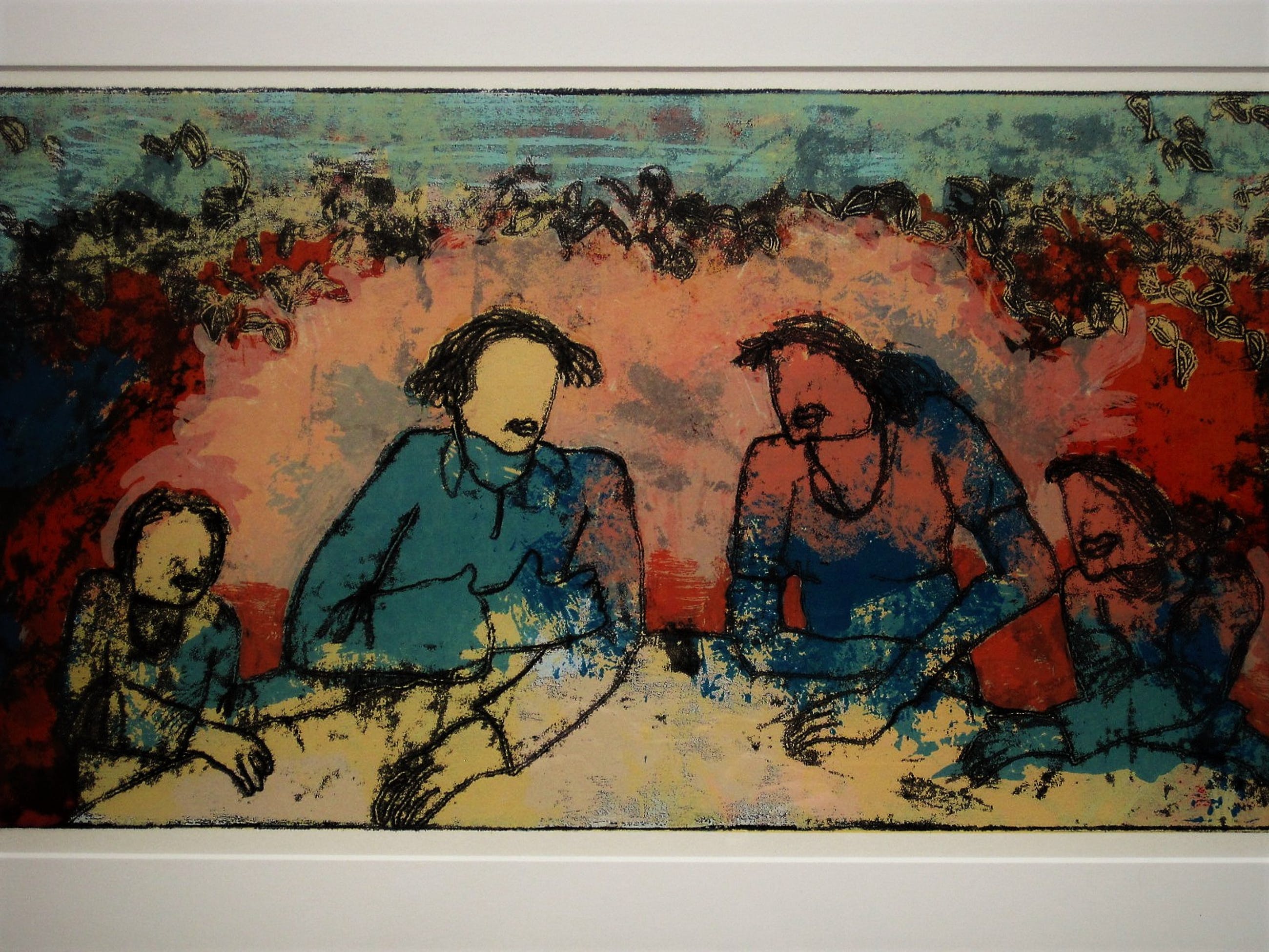 Titel: "het Familiediner" Jaartal: 1999 Afmetingen lijst: 51 cm x 81 cm Oplage: 40/150 Gesigneerd: Ja, handgeschreven met potlood (rechtsonder) Materiaal: Zeefdruk op geschept papier Ingelijst: Ja, in mooie aluminium lijst. Kan direct aan de muur Conditie: In zeer goede staat Oorspronkelijke galerieprijs: € 365,00