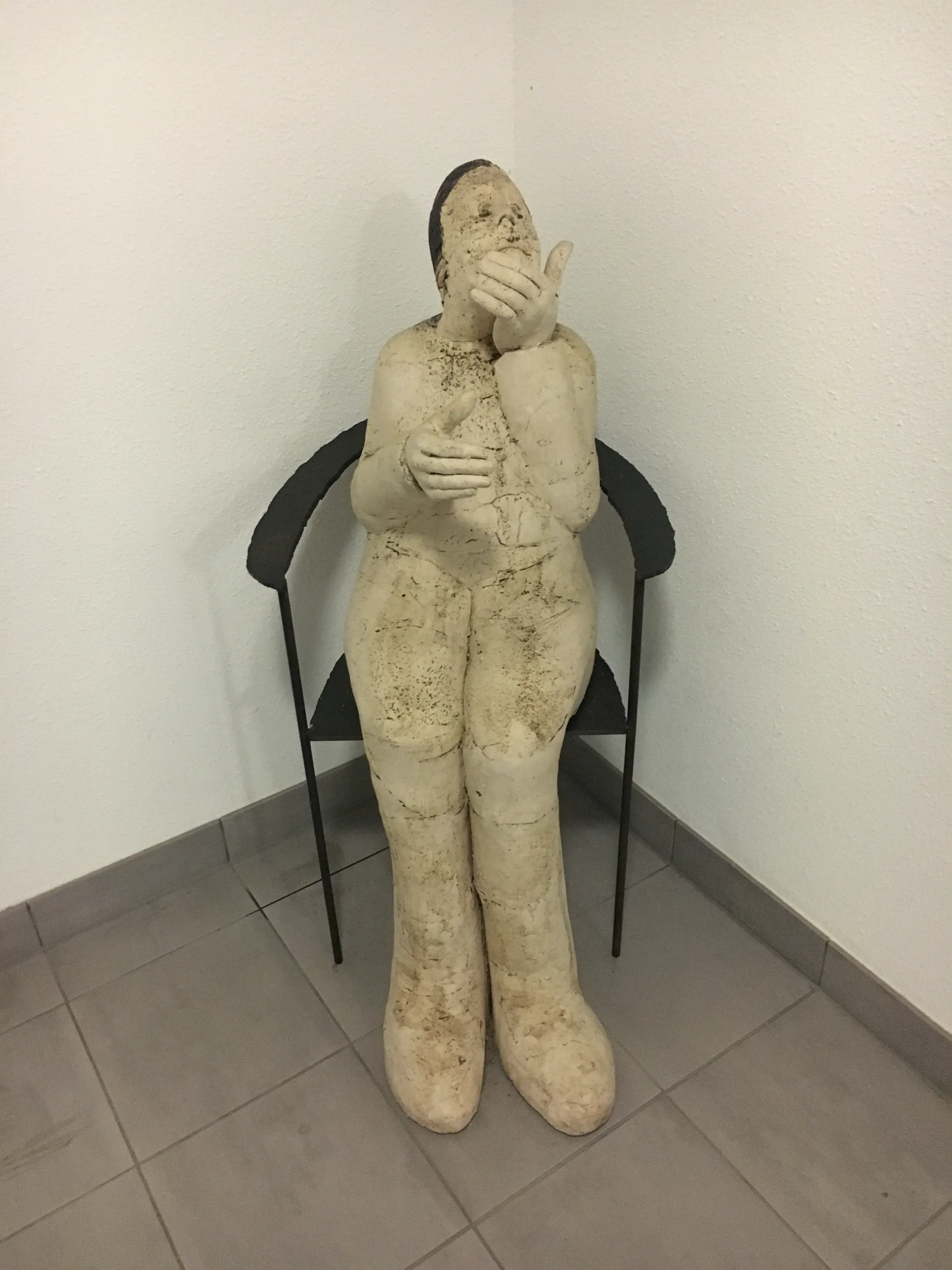 Man in stoel, keramiek van metaal!