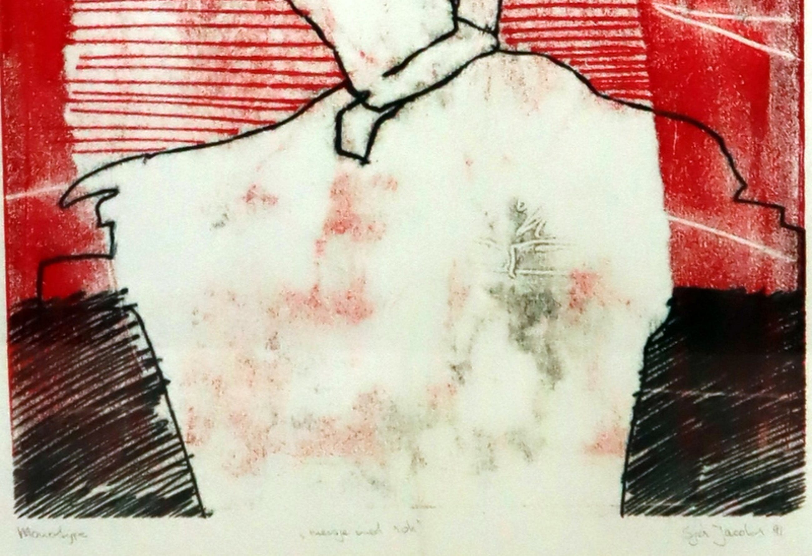 Monotype, hand gesigneerd in potlood, In aluminium sierlijst met glasplaat. Randen van papier aan bovenzijde gekreukt. Monotype print in goede conditie.