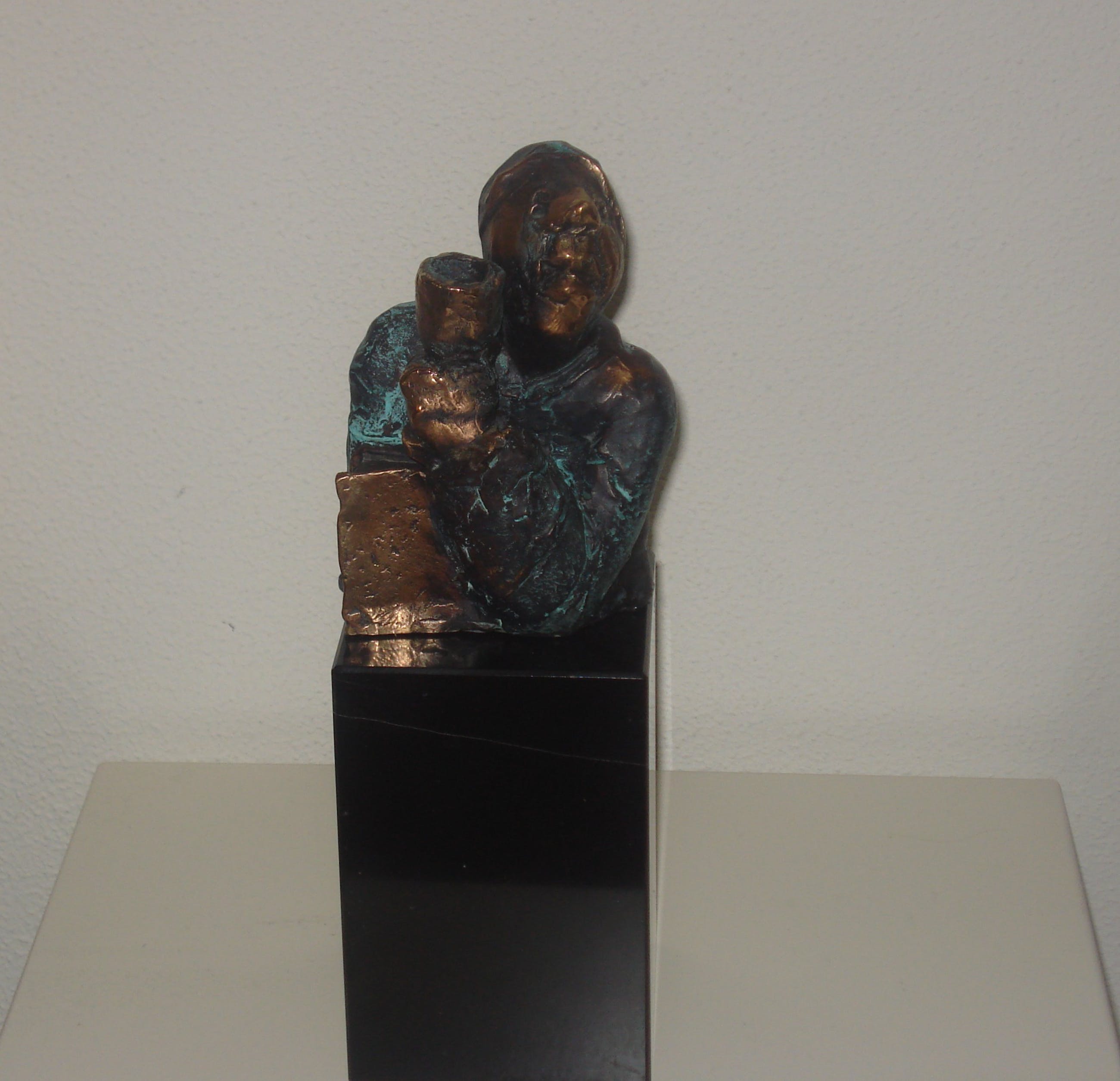 Zeer fraai massief bronzen beeld op marmeren sokkel van Sjer Jacobs, 'Santé'