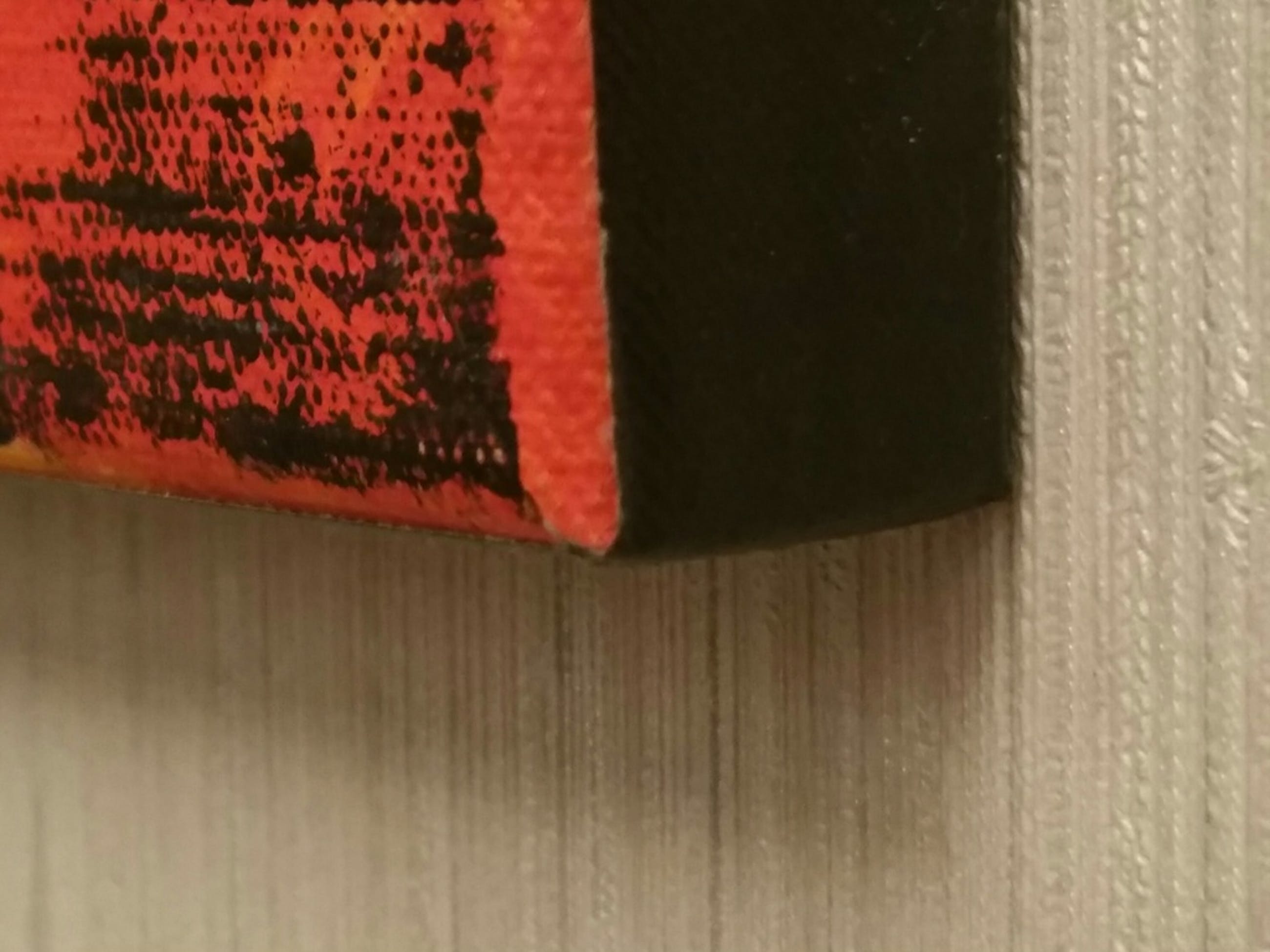 De zijkant van het frame met doek is door de kunstenaar van een brede zwarte bies voorzien, (foto 2).