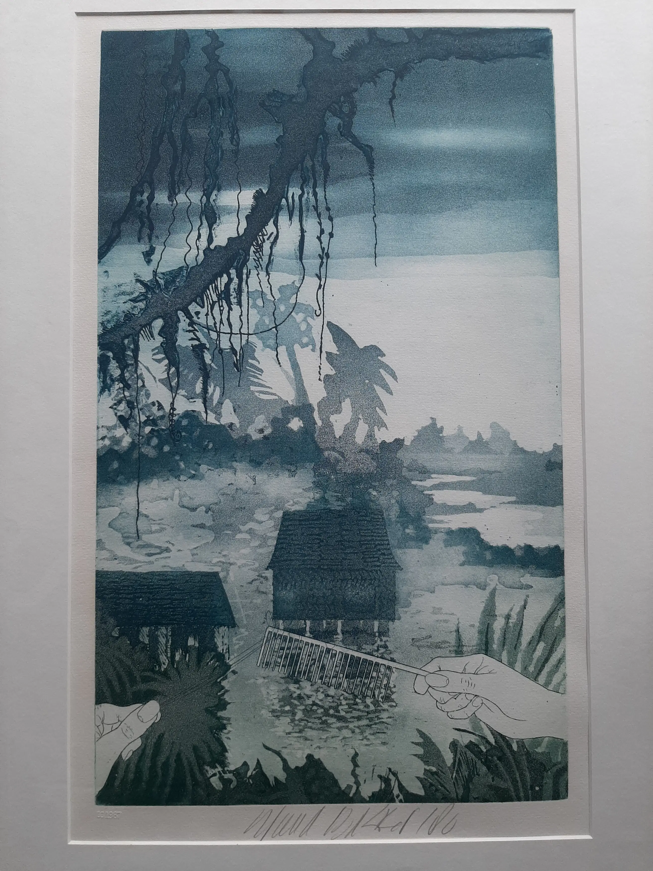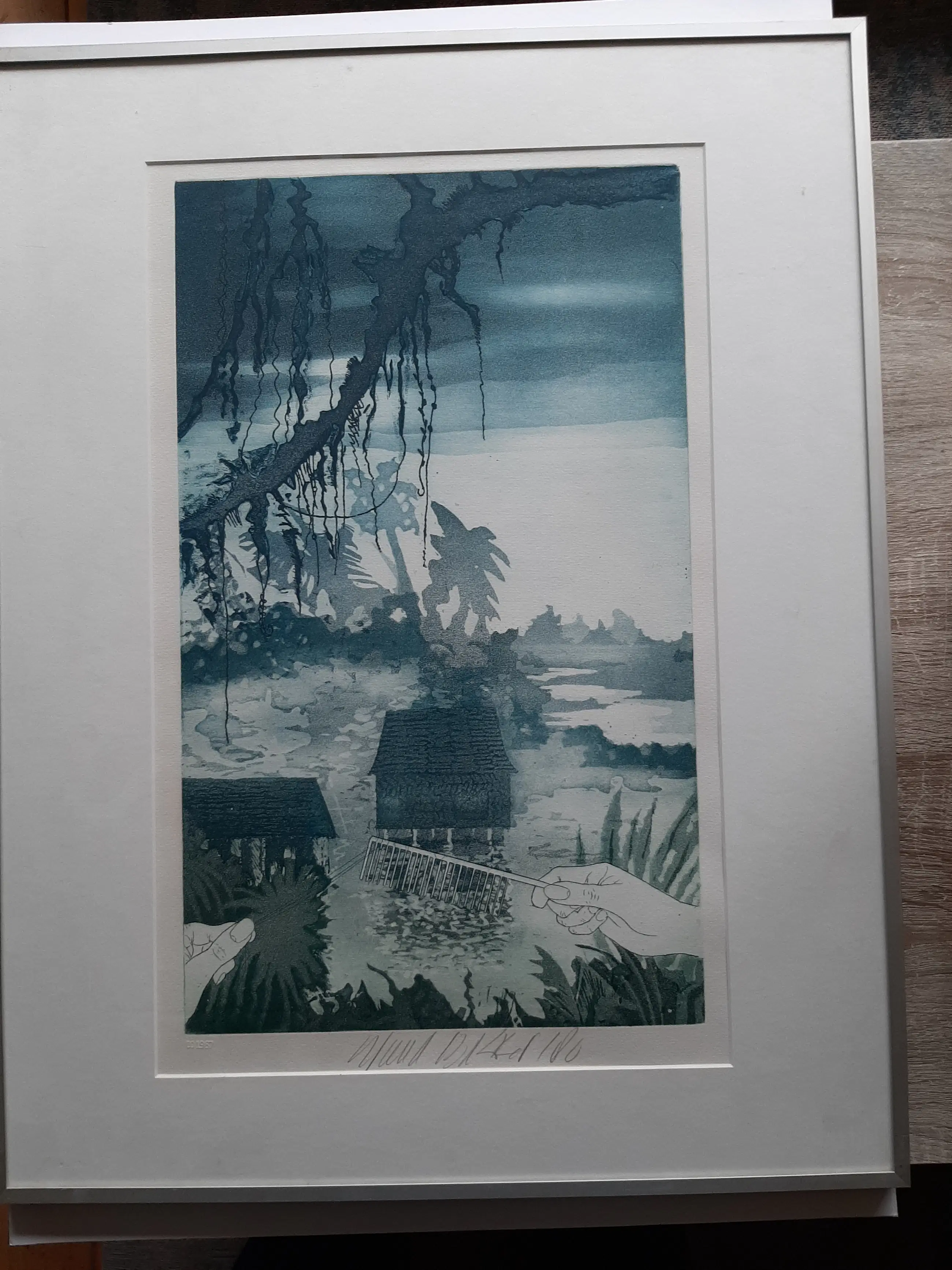 In zijn grafisch werk en aquarellen is de oosterse invloed herkenbaar, onder andere door de eenvoud van vorm en kleur. Het werk straalt een mystieke rust uit. De vaak egaal gekleurde achtergrond van zijn werken met op de voorgrond een aantal zorgvuldig getekende ornamenten onderstrepen de Japanse invloeden nogmaals. Zijn werken zijn meestal langwerpig van vorm en doen denken aan klassieke Japanse prenten. Er komen hedendaagse voorwerpen voor in verstilde landschappen. De toeschouwer wordt zich zo bewust van de realiteit. Andere voorwerpen verwijzen juist naar de tijdelijkheid van het bestaan. Het eeuwige versus het tijdelijke wordt veelal met humor weergegeven.