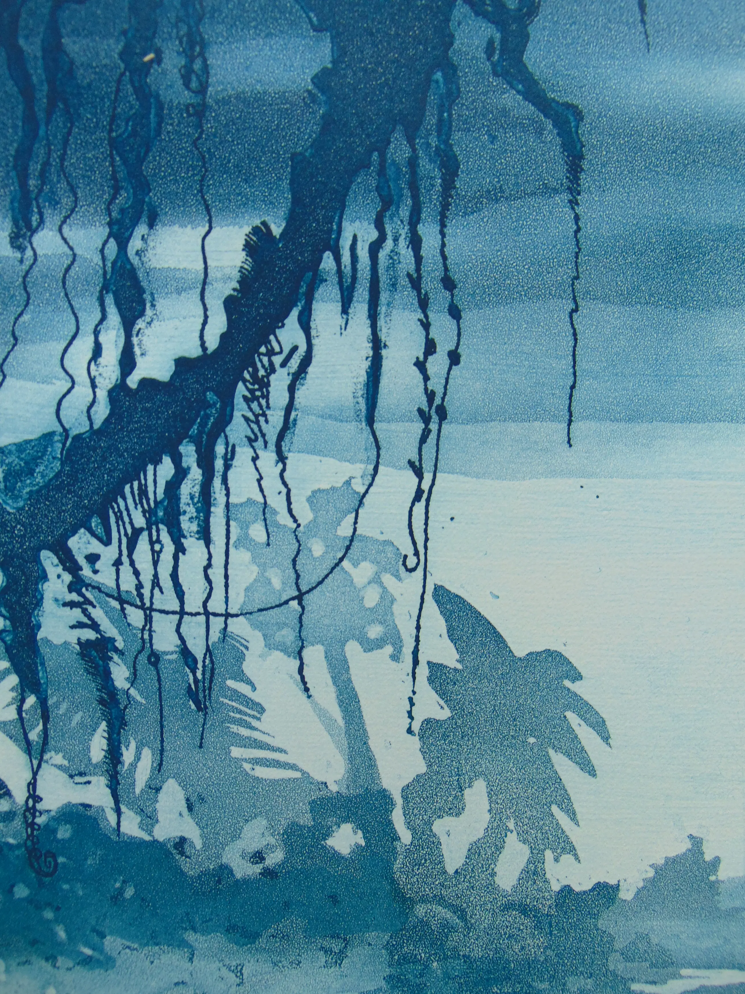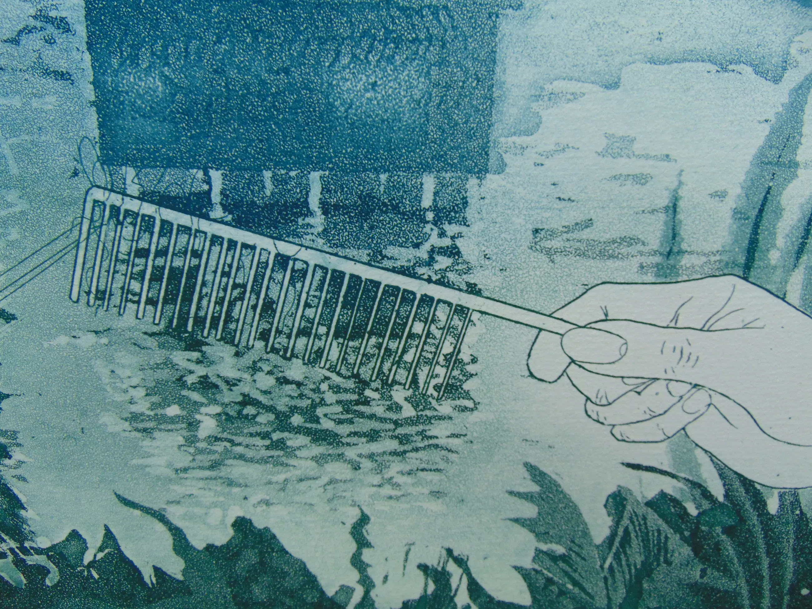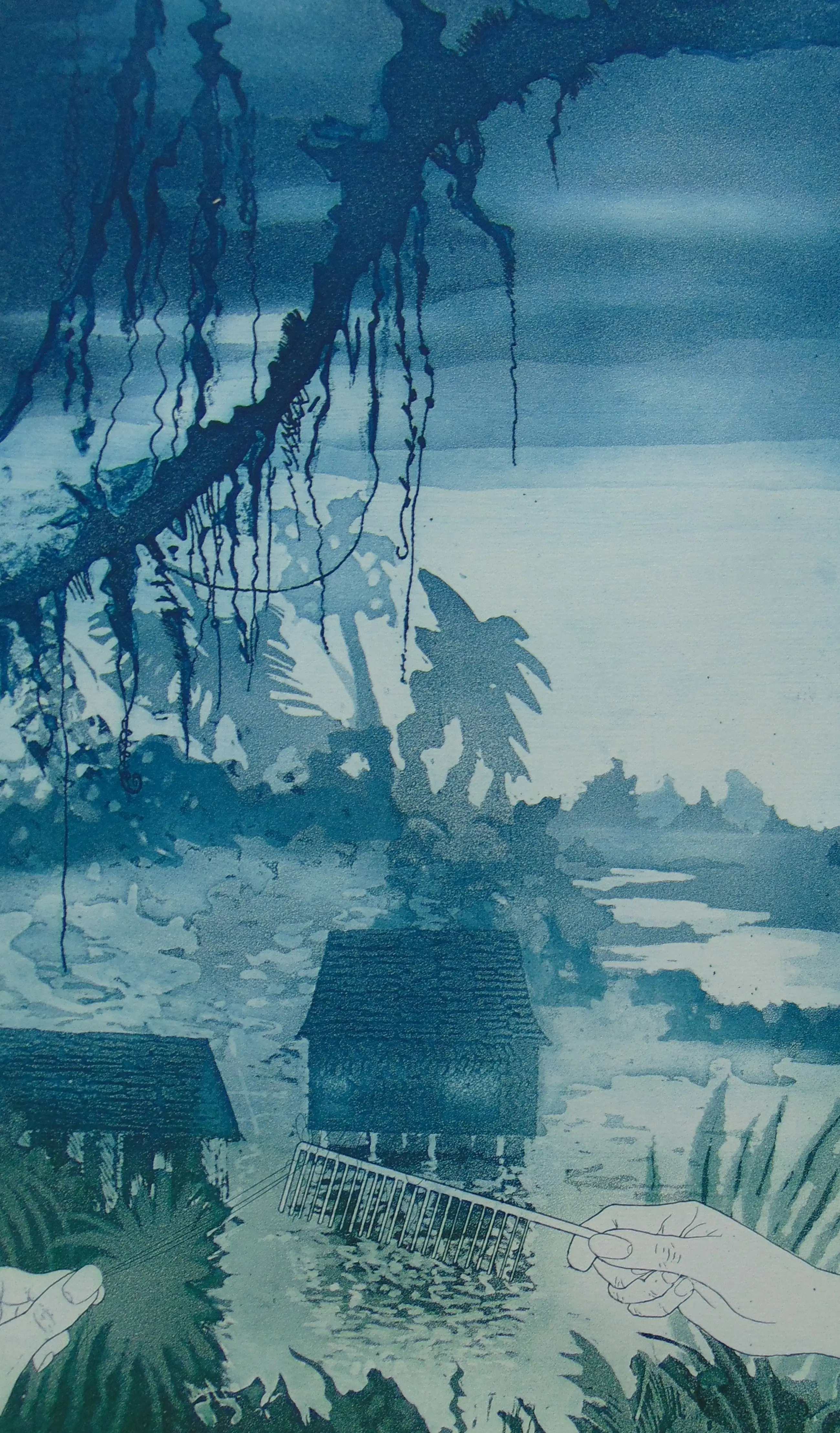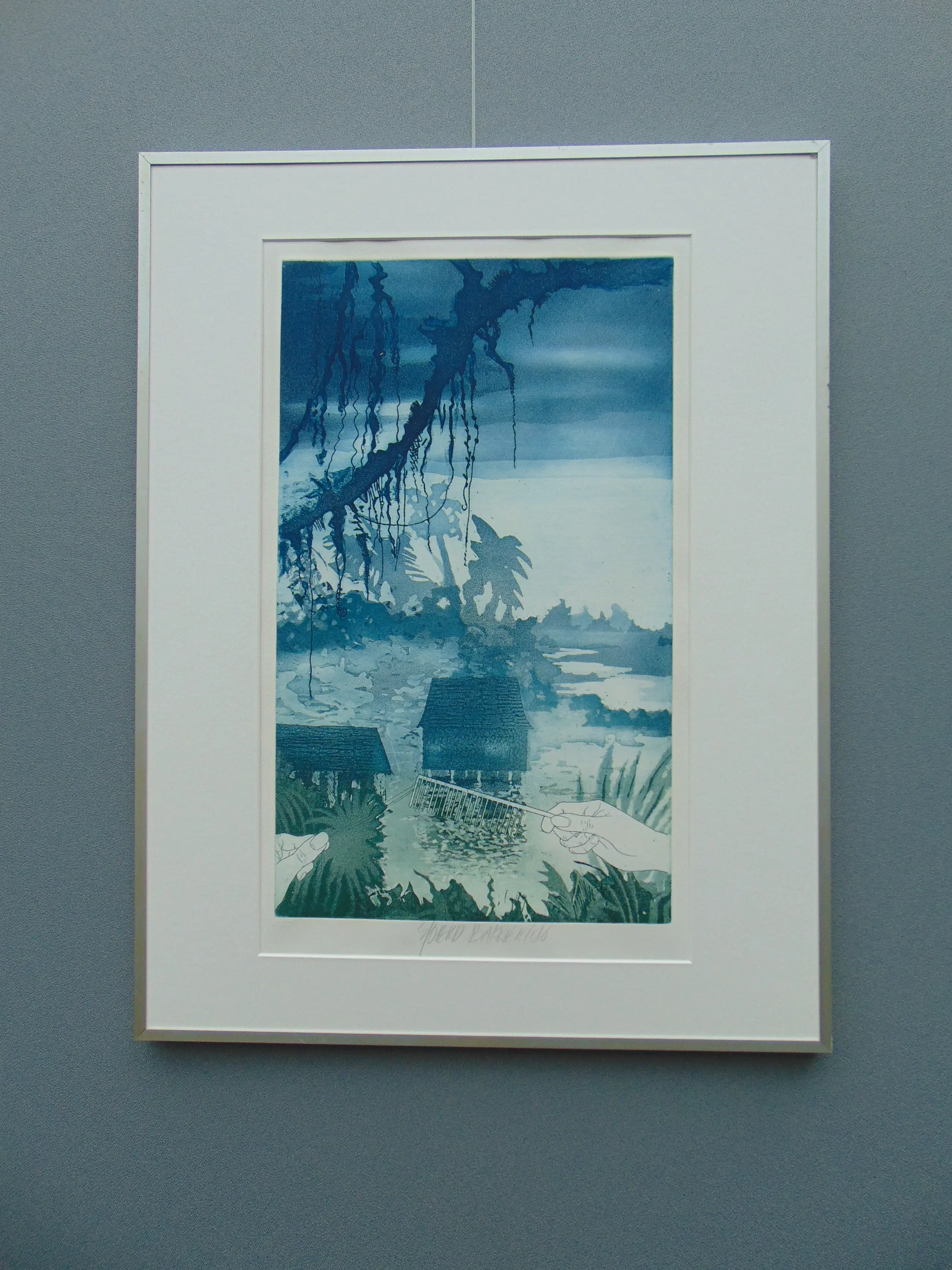 Deze ets is midden onder gesigneerd en gedateerd 12/86. Het werk is ingelijst met passe-partout en zit achter glas.