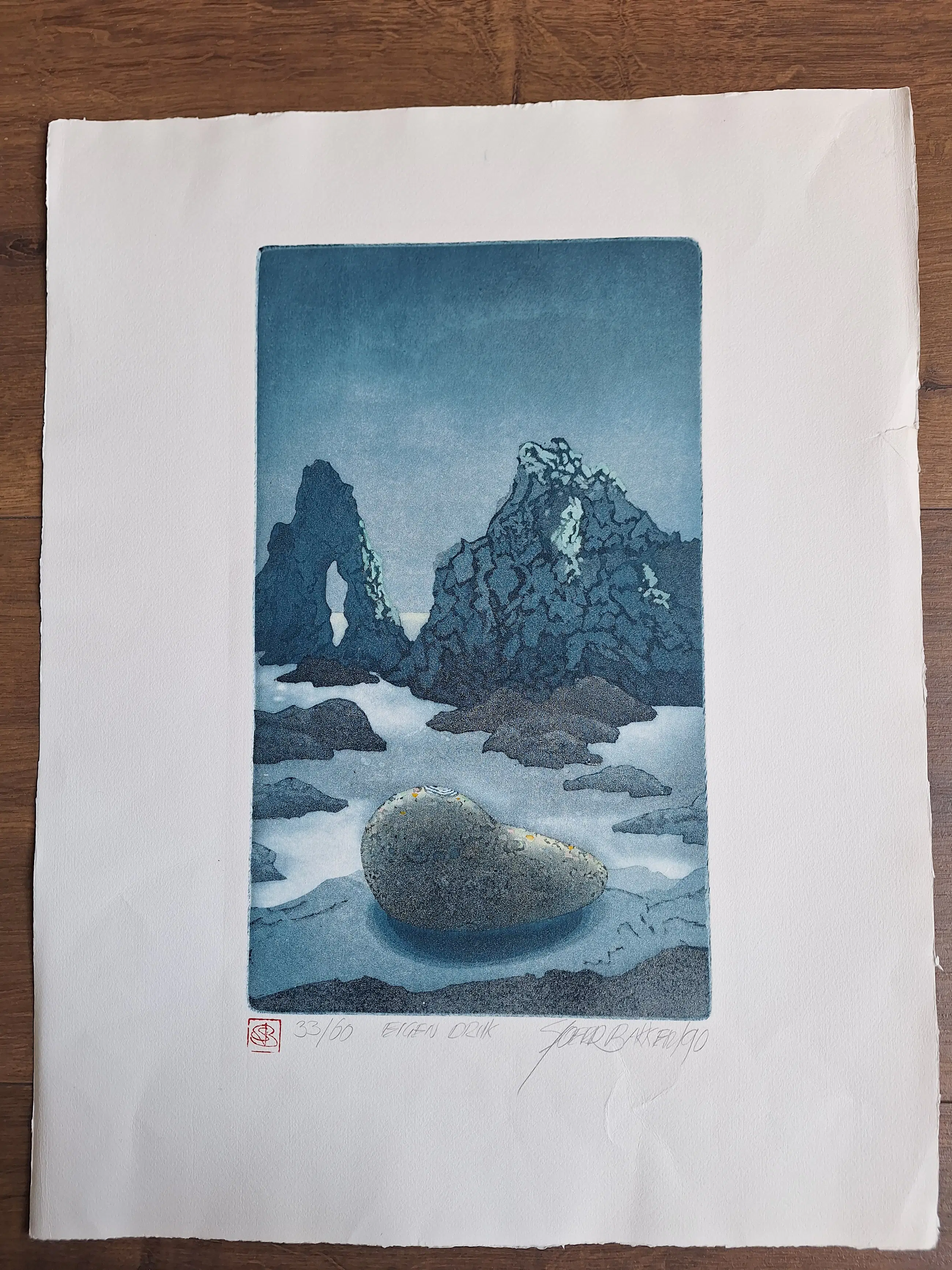 Ets 33/60 uit 1990. Eigen Druk, Handgesigneerd en voorzien Stempel.