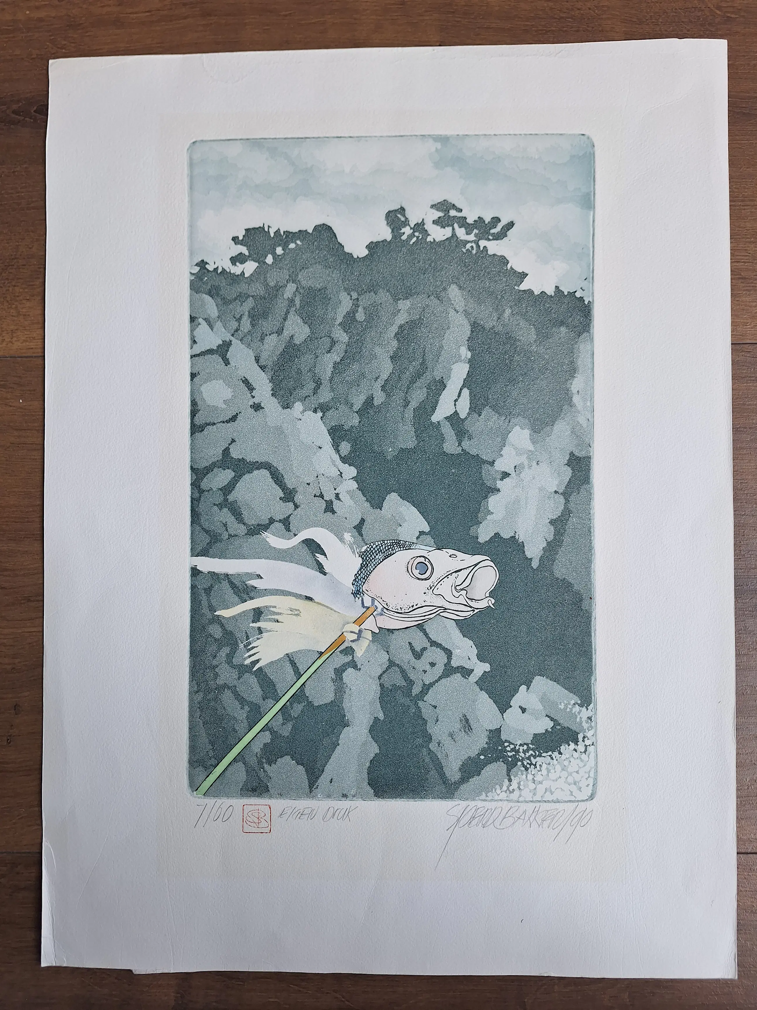 Ets 7/60 uit 1990. Eigen Druk, Handgesigneerd en voorzien van Stempel. Heeft in passe-partout gezeten.