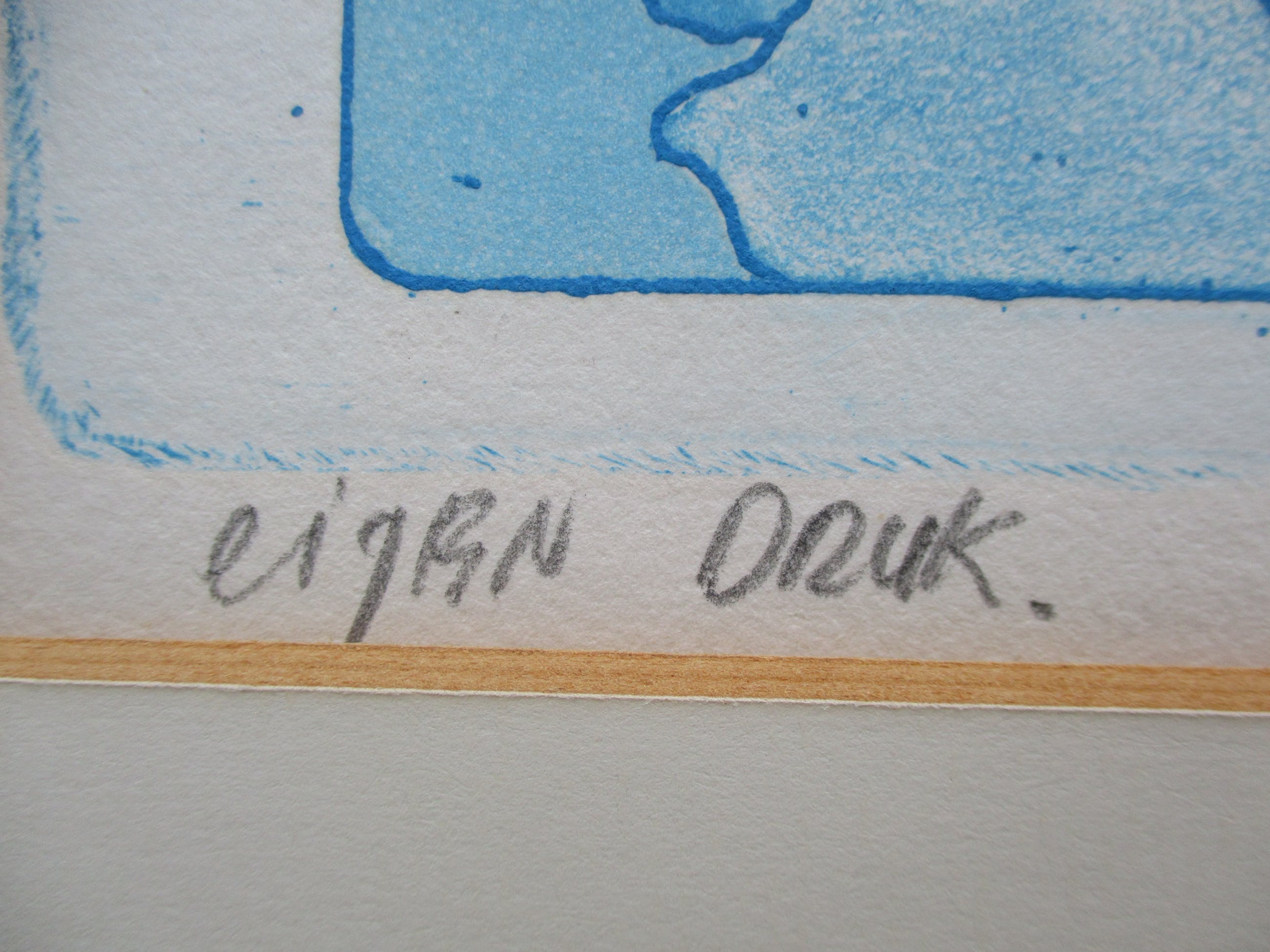 Deze ets is rechtsonder gesigneerd. Het werk is ingelijst met passepartout.