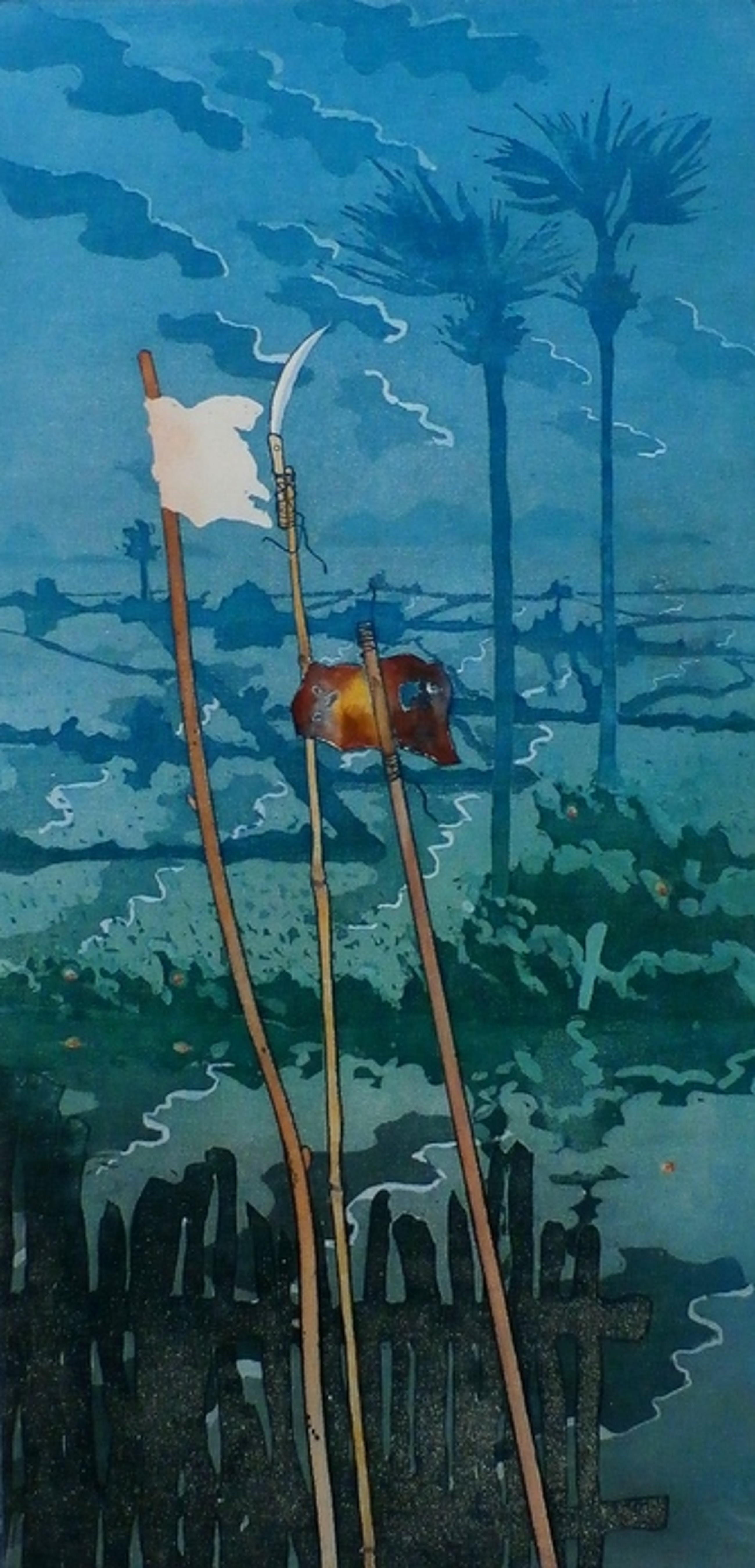 Sjoerd Bakker - ets. Nummer: 19/45. Jaar: 1987. Afmetingen incl. passe-partout: h70 x b50 cm; Afmetingen voorstelling: h47 x b23 cm. rechtsonder, met potlood, gesigneerd door de kunstenaar. Herkomst: collectie ABN AMRO. De authenciteit van dit werk wordt volledig gegarandeerd. Een certificaat van echtheid kan, op aanvraag, worden meegestuurd.