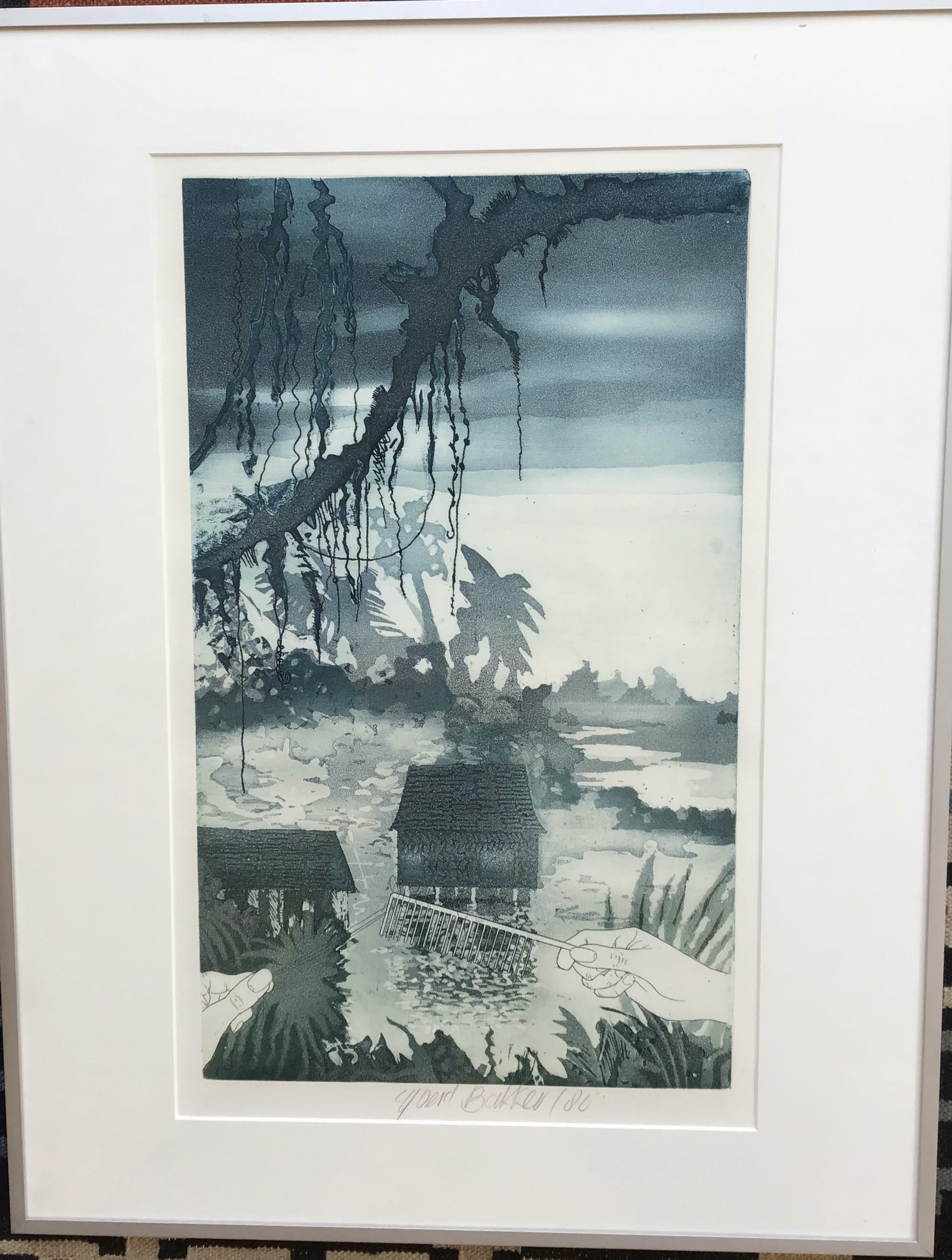 Sjoerd Bakker, Titel Thais Huisje Hand gesigneerd met potlood Professioneel Ingelijst met passe partout in blank metalen lijst Afmetingen 71x51cm Door glas gefotografeerd Conditie uitstekend Wordt aangetekend verzonden Afhalen ? graag!
