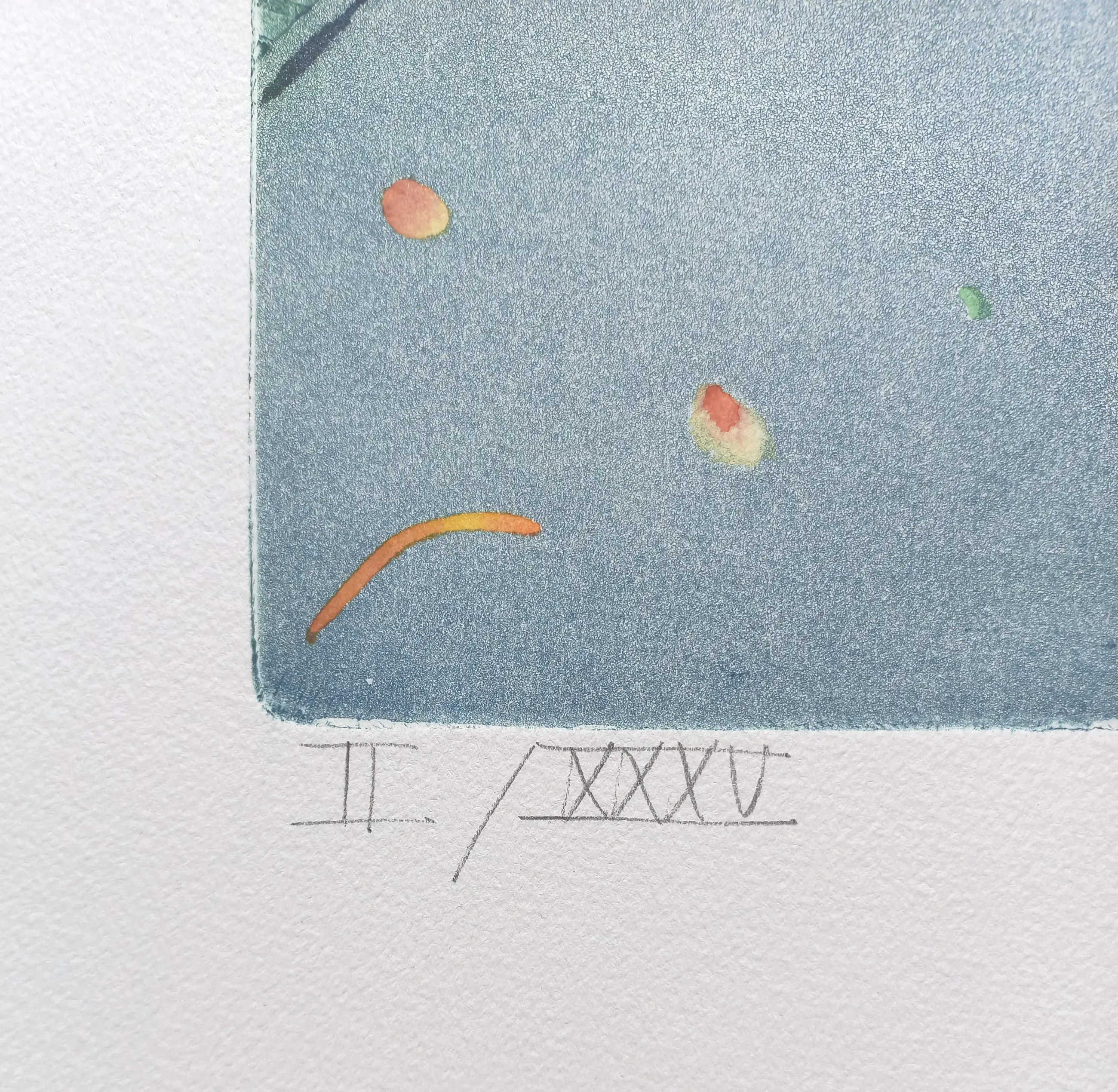 Zeer mooie ets van Sjoerd Bakker uit 1988. Aquatint ets op geschept papier, met potlood gesigneerd, gedateerd en genummerd (II/XXXV = 2/35). In uitstekende conditie.
