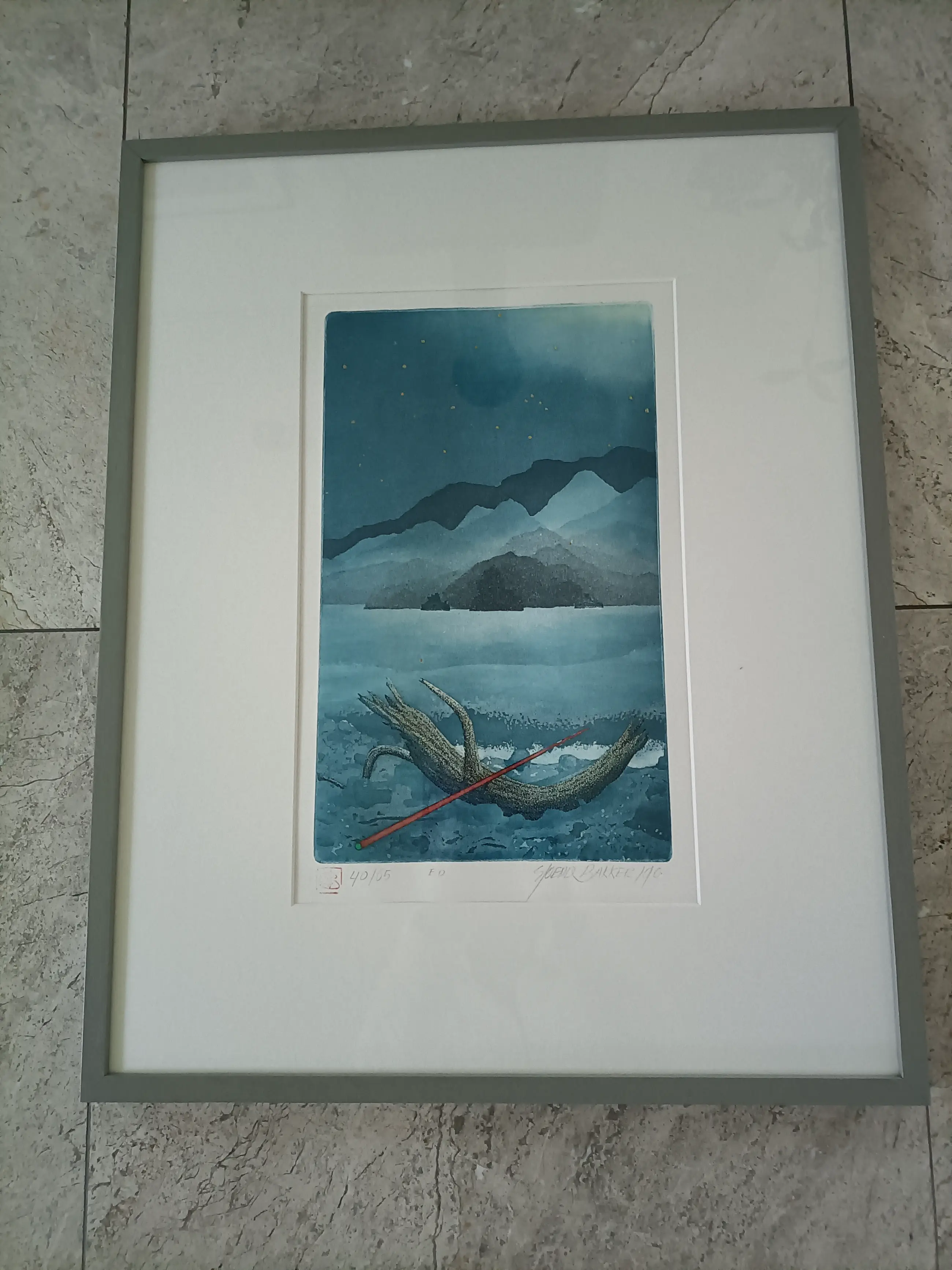 Ets van Sjoerd Bakker titel Volle Maan, in Japanse stijl.