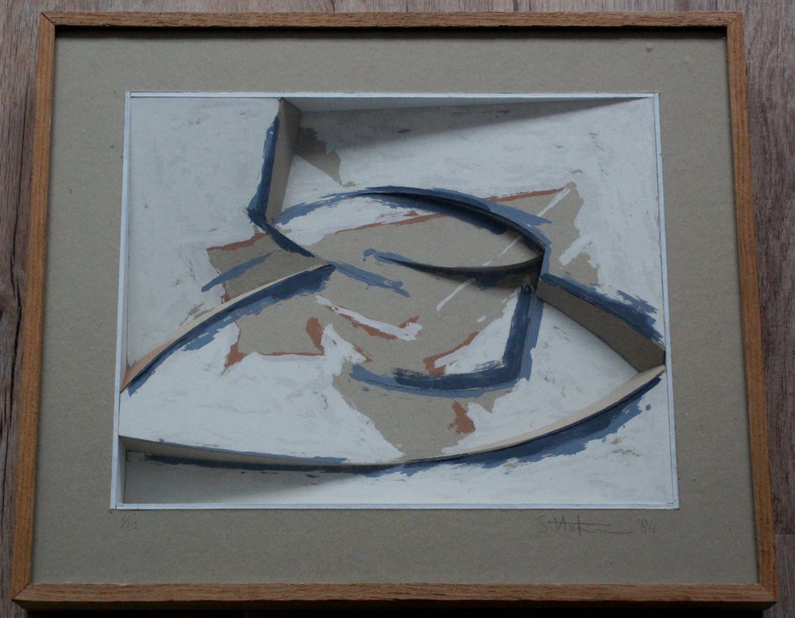 Ingelijste 3 dimensionale compositie van Sjoerd Hofstra uit 1984. Nummer: 1/12. Afmetingen incl. lijst: H42 x b49 cm. Afmetingen zeefdruk: H29.5 x b37 cm. Het werk is gesigneerd. De authenticiteit van het aangeboden werk wordt volledig gegarandeerd. Een certificaat van echtheid kan, op aanvraag, worden gemaild.