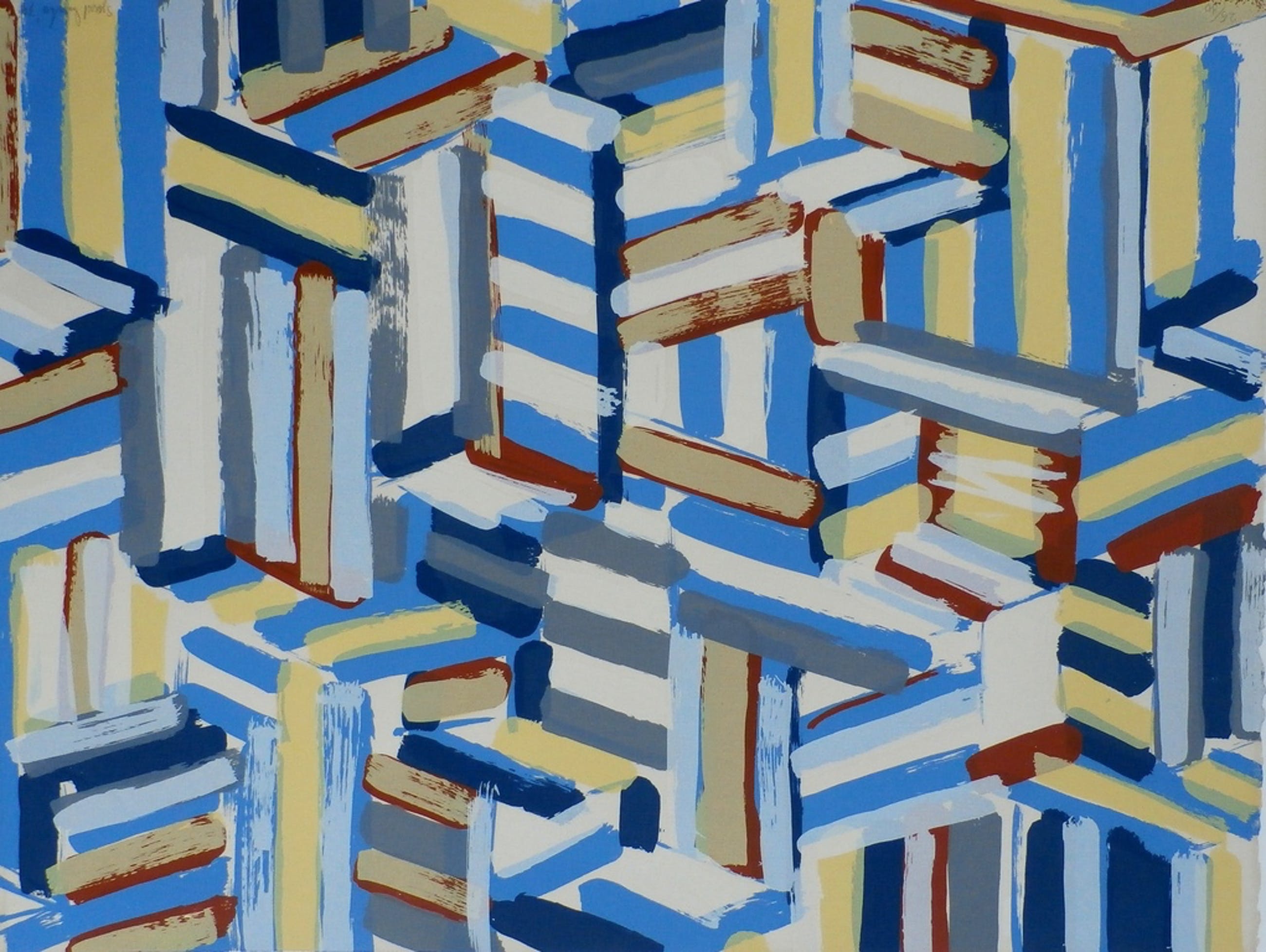 eefdruk van Sjoerd Hofstra uit 1979. Titel: Stadsbeeld 3. Nummer: 25/30. Afmetingen werk: H50 x b66 cm. Afmetingen incl. kartonnen blad: H60 x b75 cm. Blad zit geplakt op dikke kartonnen onderkant. De authenciteit van het, aangeboden, werk wordt voor 100% gegarandeerd. Een certificaat van echtheid kan, op aanvraag, worden meegeleverd. Herkomst: Collectie ABN AMRO.