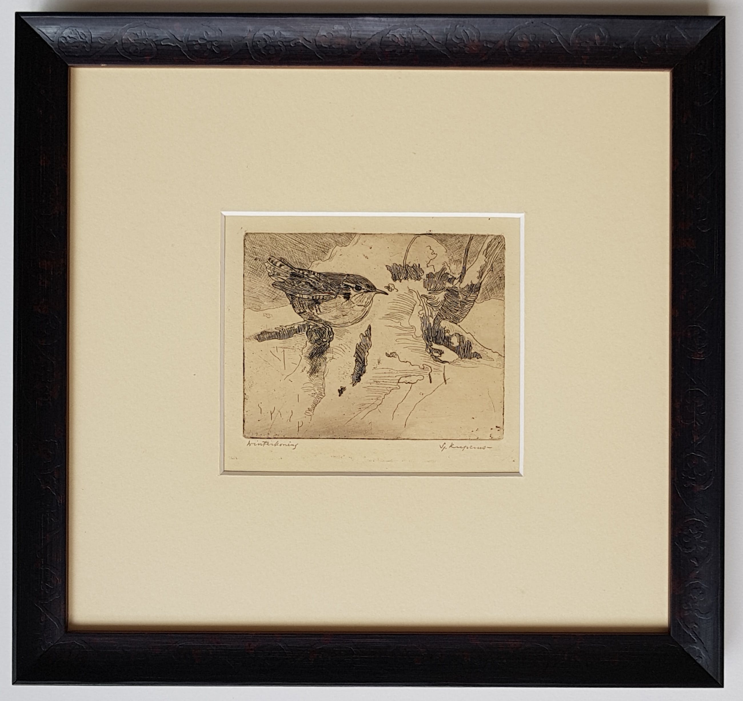 Sjoerd KuperusErs WinterkoninkjeR.o in potlood gesigneerdBeeldmaat 7n50 x 9.50 cmLijstmaat 24,50 x 26 cm