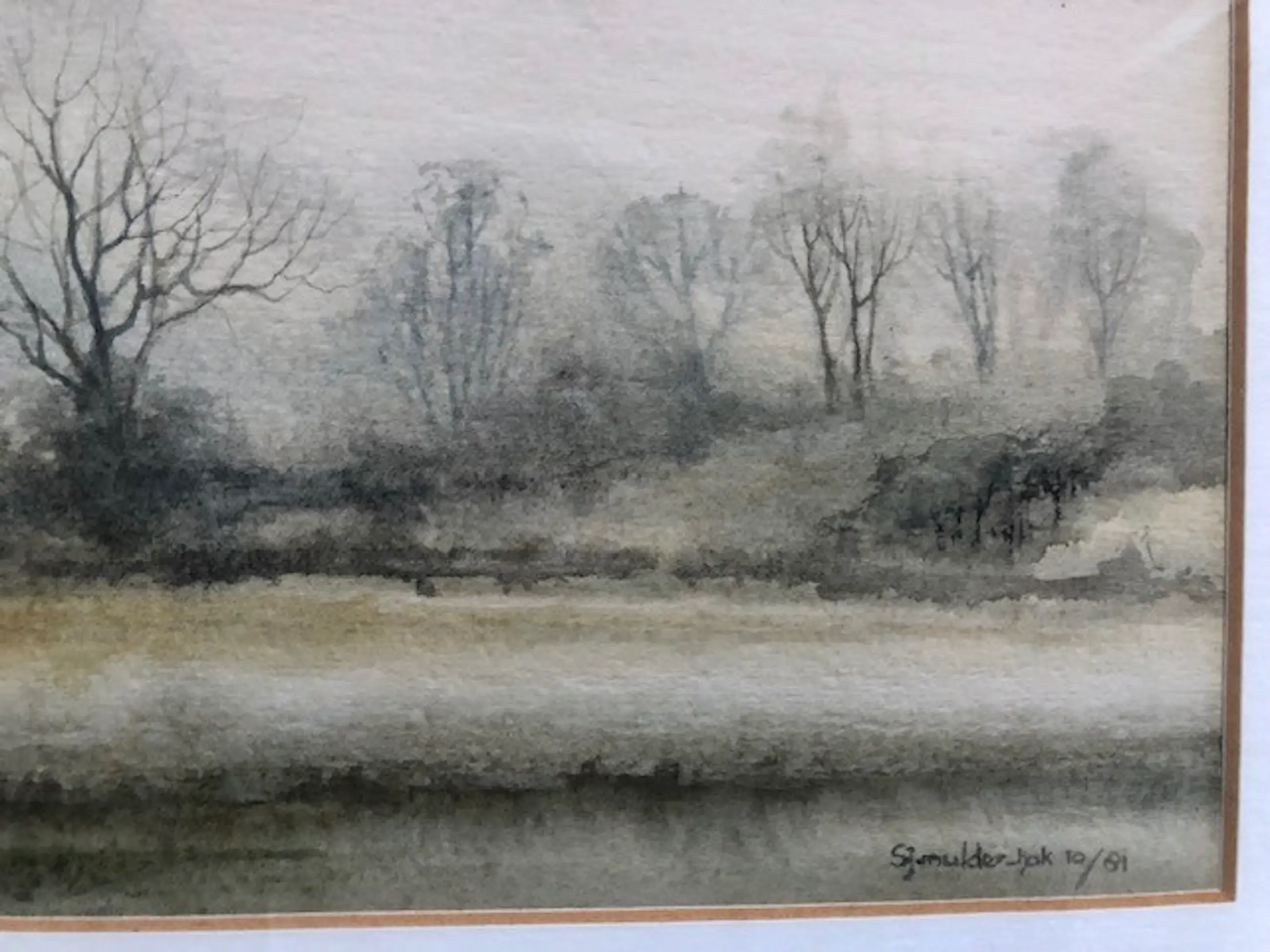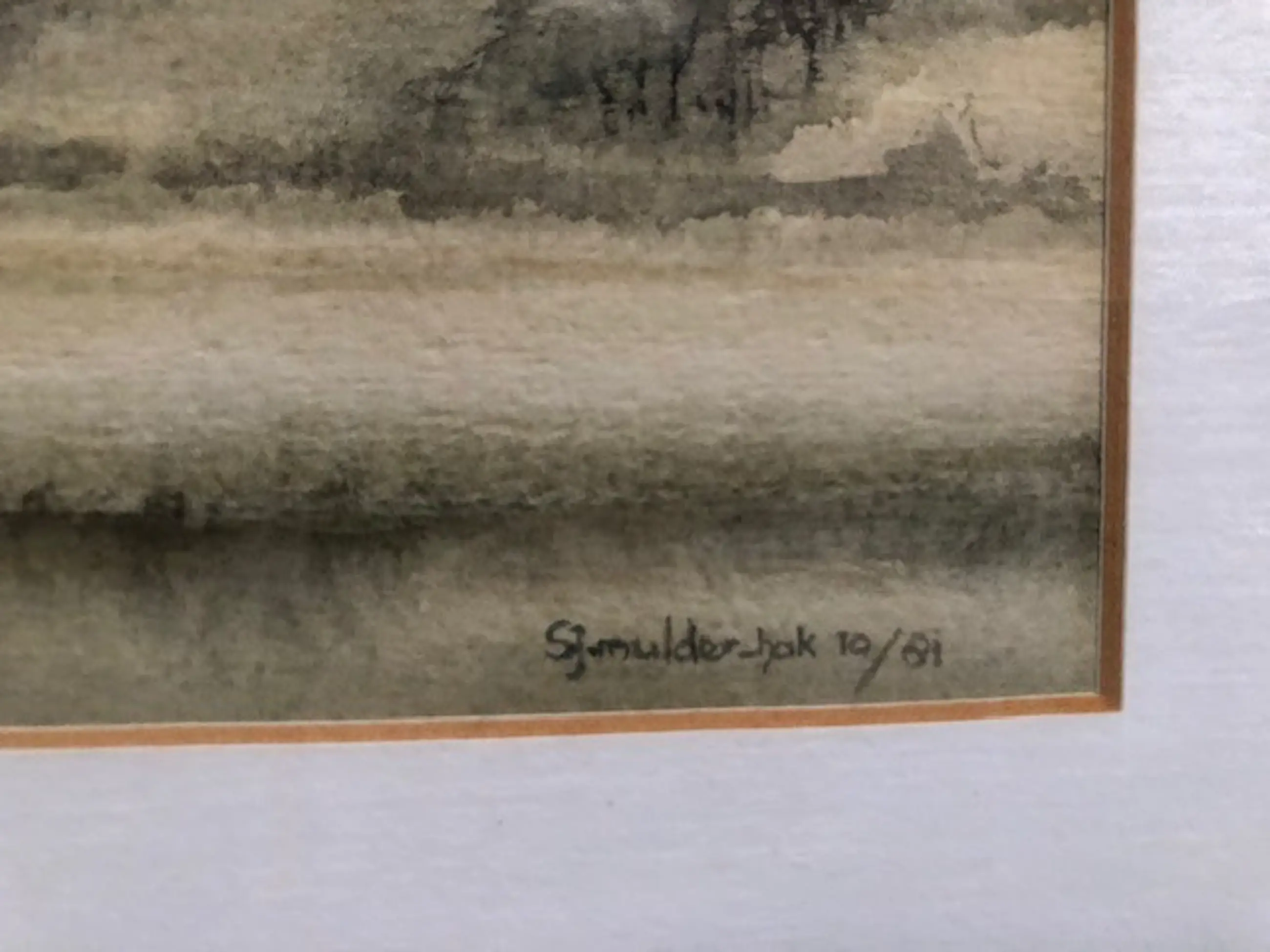 Handgesigneerde tekening van Sjoerdtje Mulder-Hak. Ingelijst achter spiegelend glas.