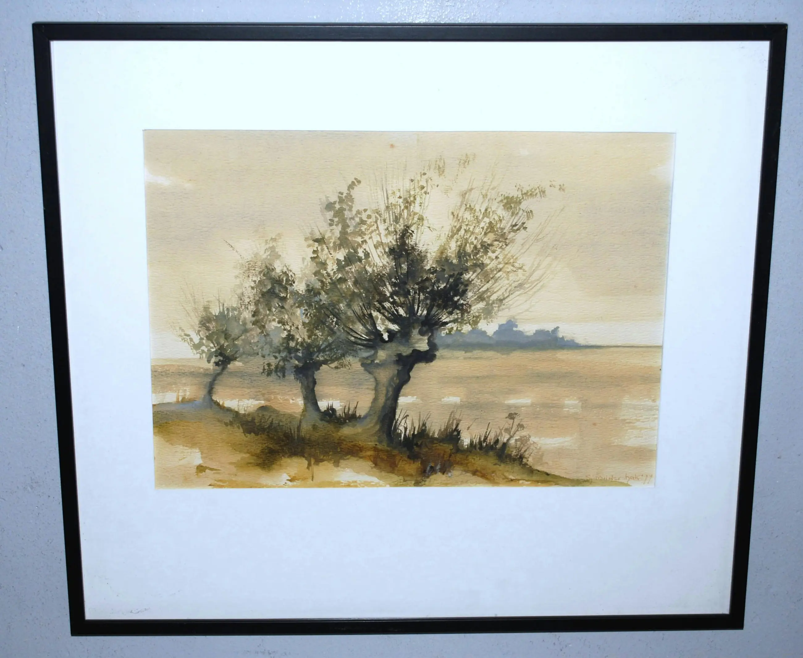 Achter passepartout en glas, in een zeer fraaie zwarte lijst.