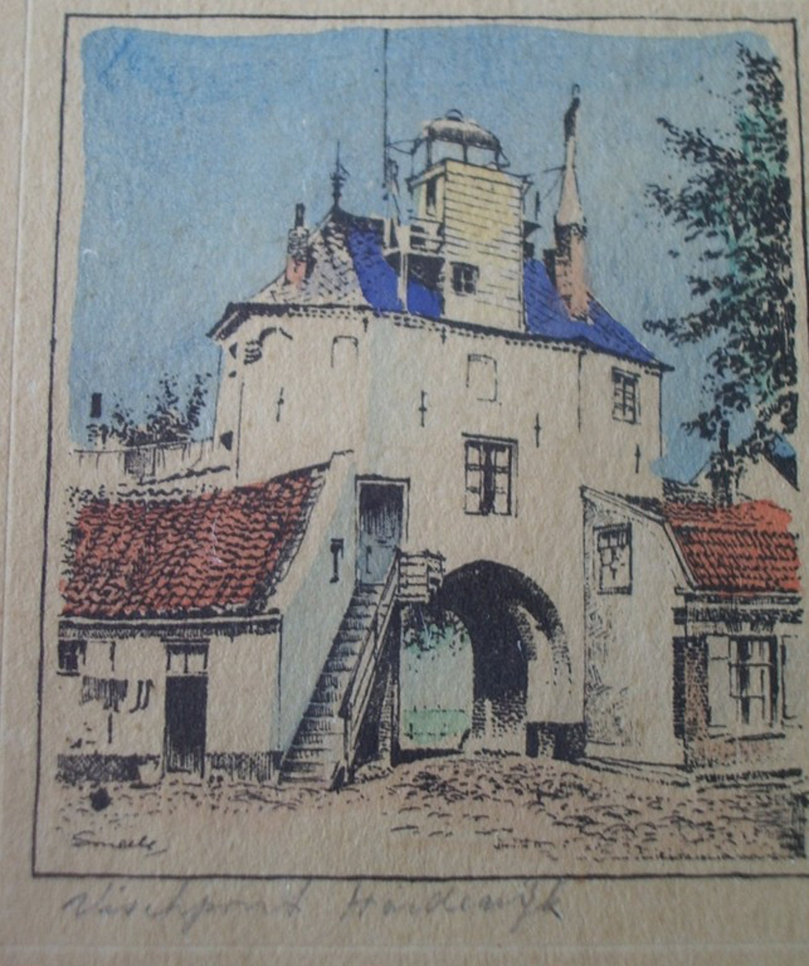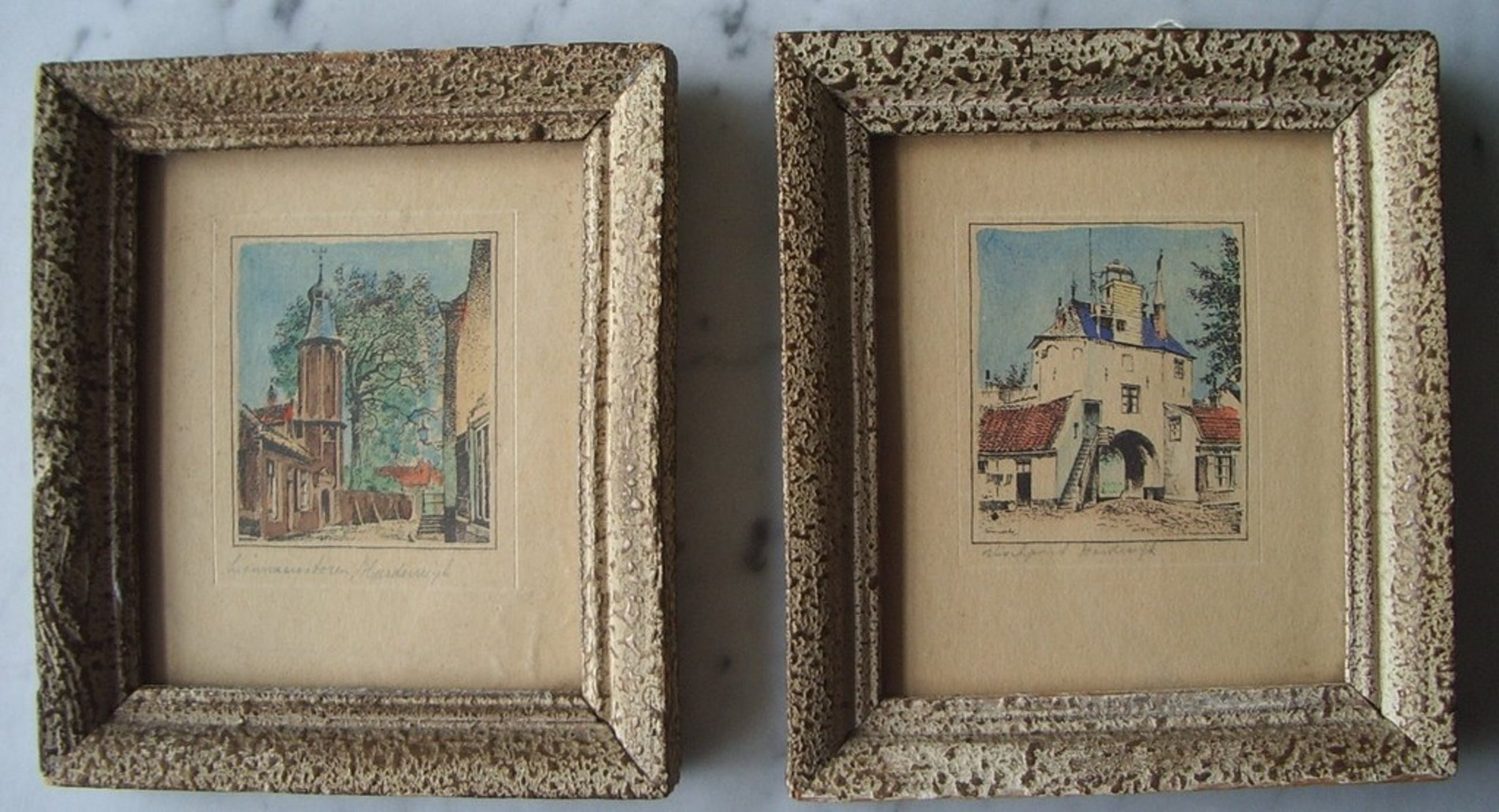 Het zijn ingekleurde etsjes en zij verdienen een nieuwe plek in de stad of bij een Harderwijker. Kunstenaar: gesigneerd in de plaat Smeets